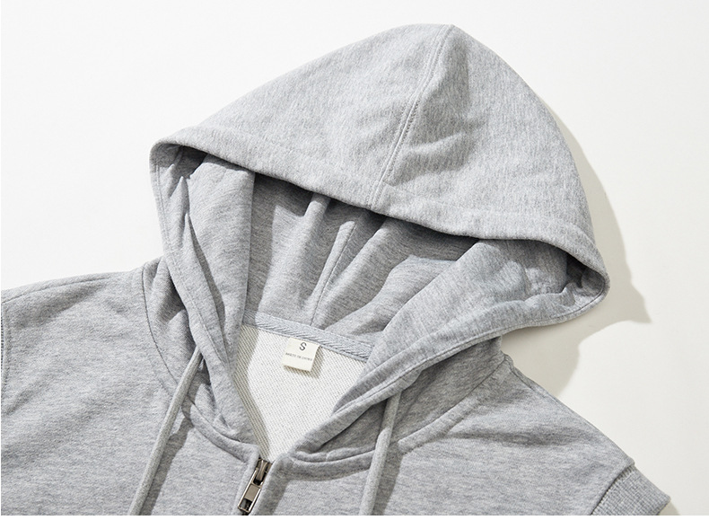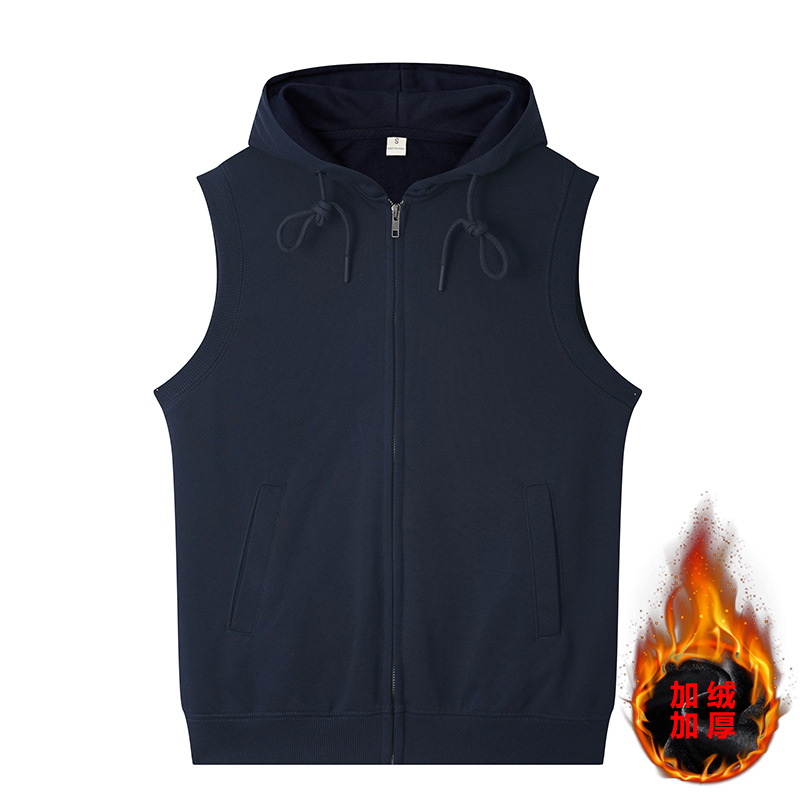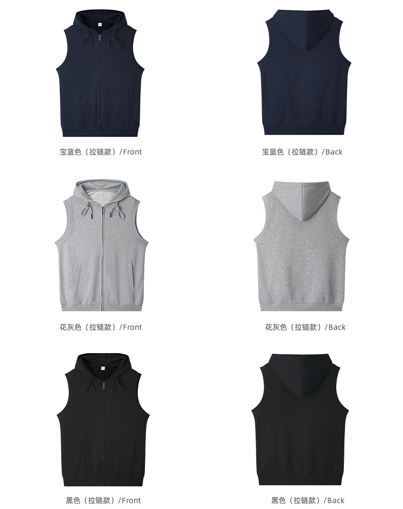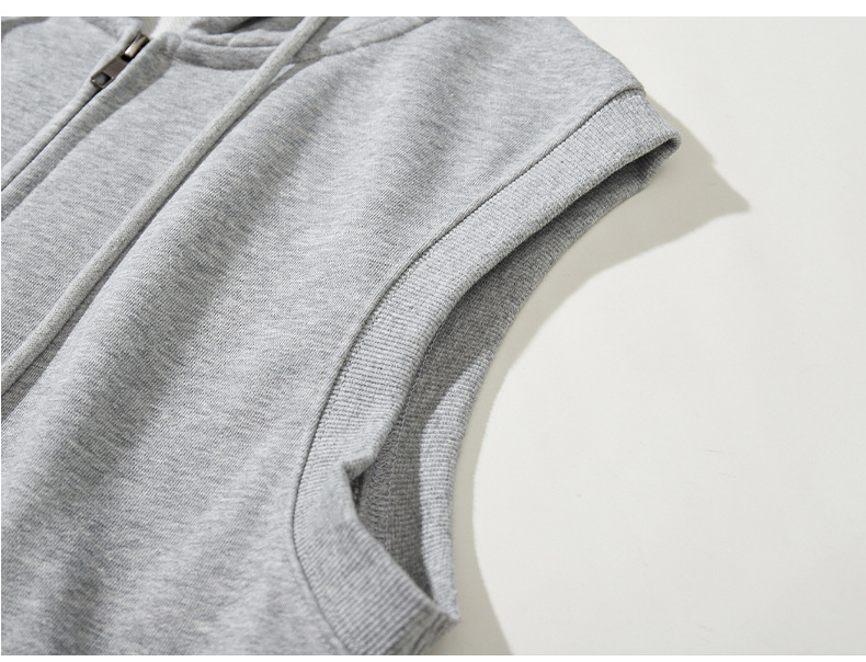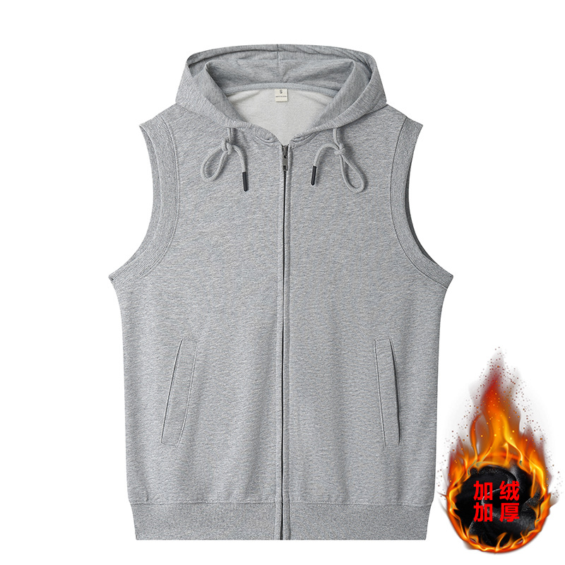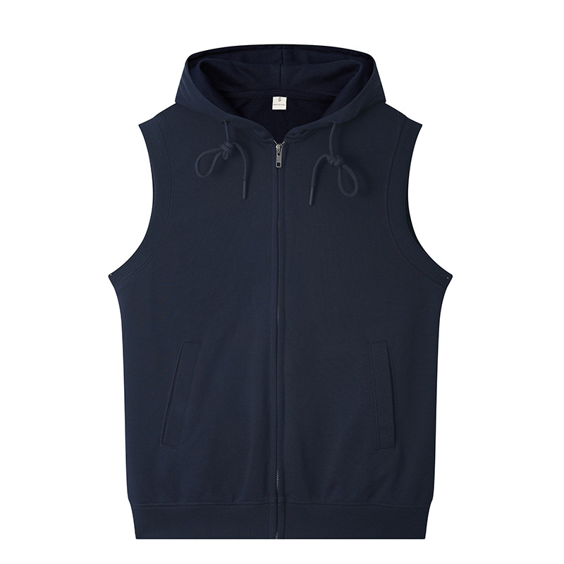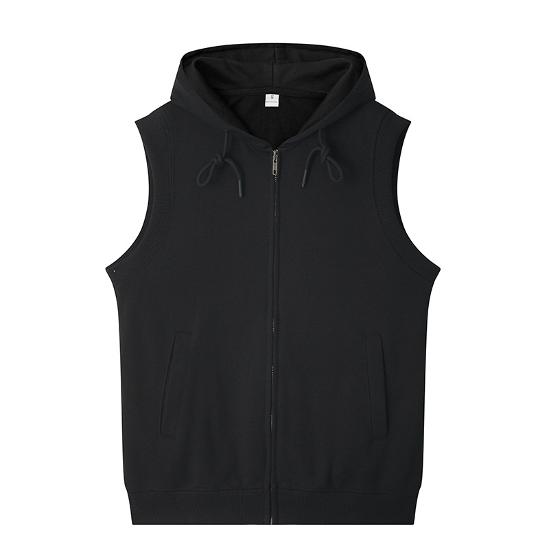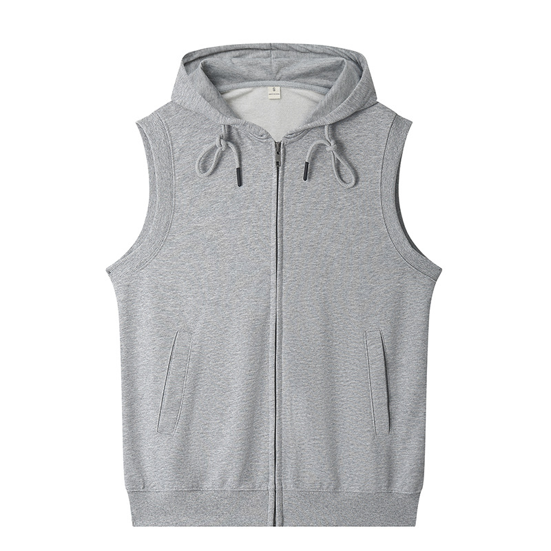 여름 카디건 지퍼 후드 조끼 남자 스포츠 느슨한 양복 조끼 단색 피트니스 플러스 사이즈 민소매 후드 t 도매스토어 가기