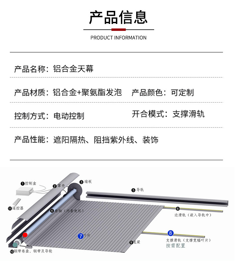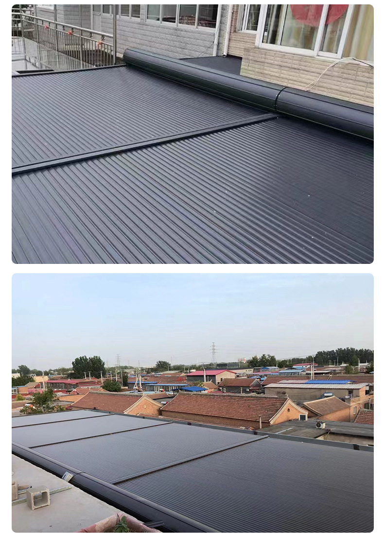 알루미늄 합금 전기 원격 제어 캐노피 야외 차양 공장 태양 방 음영 태양 보호 텔레스코픽 번역 캐노피 커튼