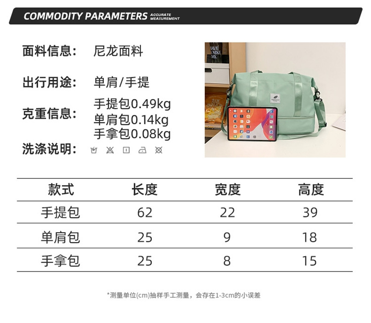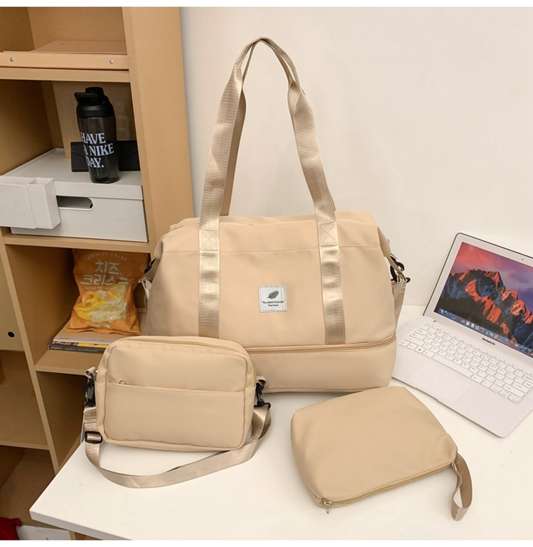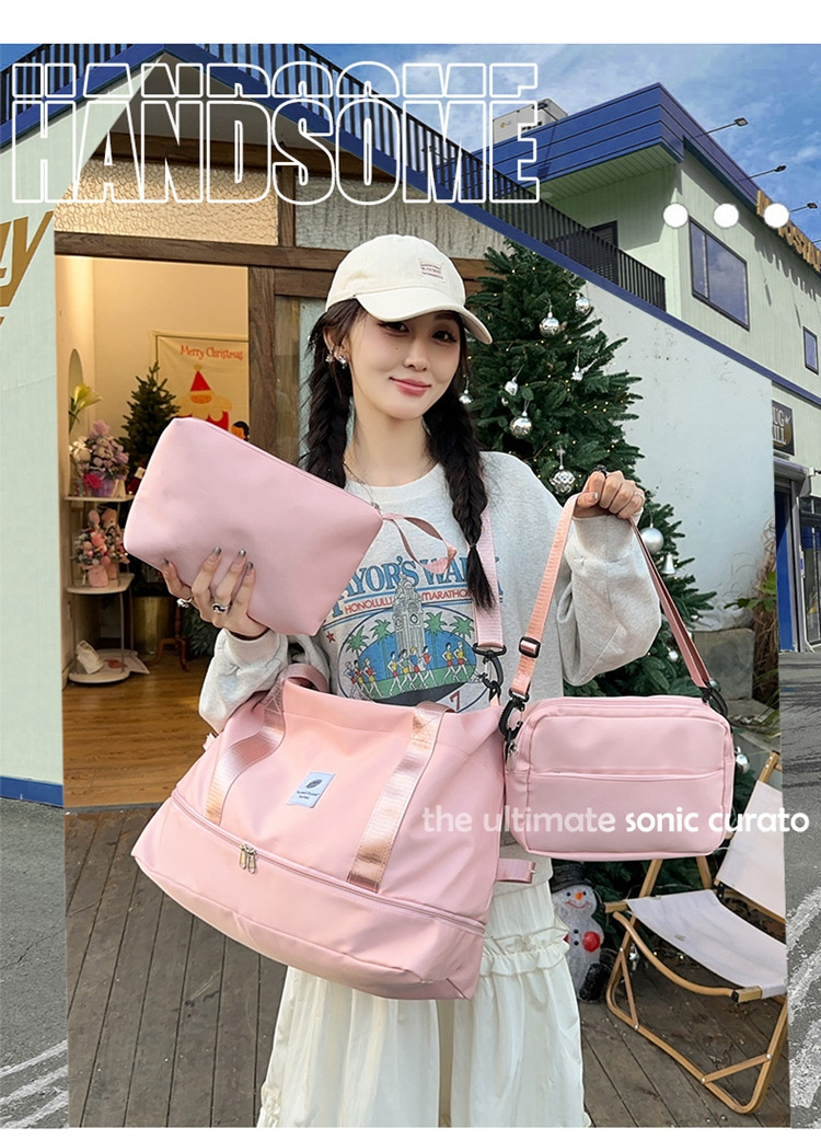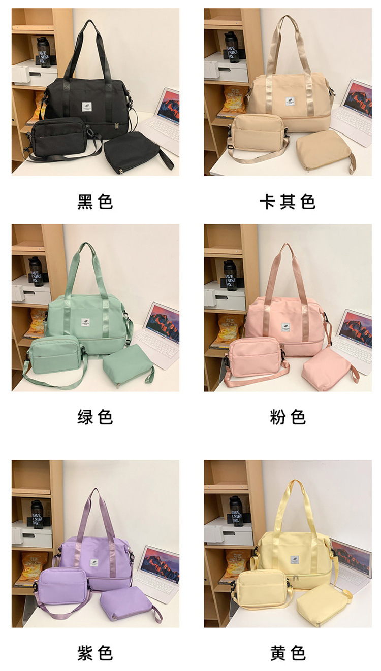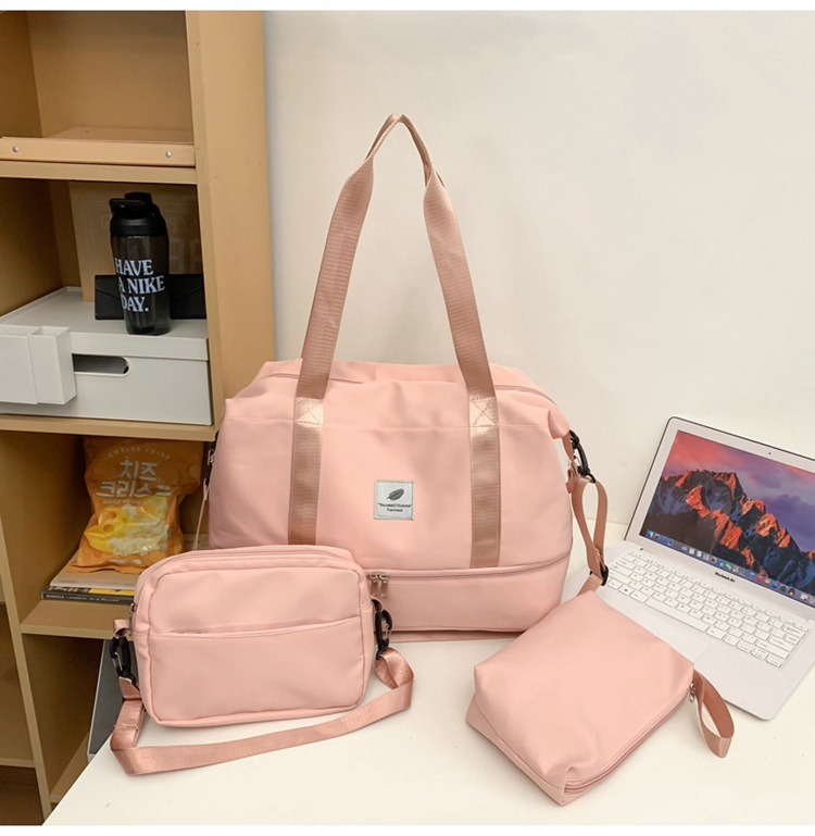 3 조각 휴대용 여행 가방 여행 가방 대용량 저장 가방 어깨 가방 여성 스포츠 요가 피트니스 가방