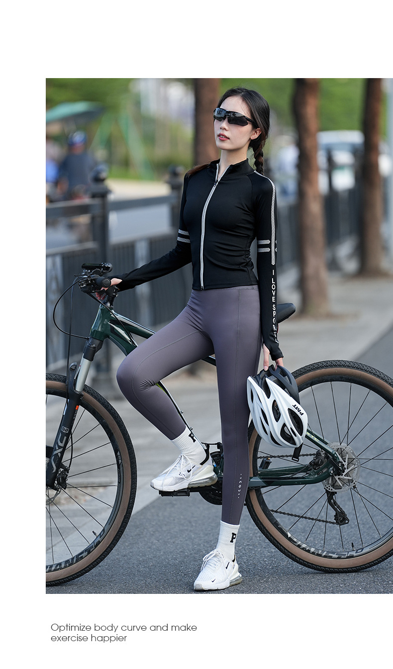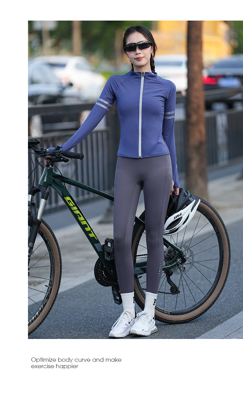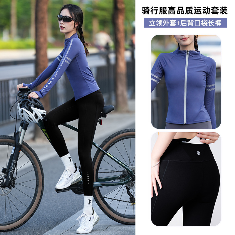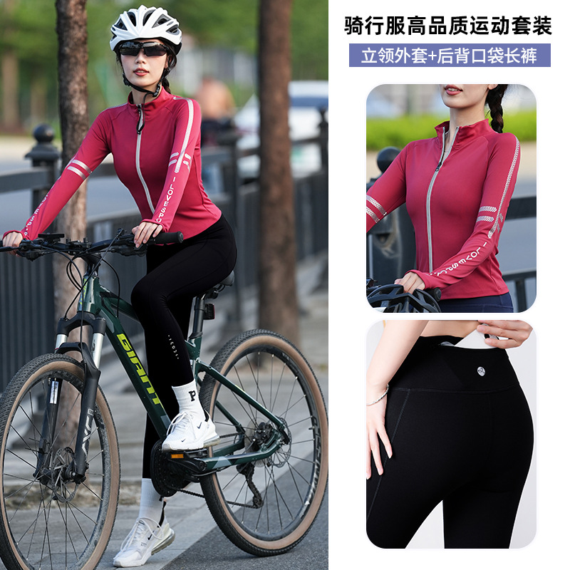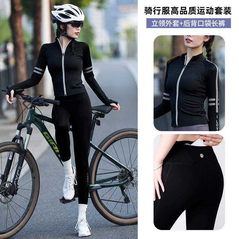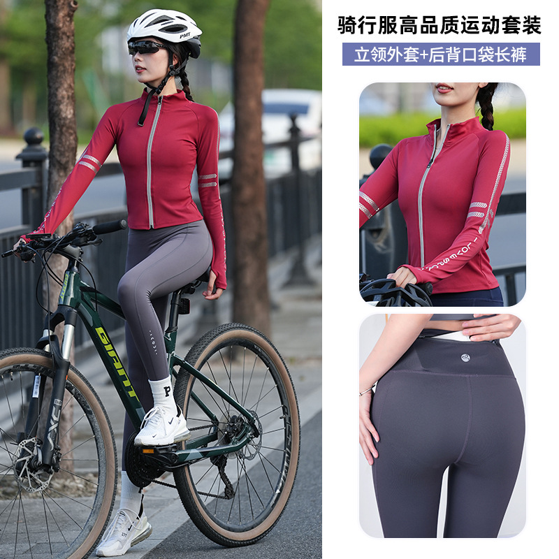 새로운 도착 얇은 고속도로 긴팔 야외 승마 세트 빠른 건조 스포츠 세트 여성 피트니스 요가 세트 카디건