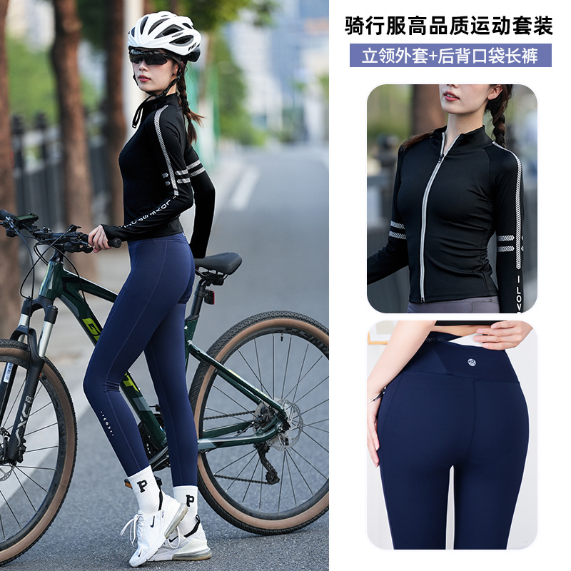 새로운 도착 얇은 고속도로 긴팔 야외 승마 세트 빠른 건조 스포츠 세트 여성 피트니스 요가 세트 카디건스토어 가기