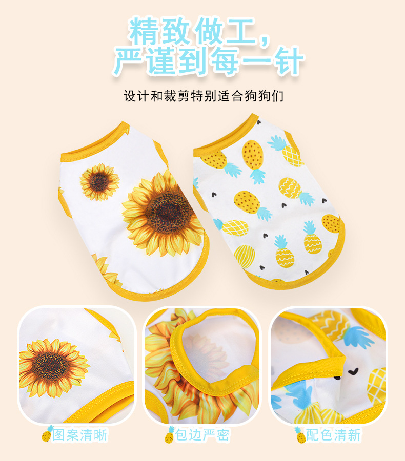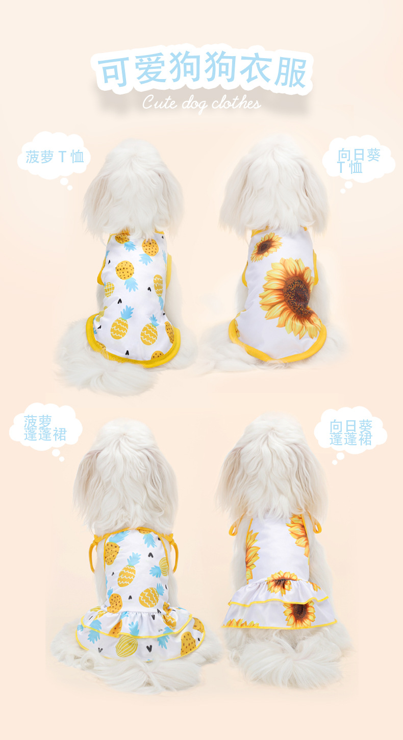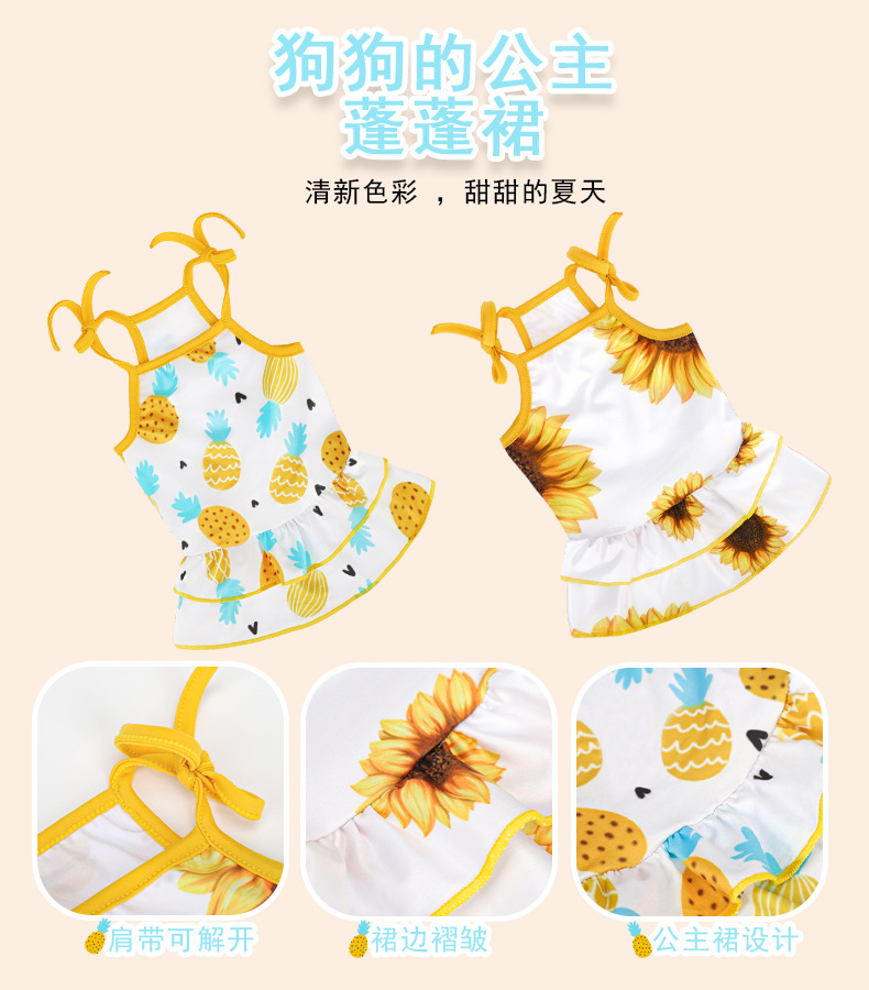 아마존 뜨거운 애완 동물 의류 고양이 개 슬링 스커트 과일 파인애플 해바라기 통기성 애완 동물 원피스