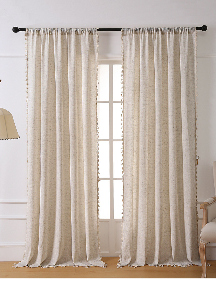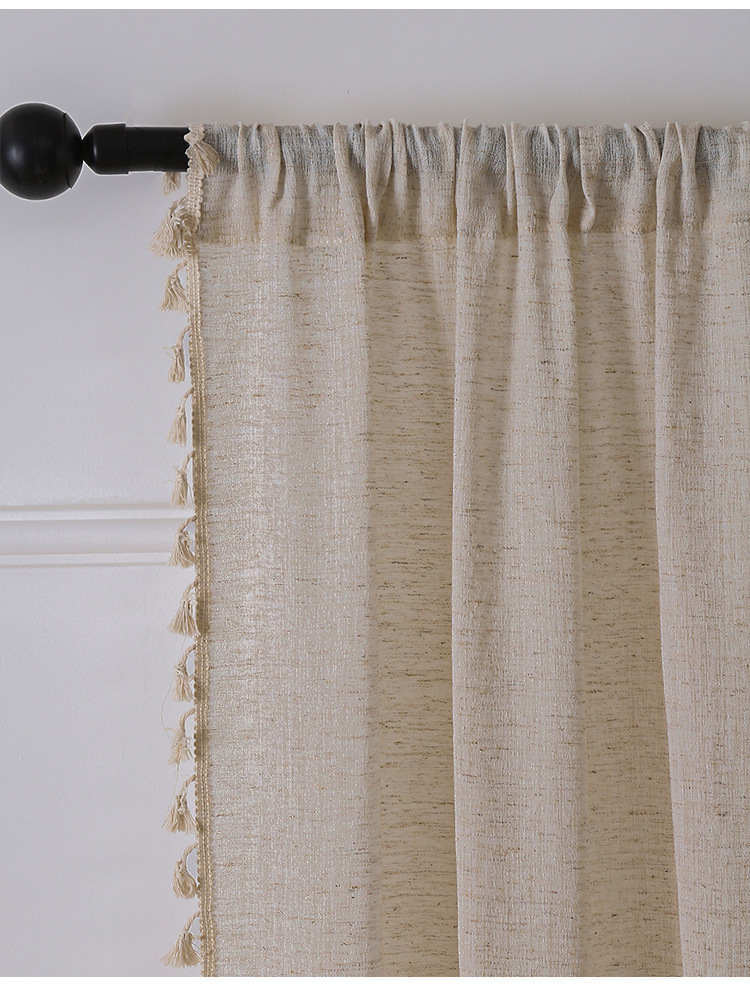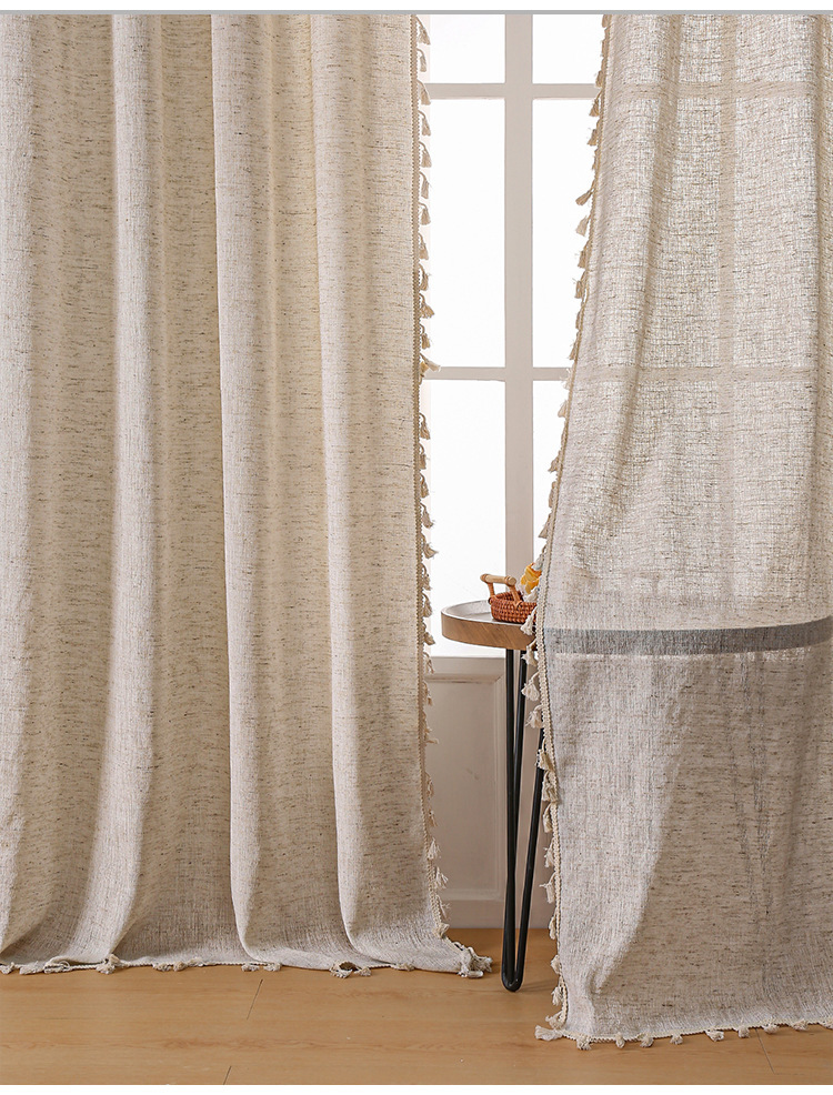 모던 심플 스타일 단색 반암막 커튼 고급스러운 발코니 차단 커튼 우아한 거즈 커튼 가정용 완제품 라이트 럭셔리스토어 가기