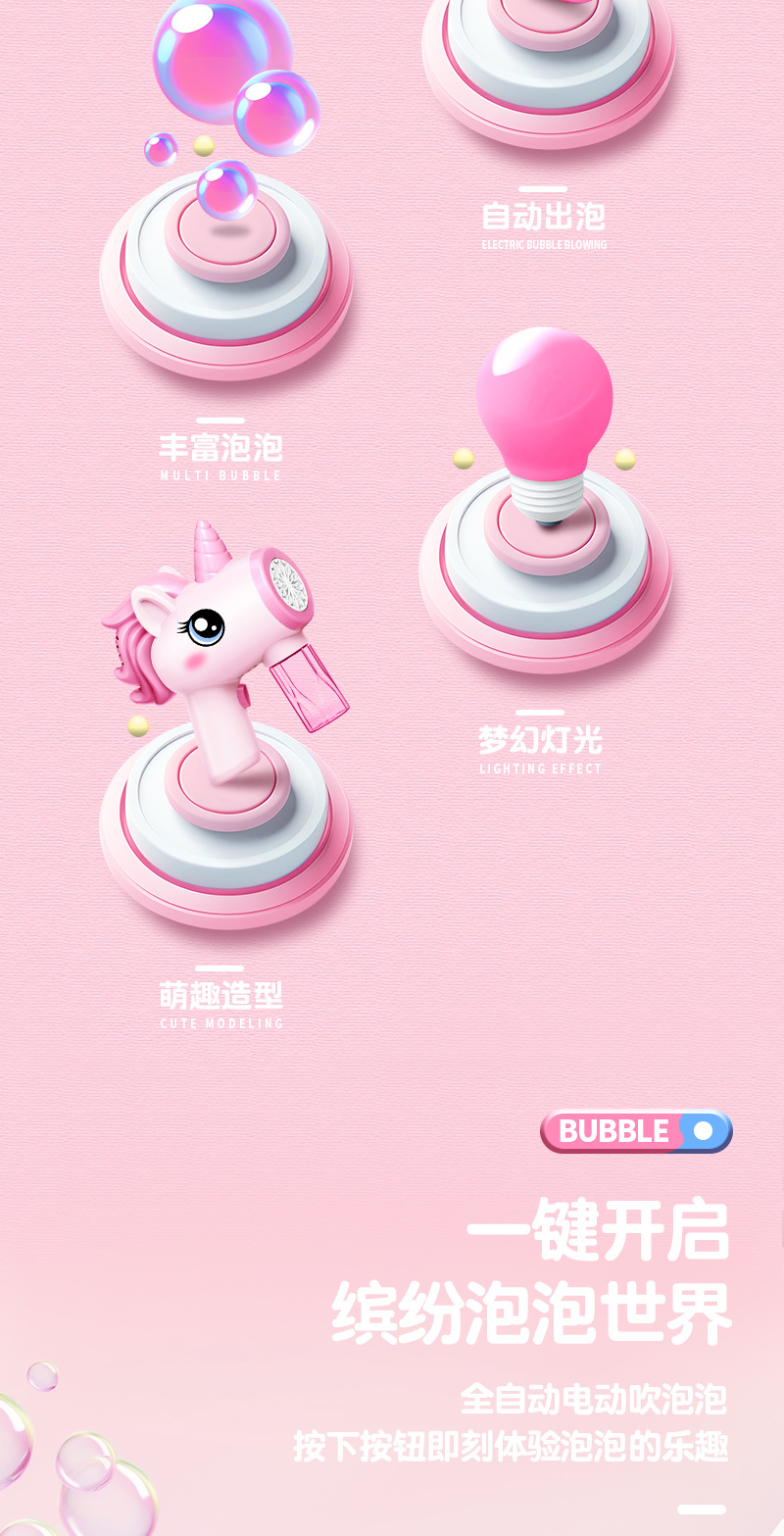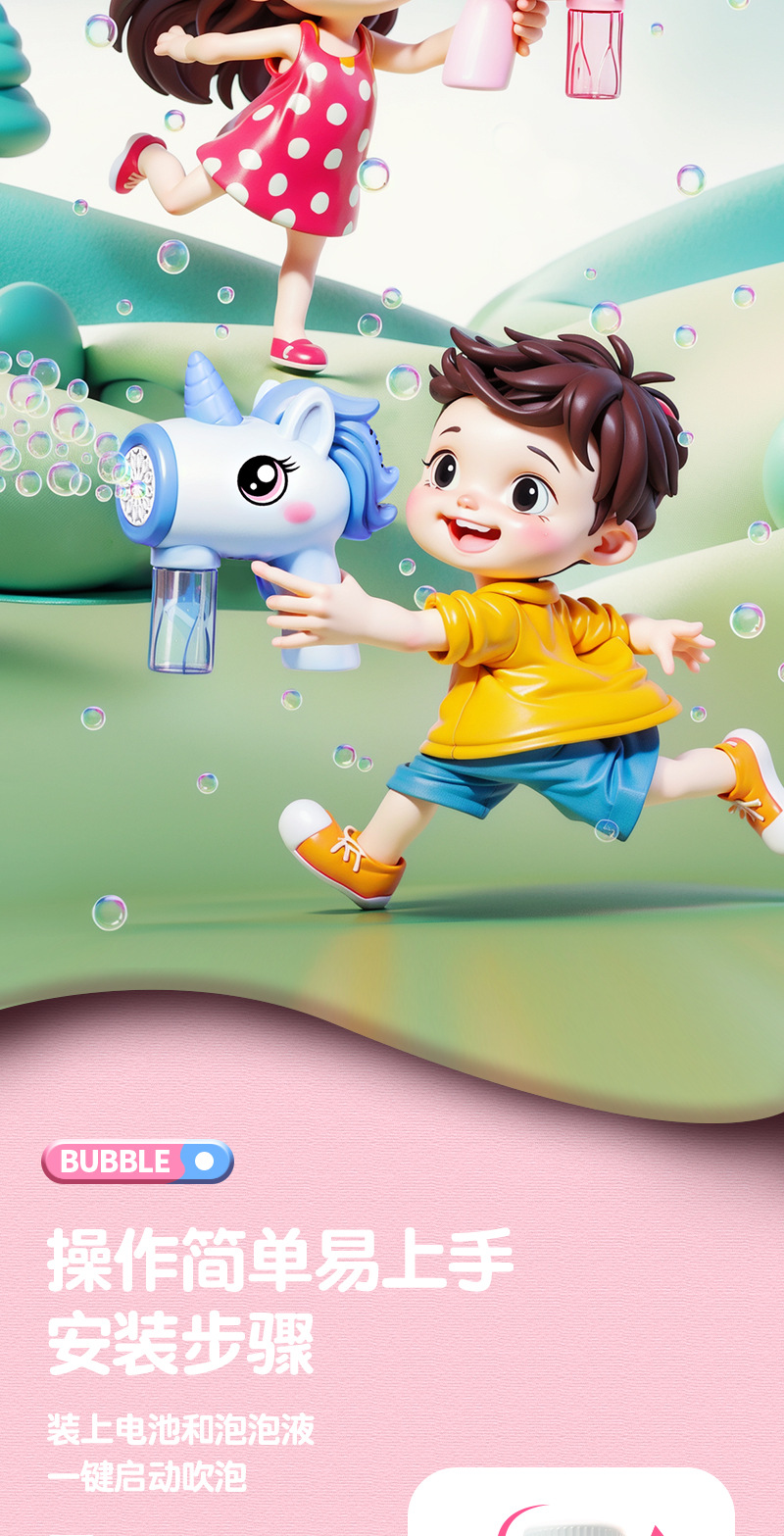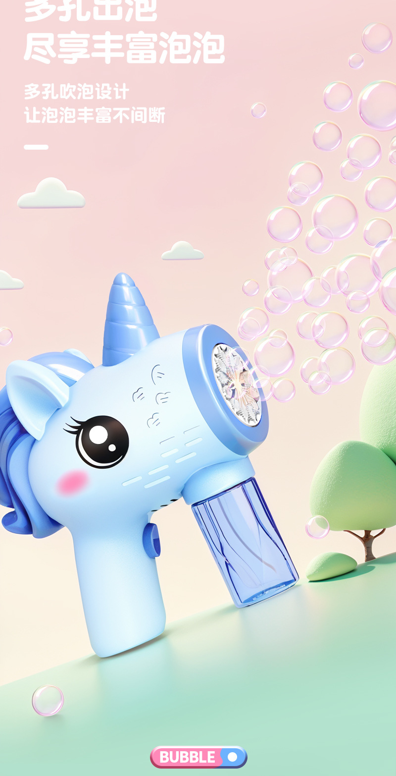 새로운 유니콘 버블 머신 어린이 전동 자동 버블건 장난감 인기 야시장 판매 장난감스토어 가기
