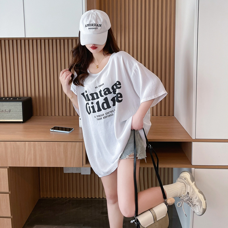 아이스 실크 린넨 신상 2025 여름 섹시한 반팔 티셔츠 여성 중간 길이 패션 한국 스타일 레이스 여성 상의스토어 가기