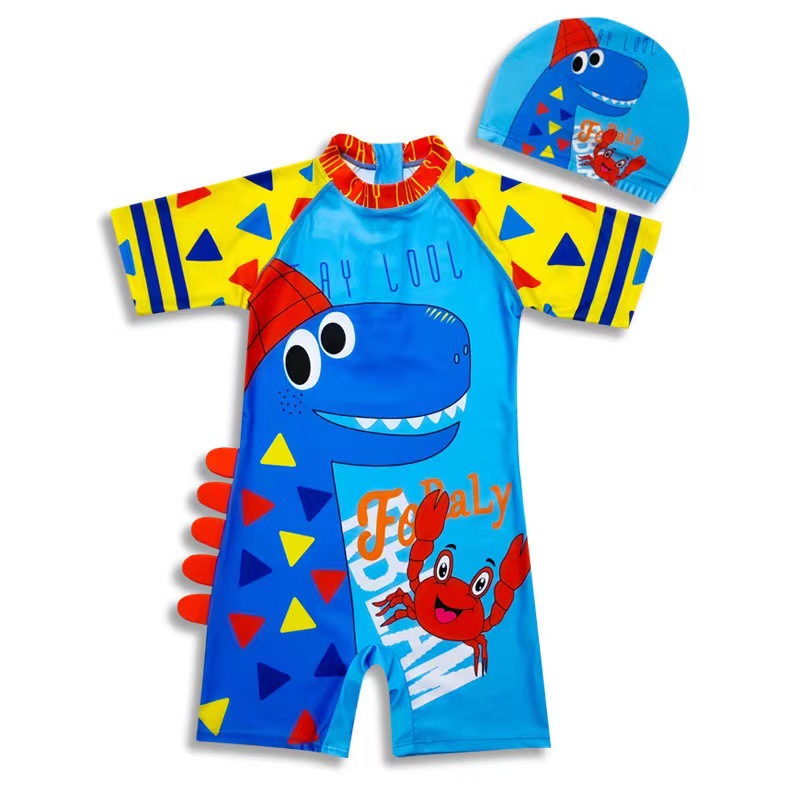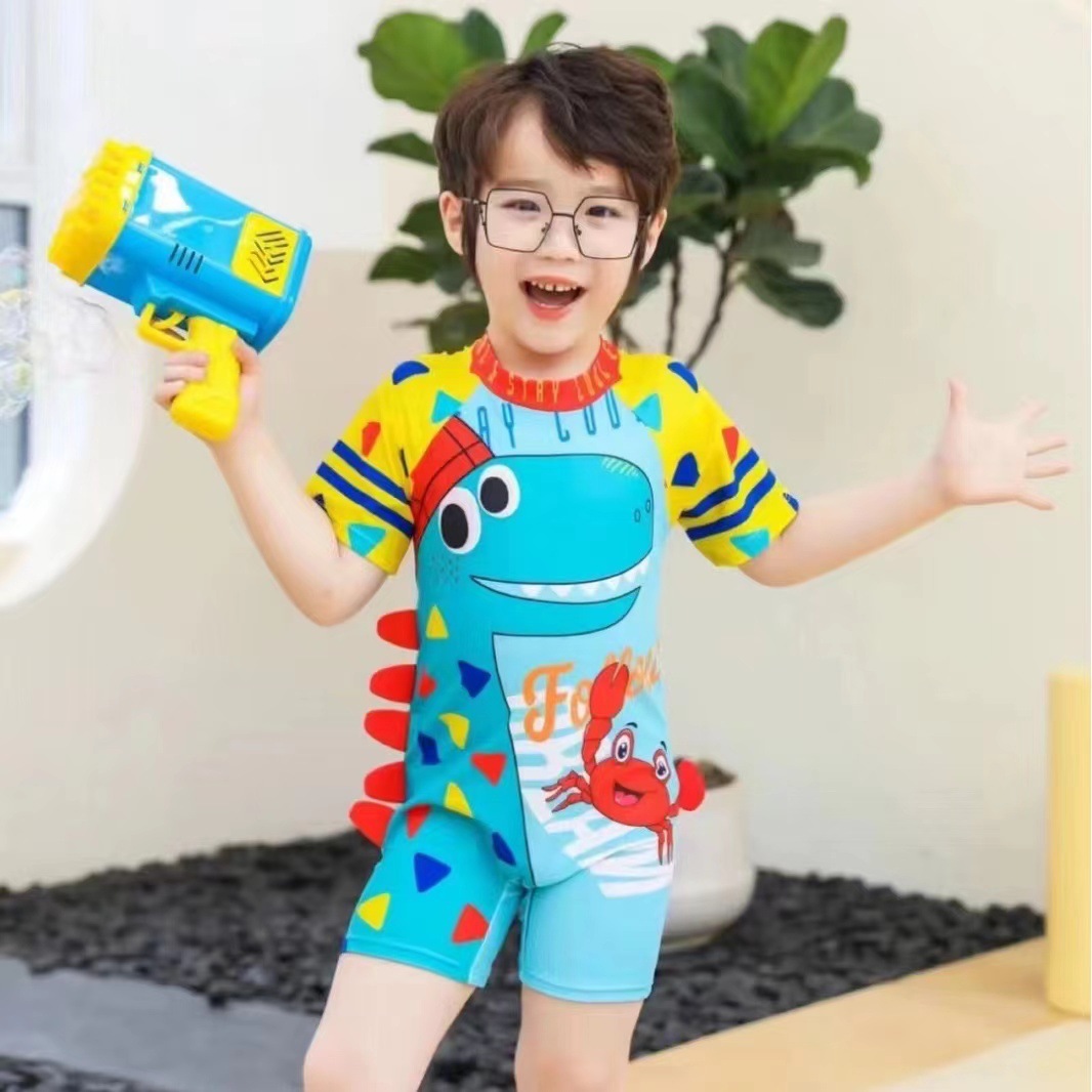 2024 어린이 수영복 소년 공룡 원피스 소년 스플릿 중대형 어린이 원피스 귀여운 스타일 학생 수영복