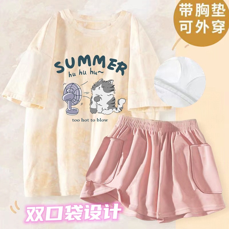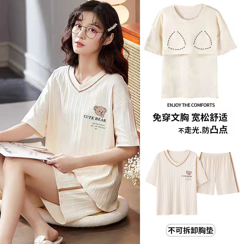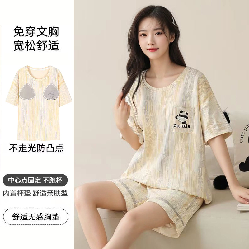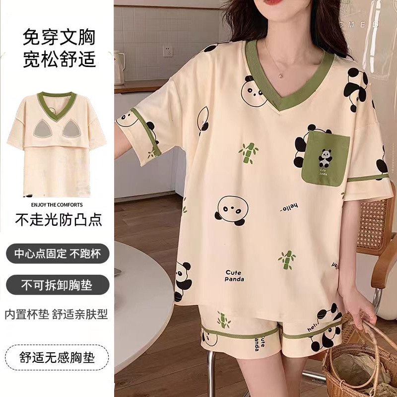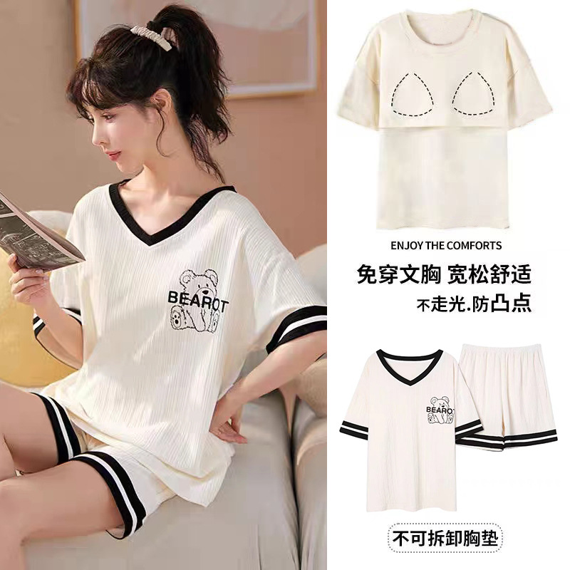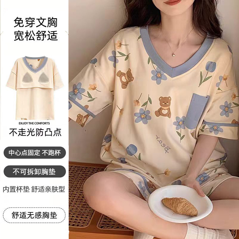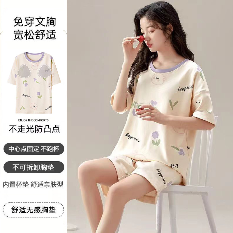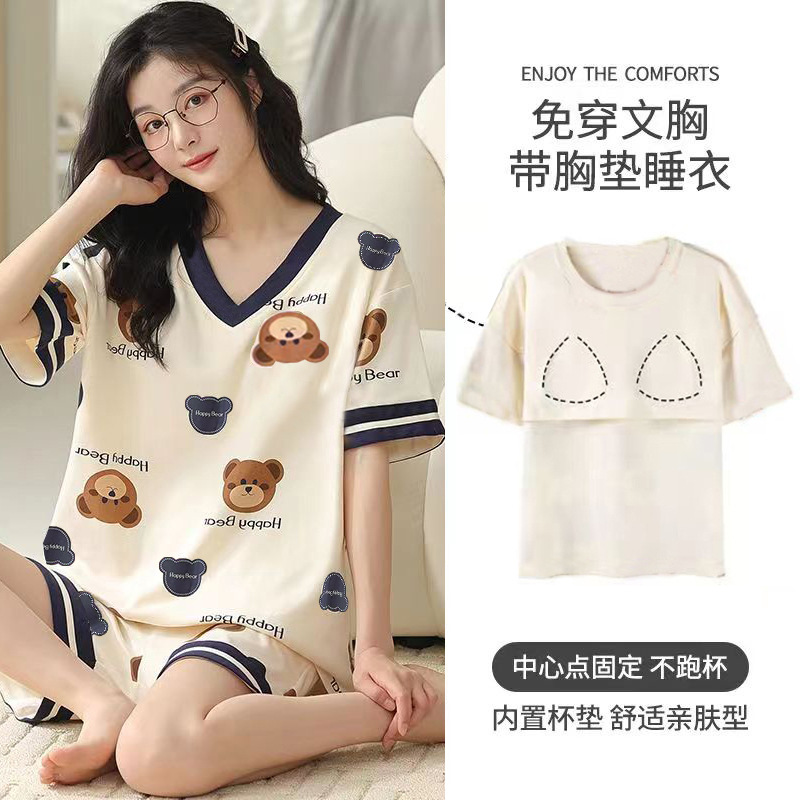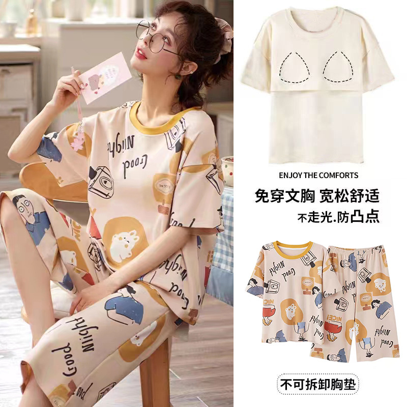 여성용 신상 여름 만화 잠옷 얇은 반팔 가슴 패드 포함 대형 사이즈 홈웨어 세트 외출용 가능스토어 가기