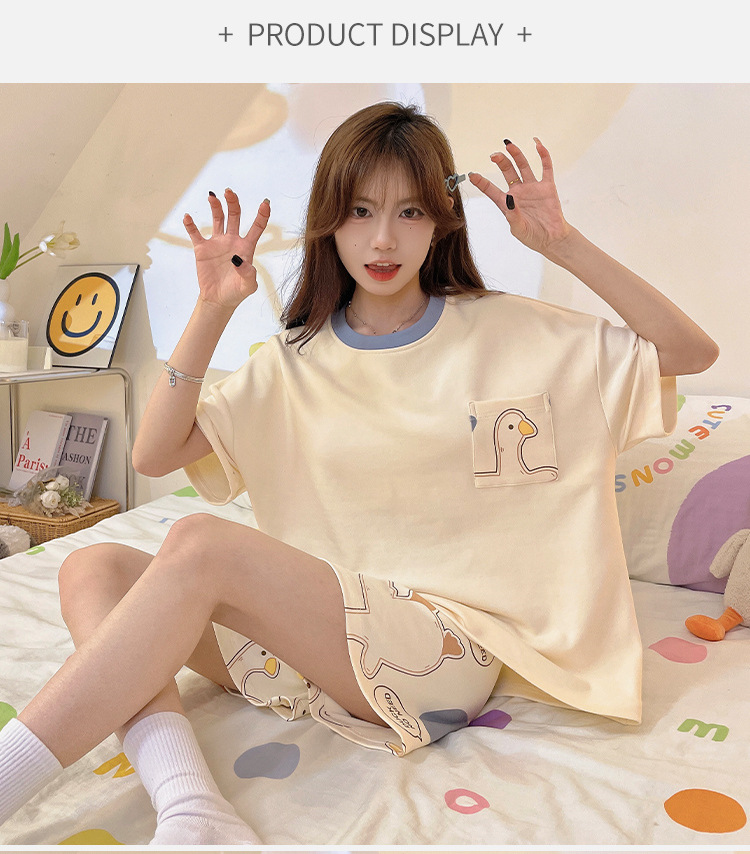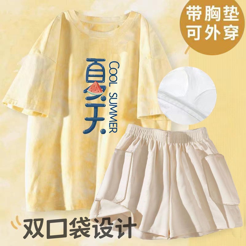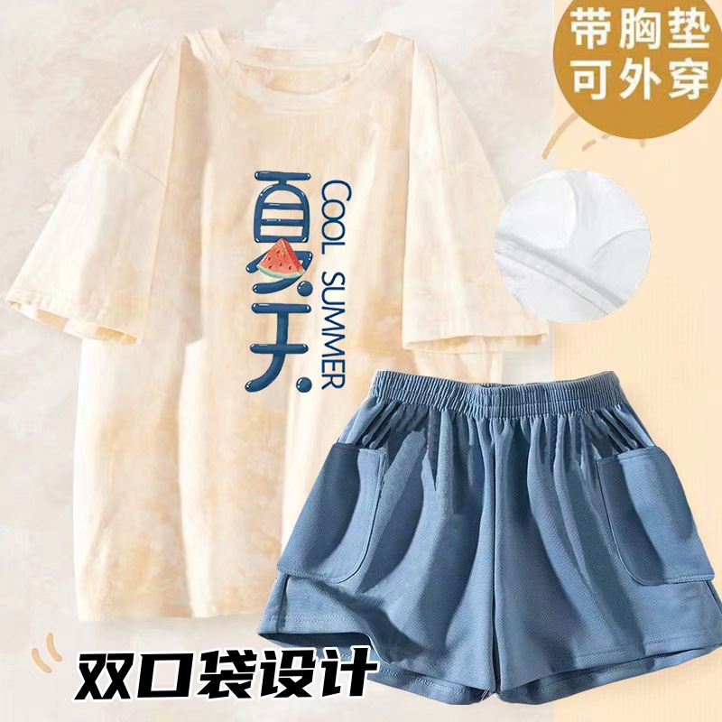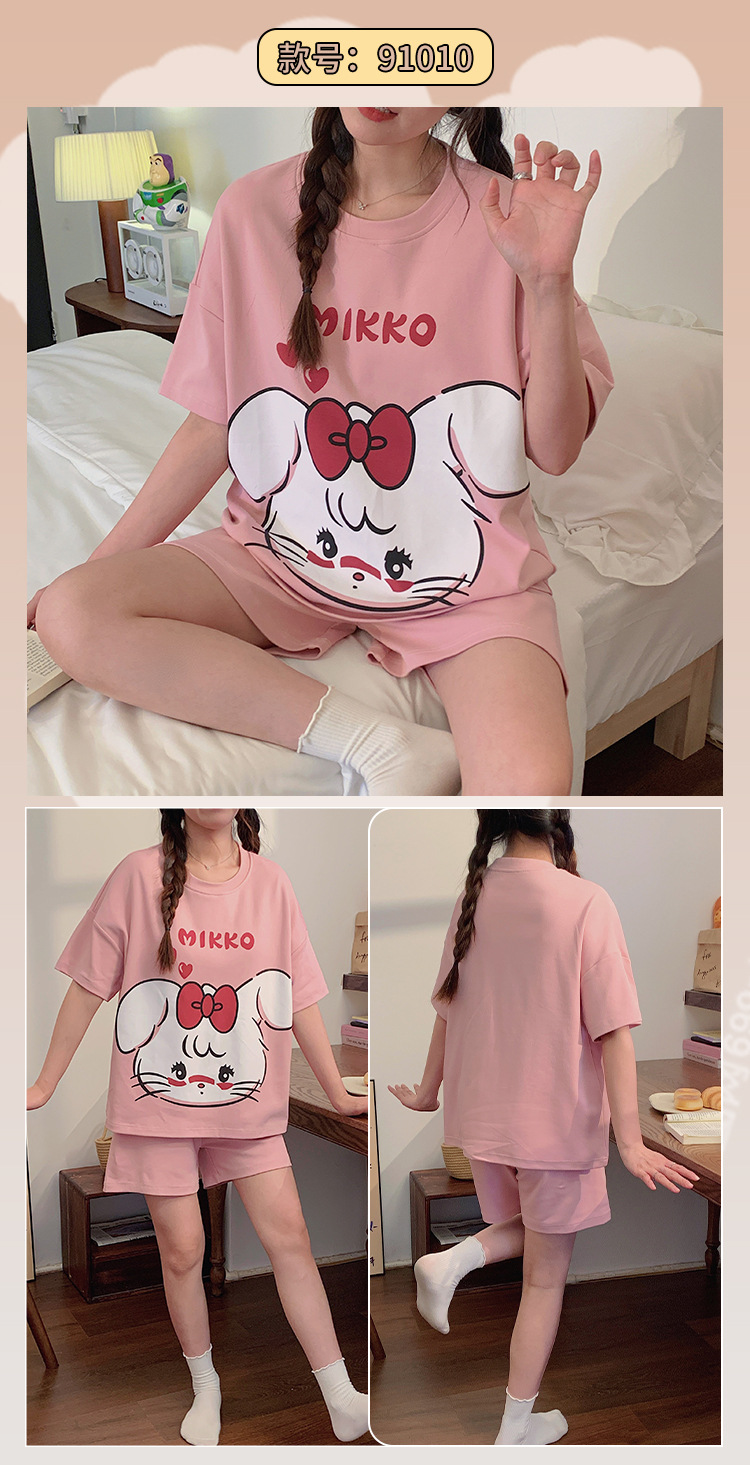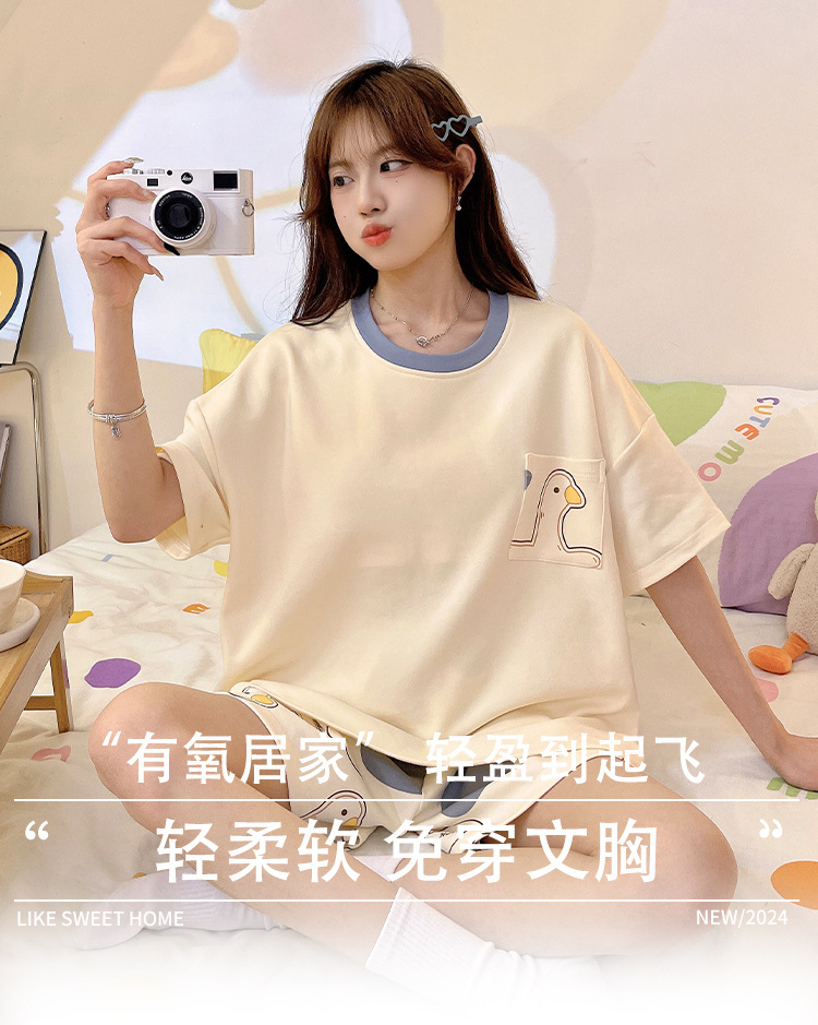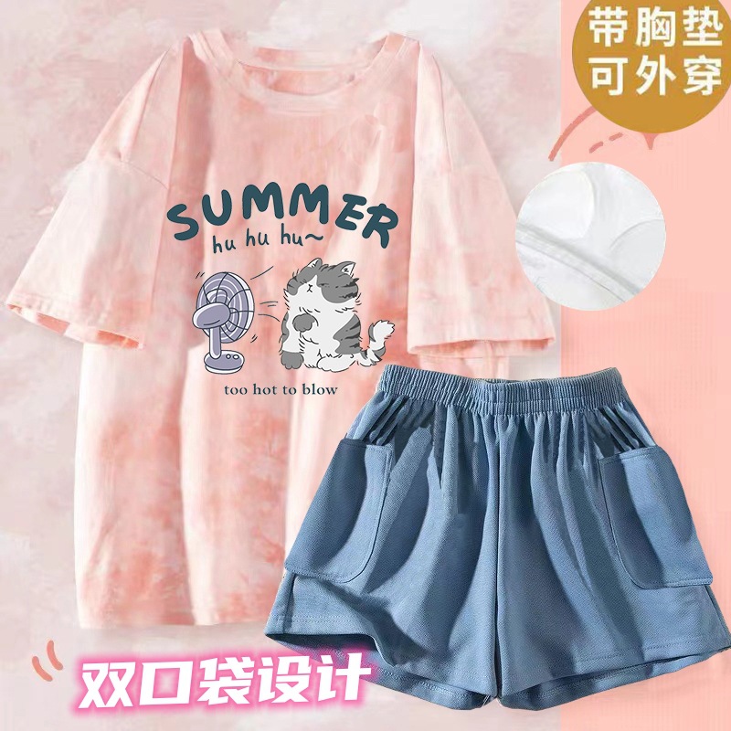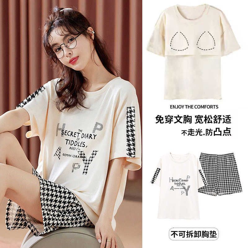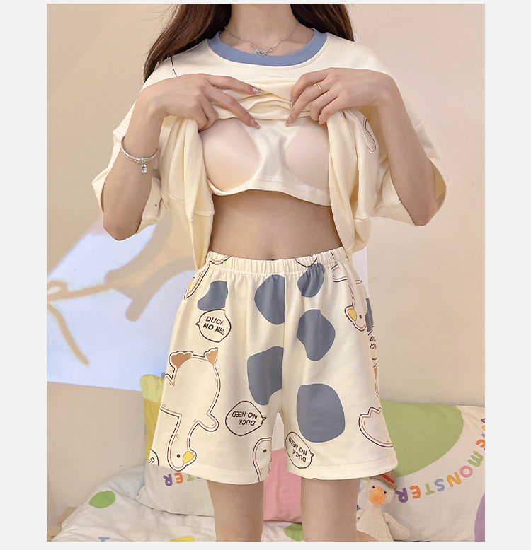 여성용 신상 여름 만화 잠옷 얇은 반팔 가슴 패드 포함 대형 사이즈 홈웨어 세트 외출용 가능스토어 가기