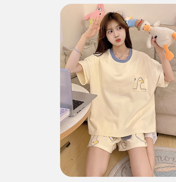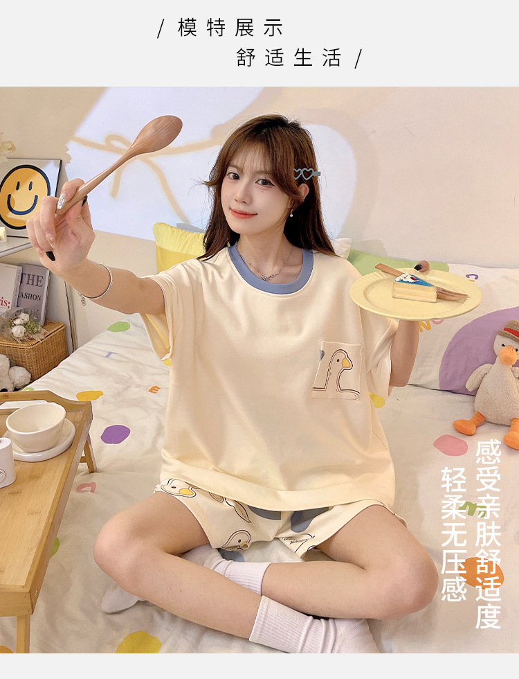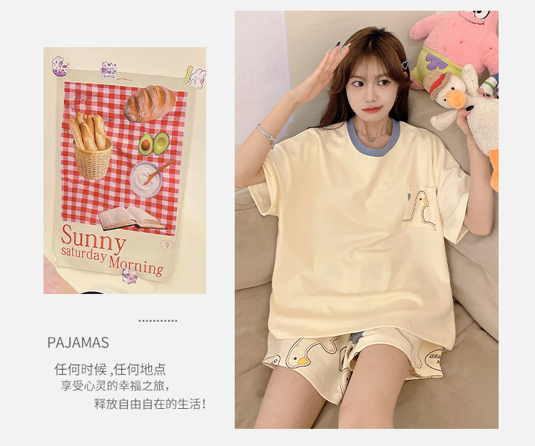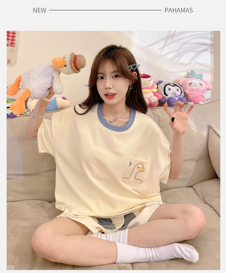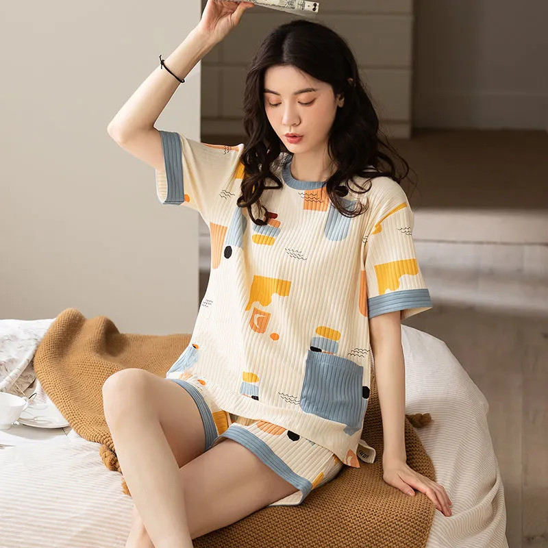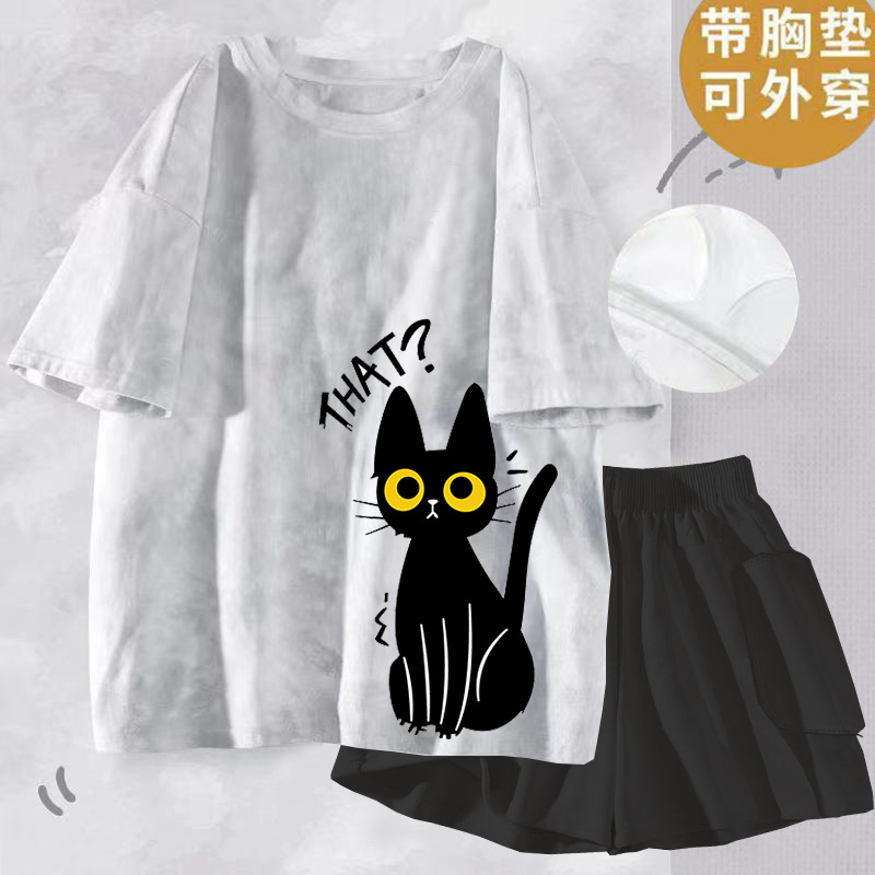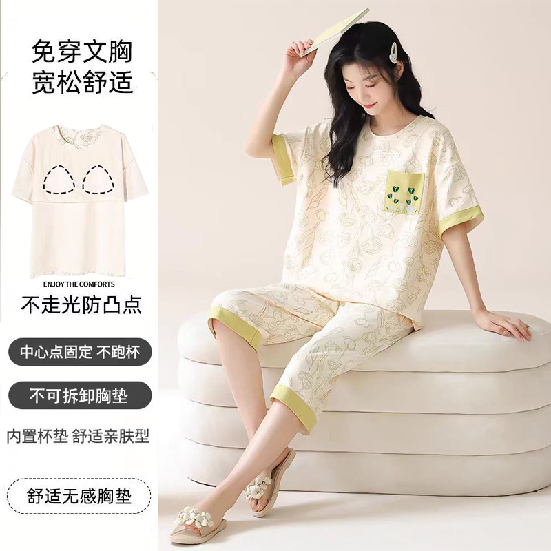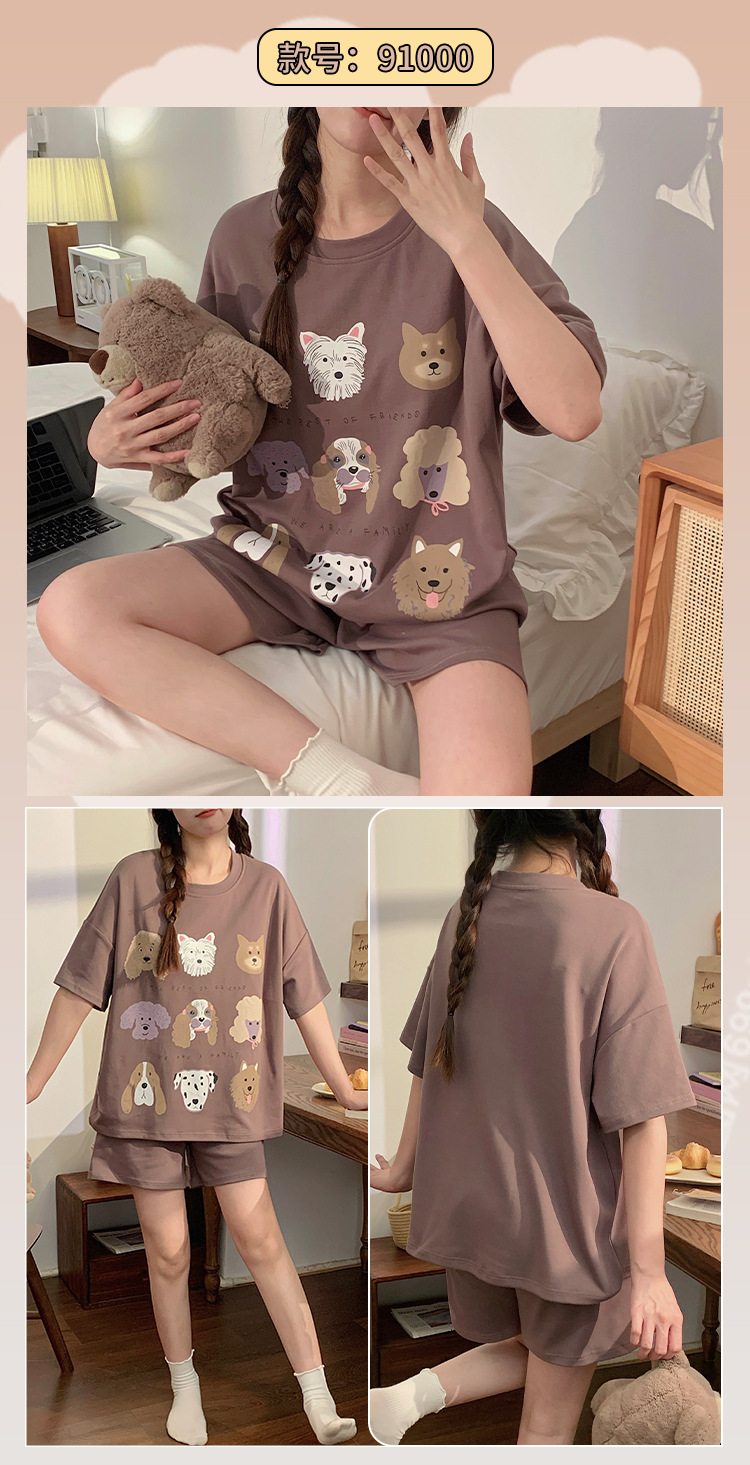 여성용 신상 여름 만화 잠옷 얇은 반팔 가슴 패드 포함 대형 사이즈 홈웨어 세트 외출용 가능스토어 가기