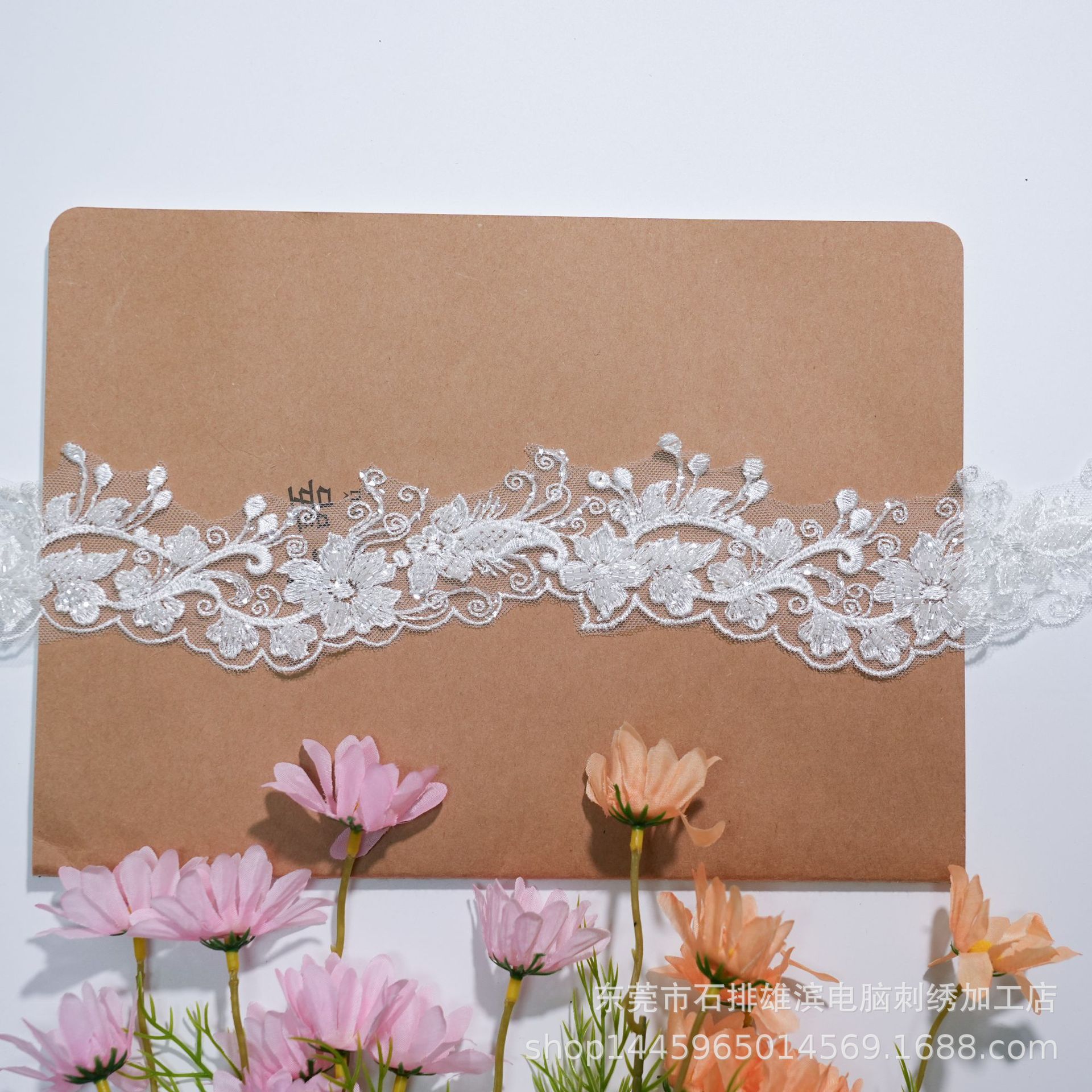 Xiongbin 새로운 쌀 흰색 높은 고정 비드 웨딩 레이스 헤어 원사 인형 옷 액세서리 폭 6CM