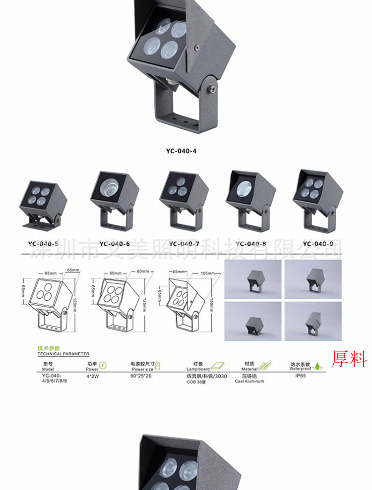 Yimei LED 소형 스포트라이트 야외 방수 투광등 고전압 24V 4W 8W 10W 한 줄기 광선 좁은 빔 벽 세척용 따뜻한 노란색스토어 가기
