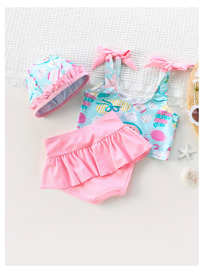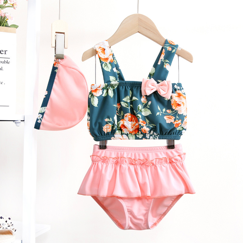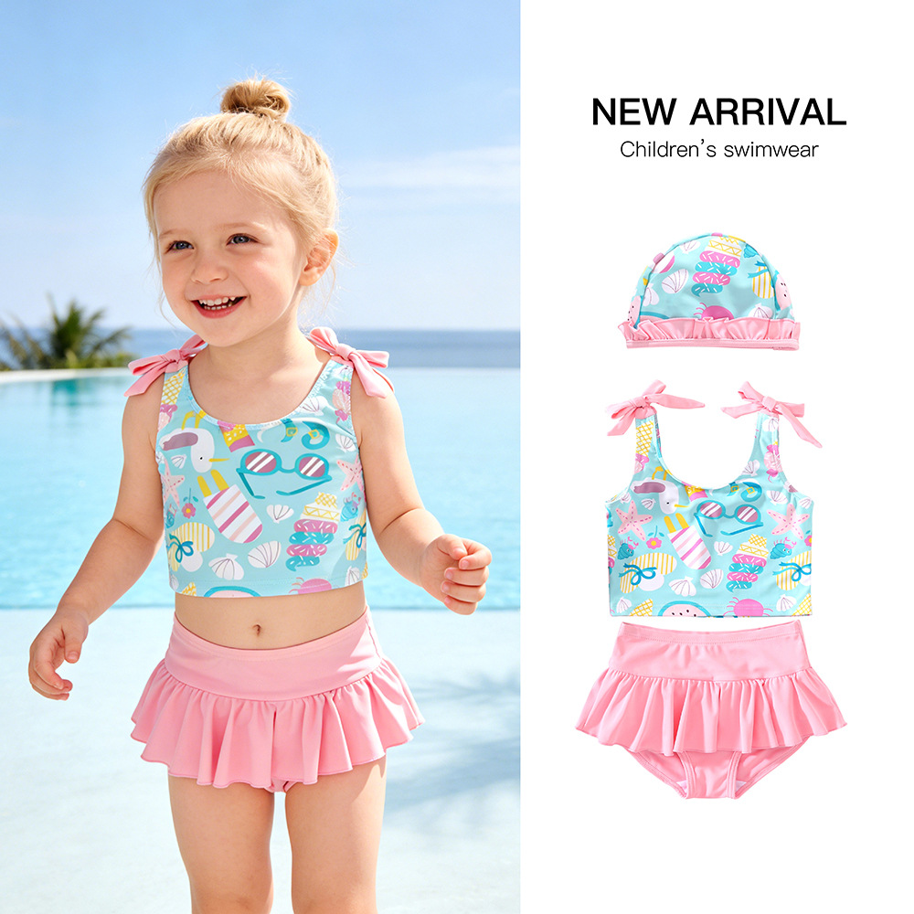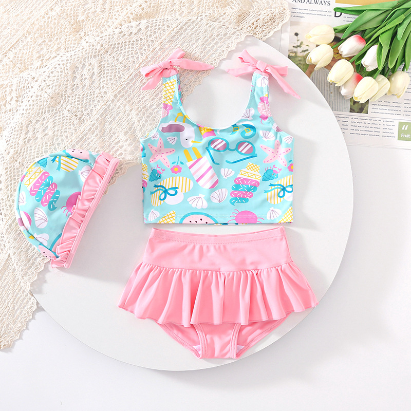 수출용 한국판 아동 수영복 여아용 투피스 비키니 해양 만화 캐릭터 여아용 속건성 수영복
