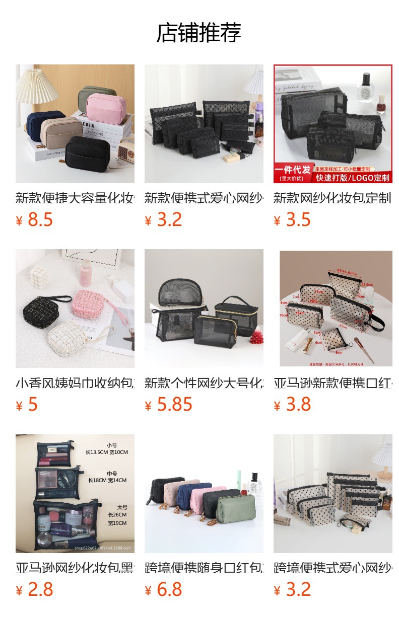 국경을 넘는 새로운 나일론 메쉬 화장품 가방, 대용량 방수 여행 가방, 개인화되고 편리한 화장품 보관 가방스토어 가기