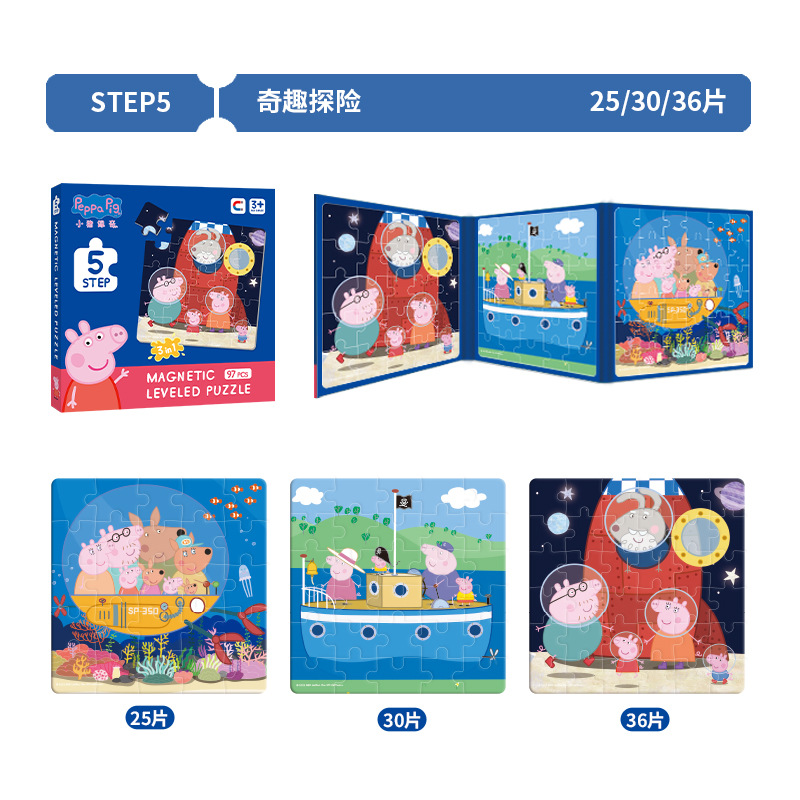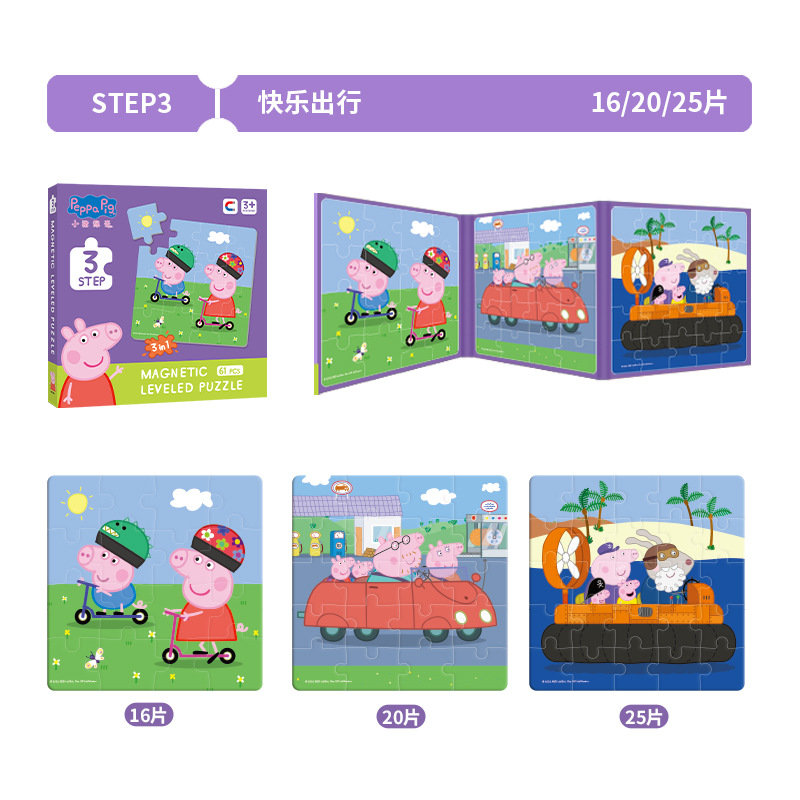 • 돼지-Page 3-in -1 자기 퍼즐 3 차-행복한 여행