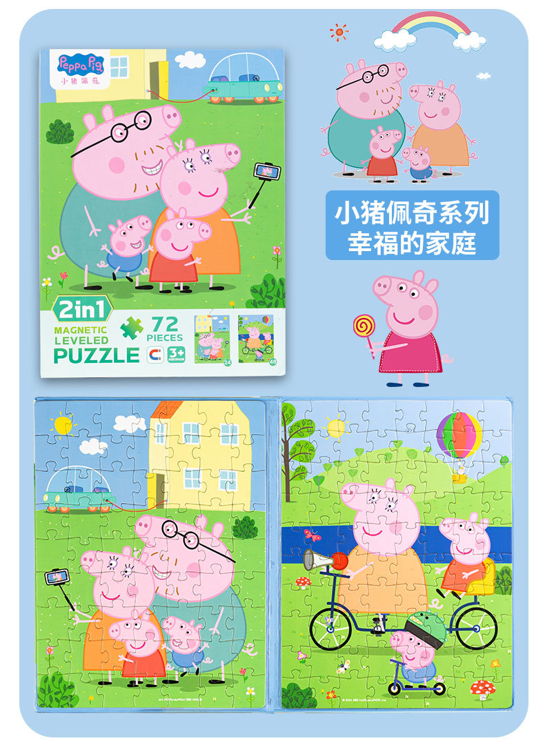 • 돼지-Page 3 in 1 자기 퍼즐 첫 주문-행복한 가족