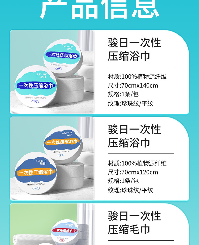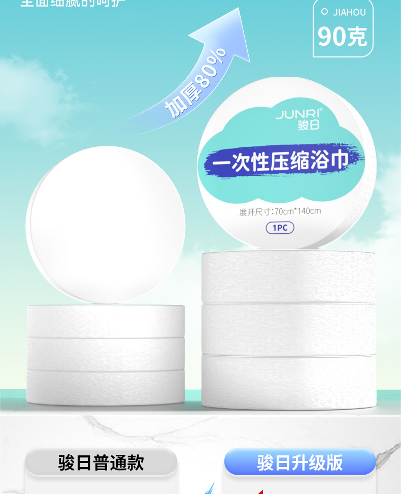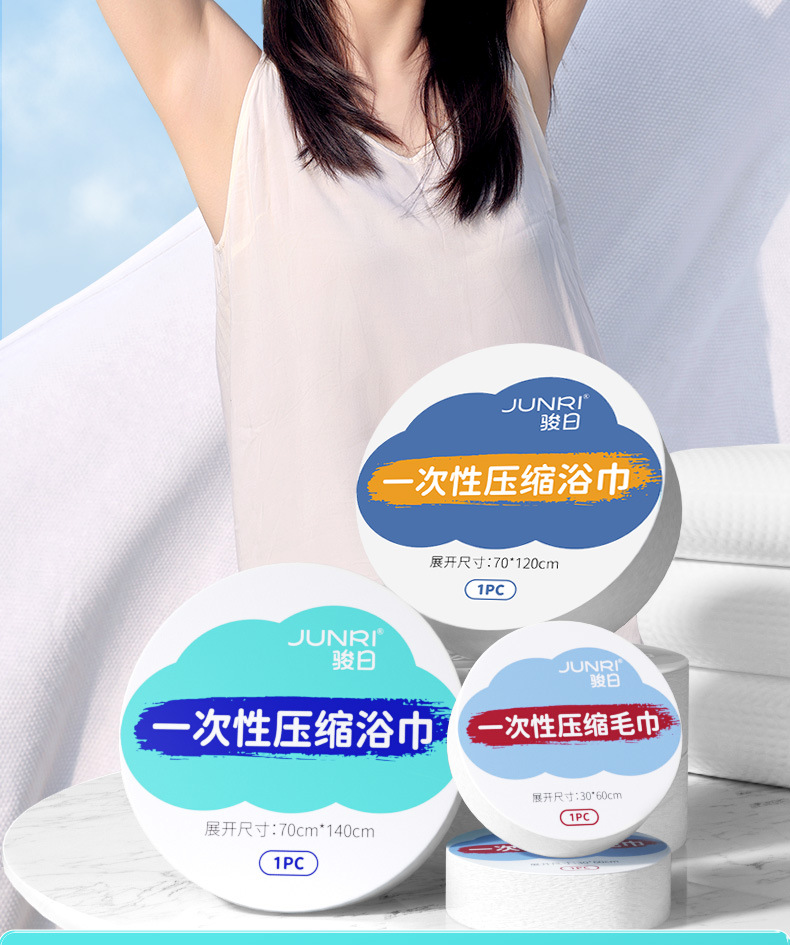 Junri 압축 수건 목욕 타월 일회용 얼굴 타월 두꺼운 큰 수 별도로 포장 된 여행 용품