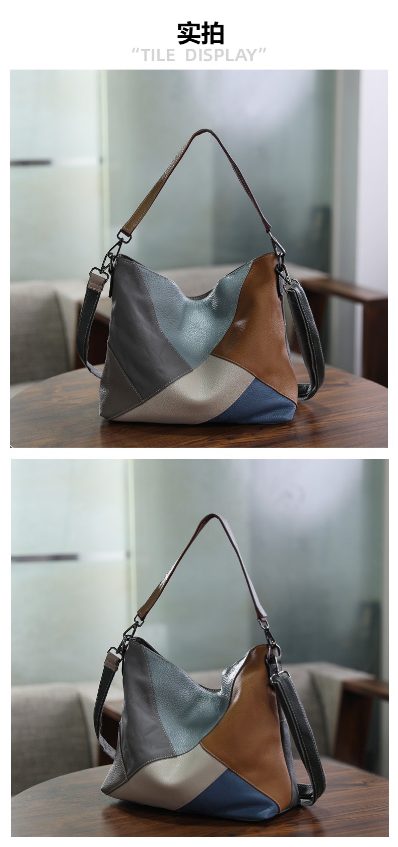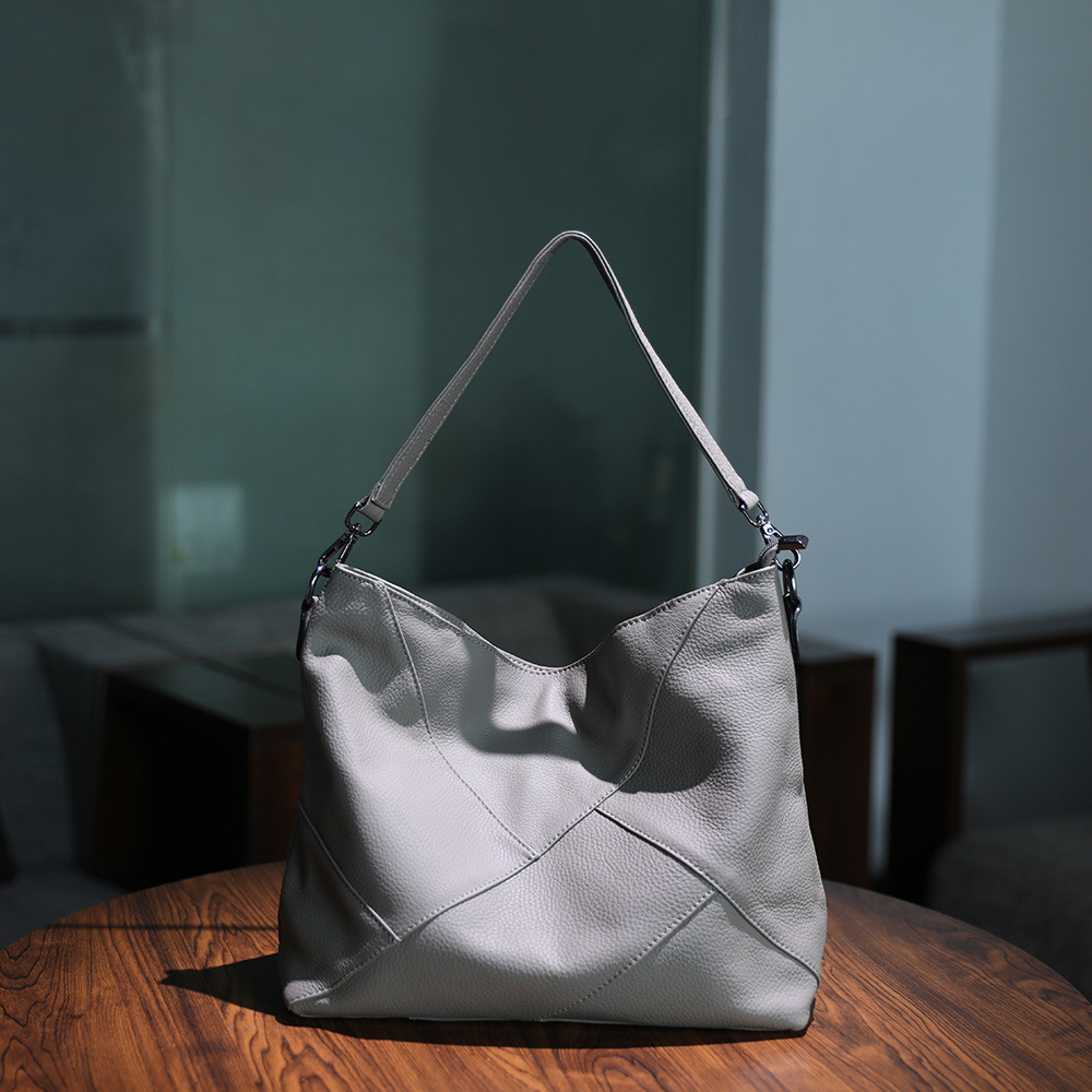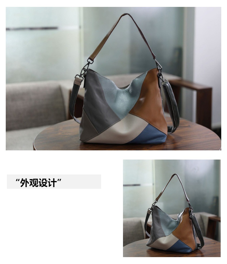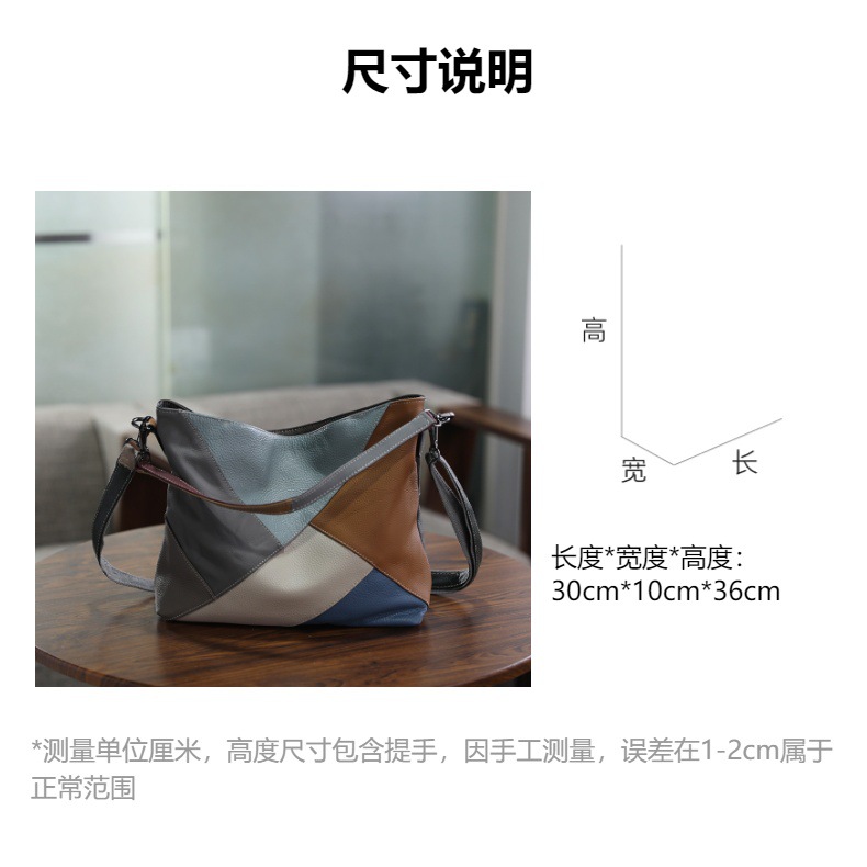 수제 오리지널 탑 레이어 Cowhide 대비 컬러 여성용 어깨 크로스 바디 백 정품 가죽 스티칭 컬러 대용량 여성용 가방스토어 가기