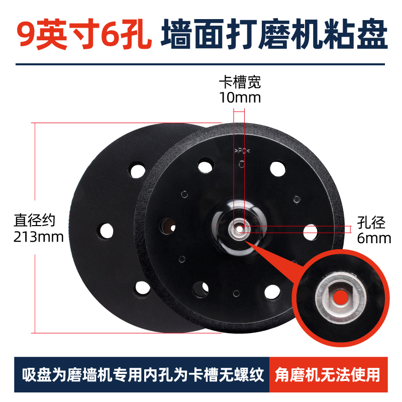 • 9.6inch 홀 벽 연삭기 흡입 컵 [검은색 표면 1개]