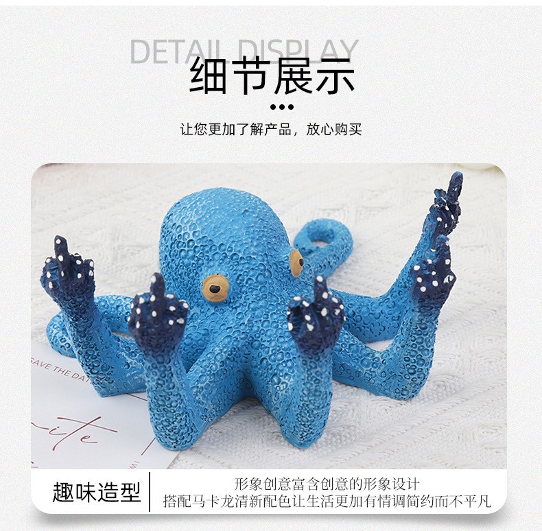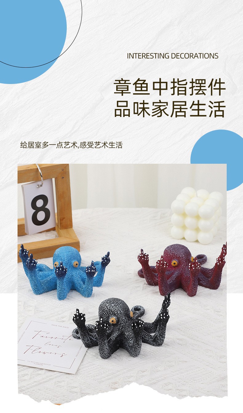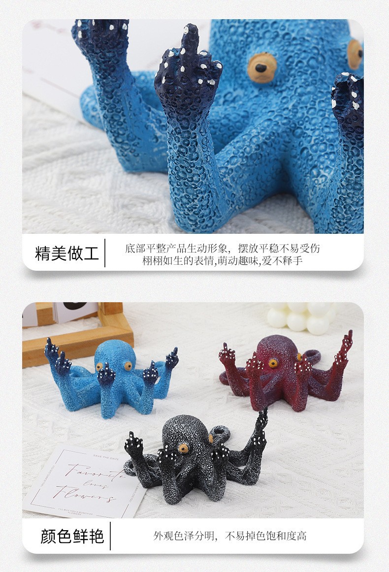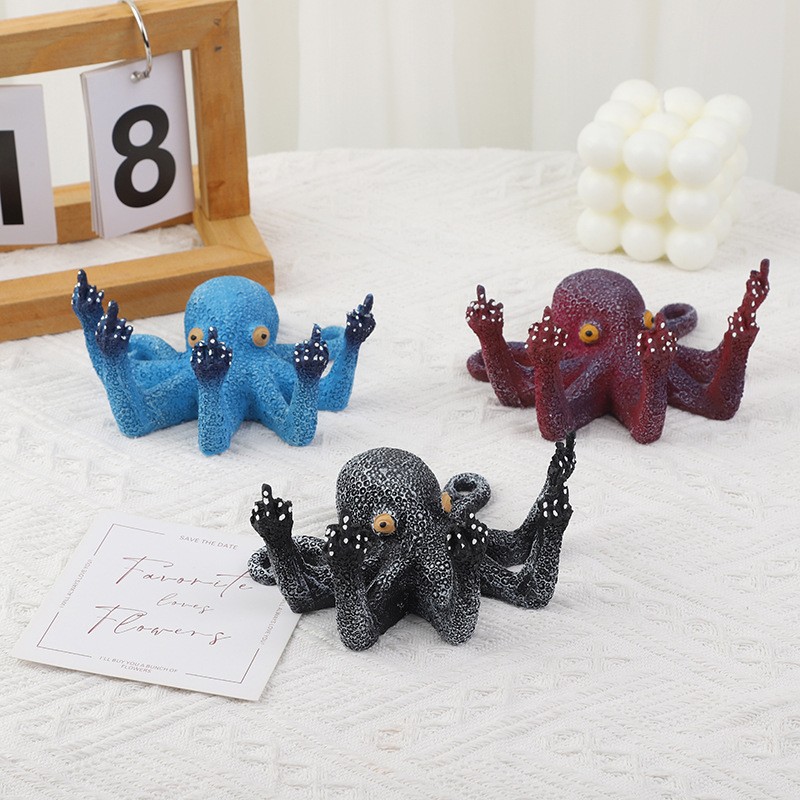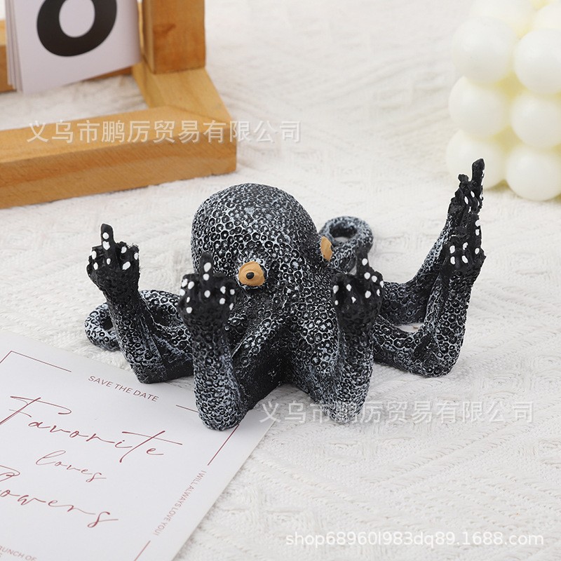 국경 간 뜨거운 판매 수지 수직 중간 손가락 문어 낙지 공예 시뮬레이션 조각 빛나는 문어 3 차원 장식품스토어 가기