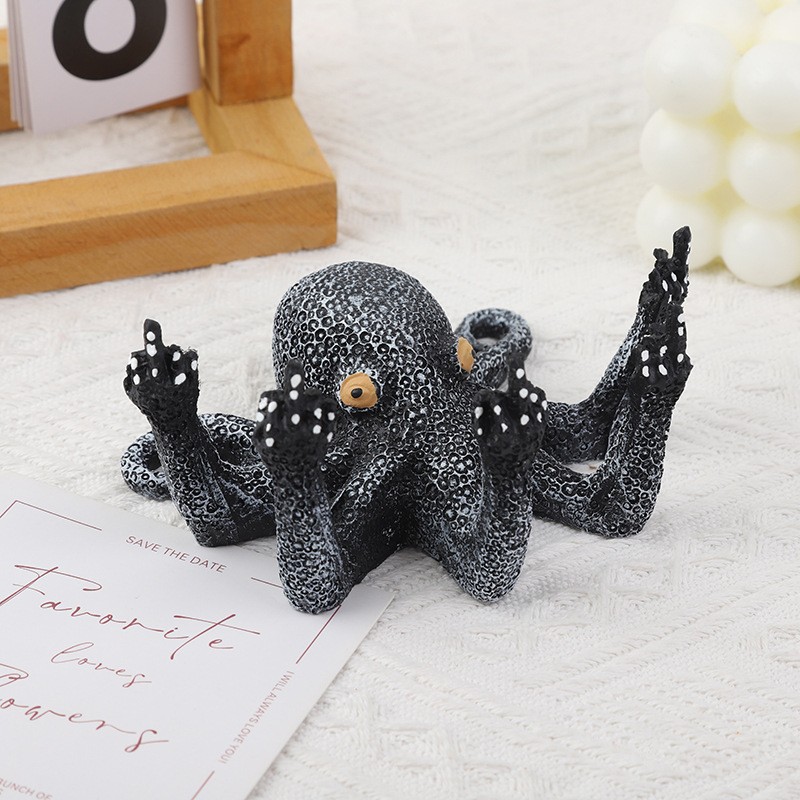 국경 간 뜨거운 판매 수지 수직 중간 손가락 문어 낙지 공예 시뮬레이션 조각 빛나는 문어 3 차원 장식품