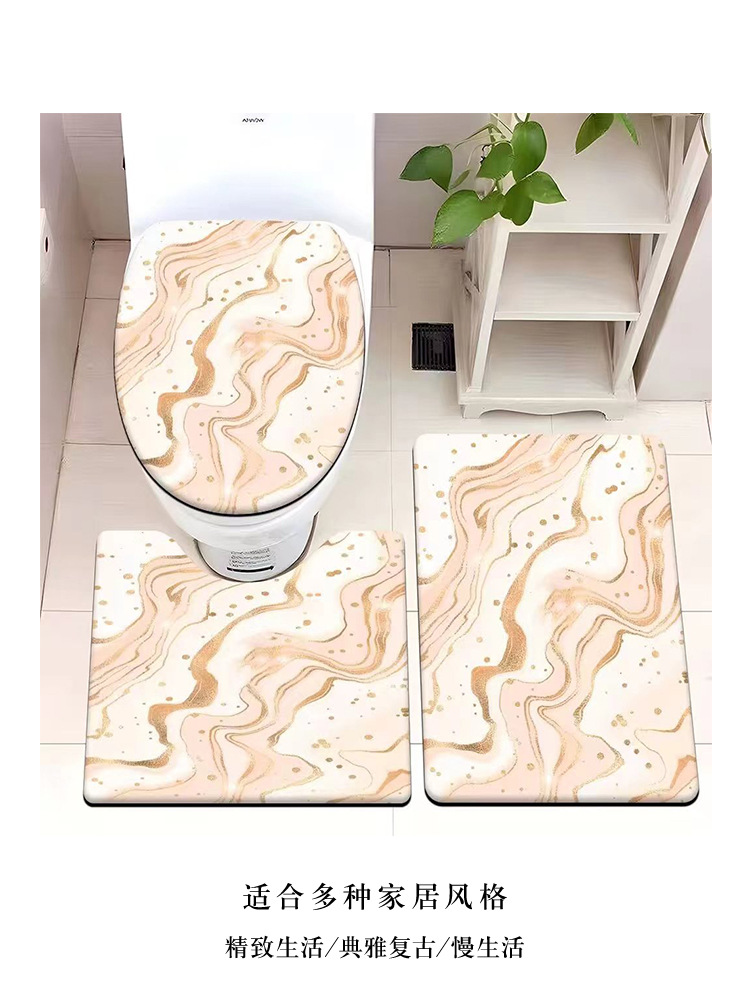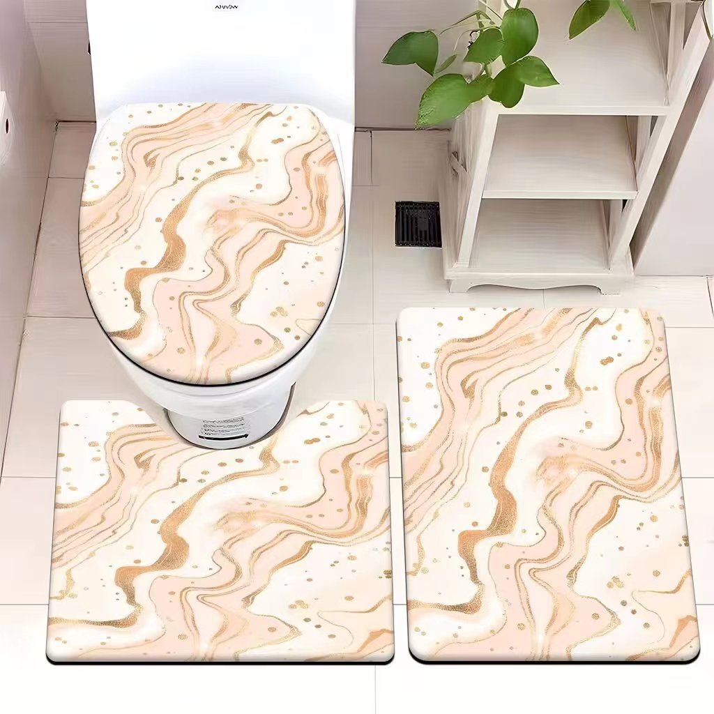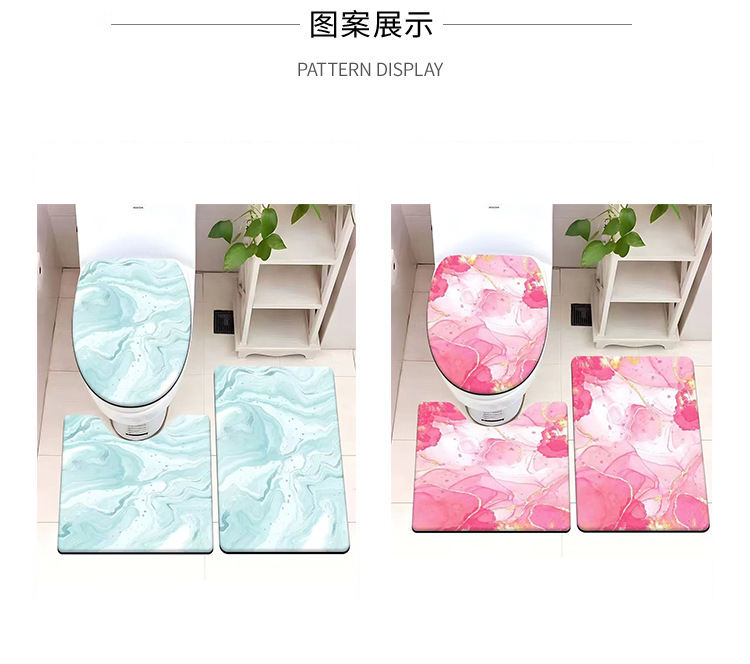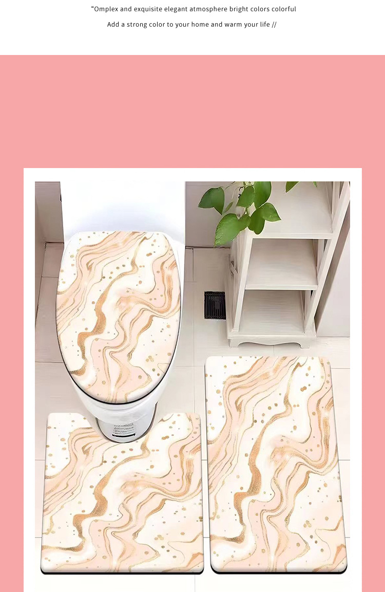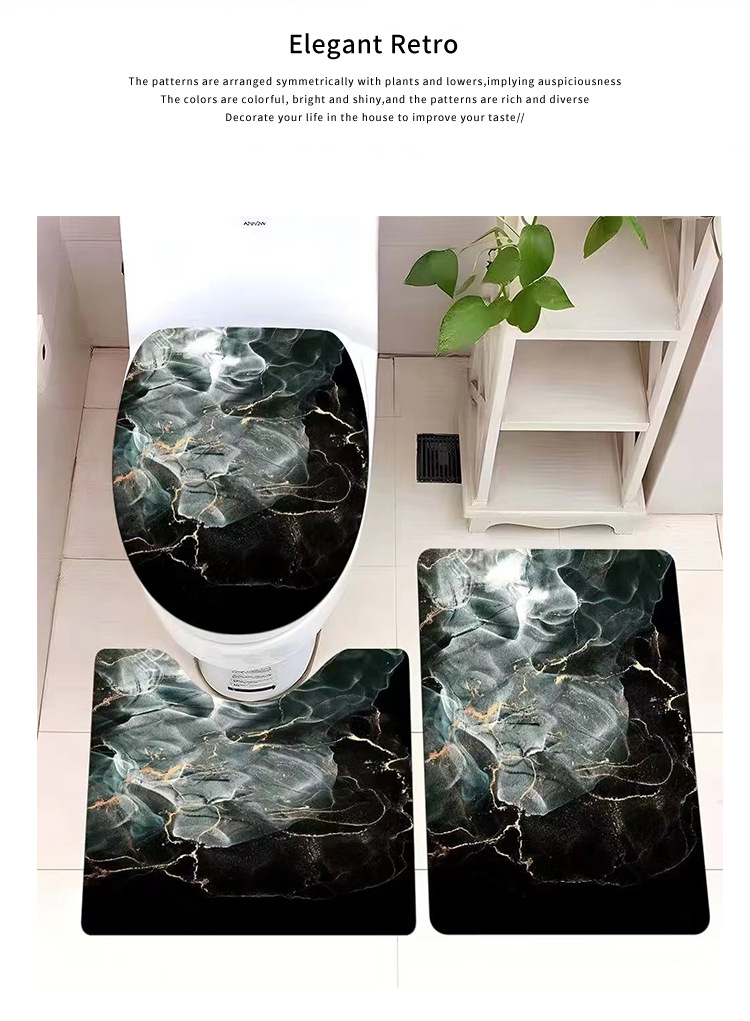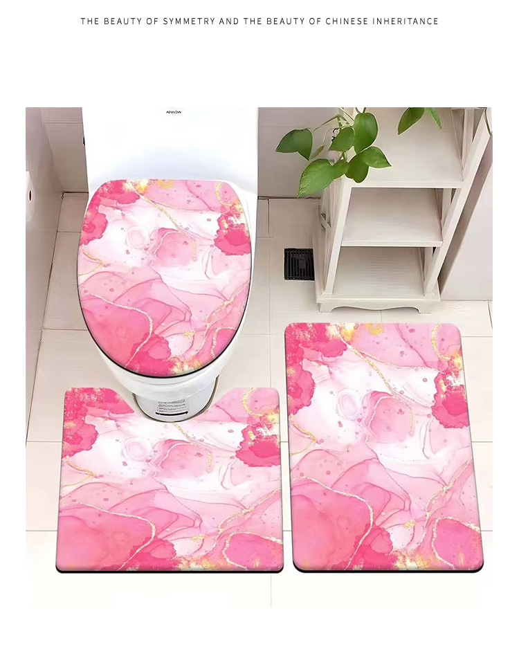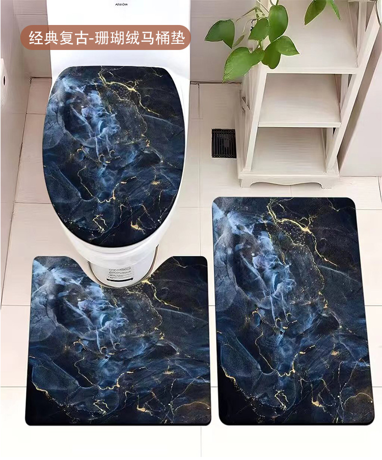 빈티지 산호 양털 화장실 3 종 세트 흡수성 먼지 방지 쉬운 관리 바닥 매트 욕실 미끄럼 방지 대리석 패턴 발 매트