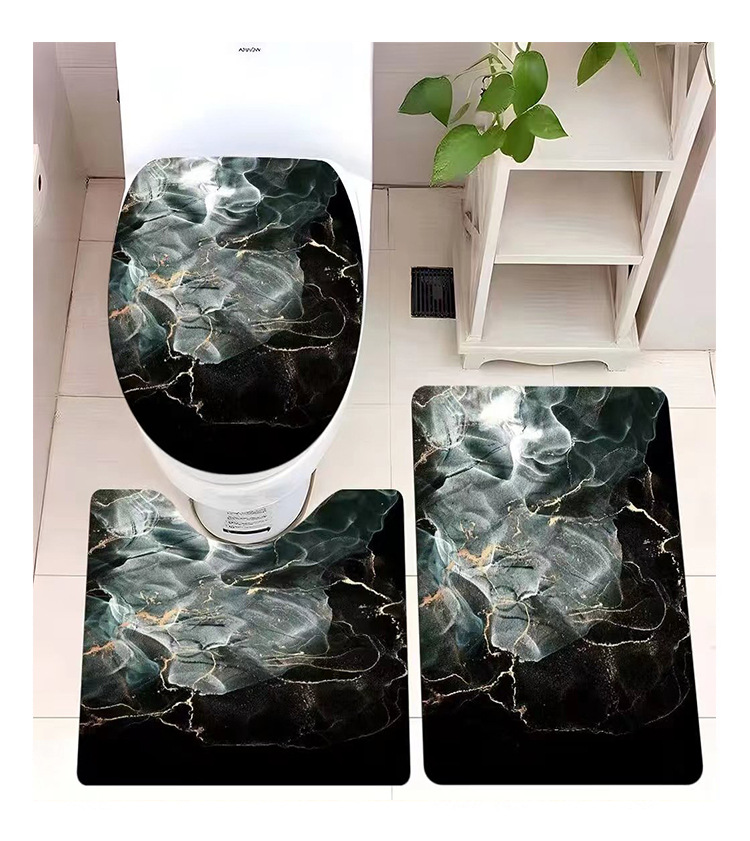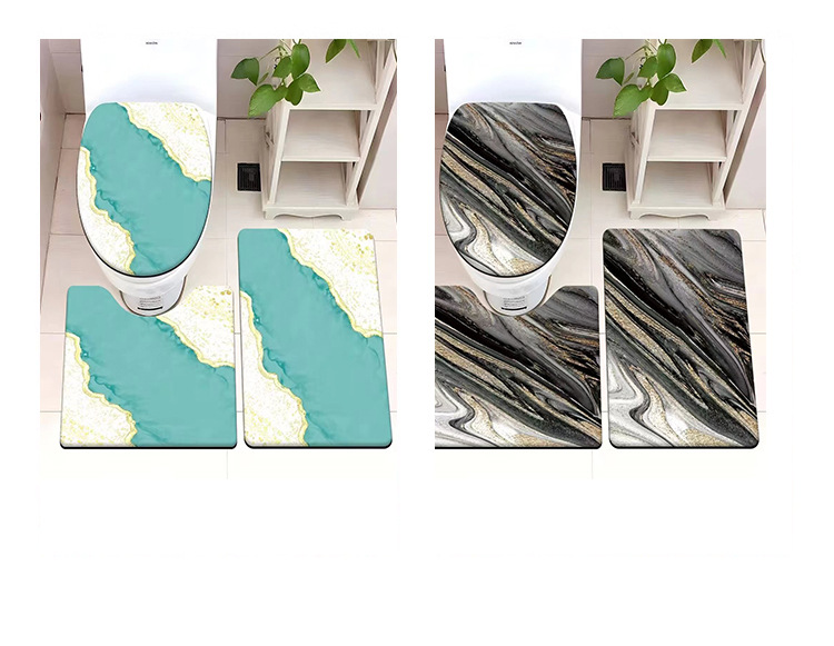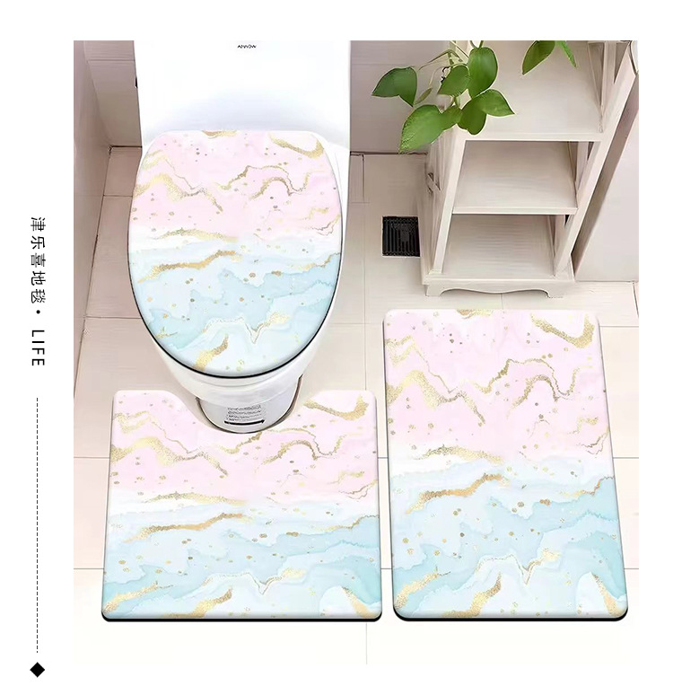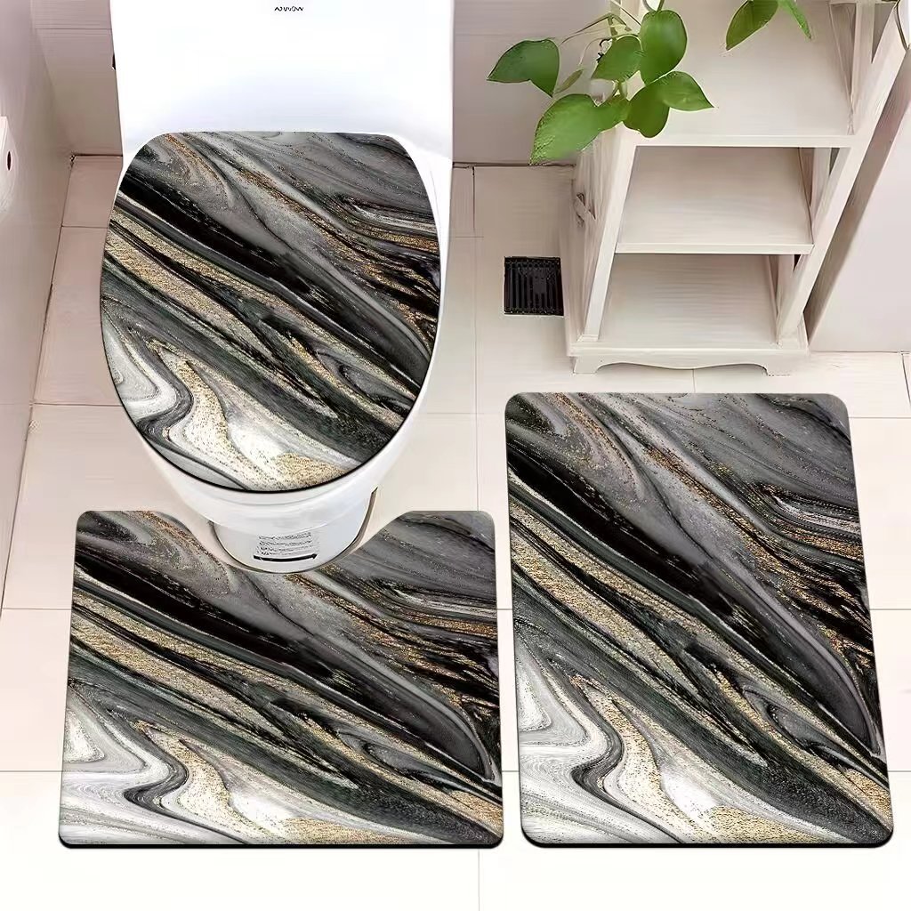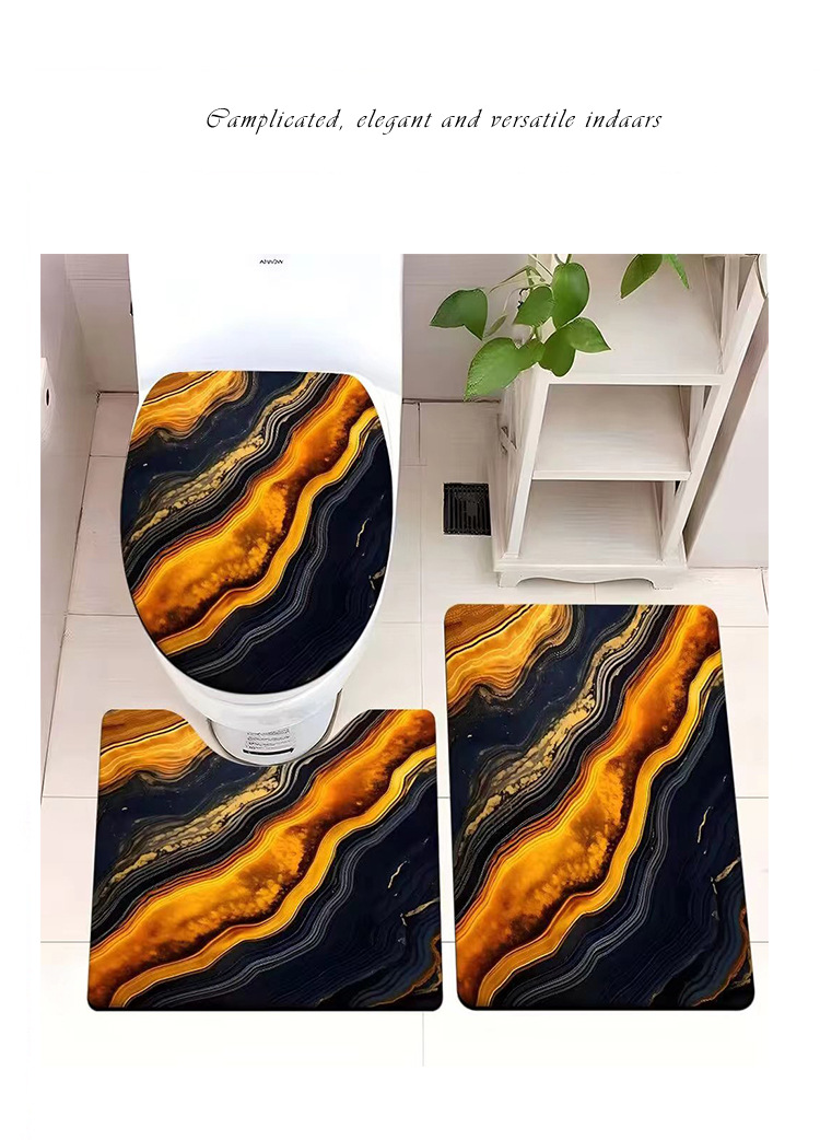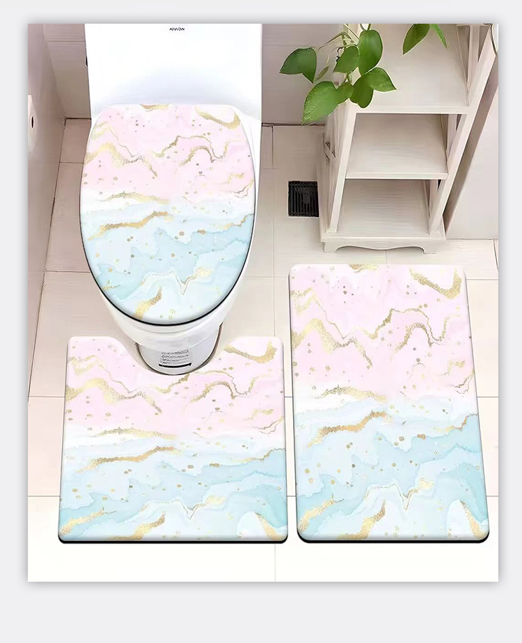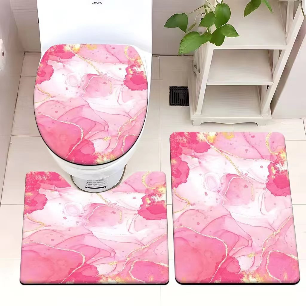 빈티지 산호 양털 화장실 3 종 세트 흡수성 먼지 방지 쉬운 관리 바닥 매트 욕실 미끄럼 방지 대리석 패턴 발 매트