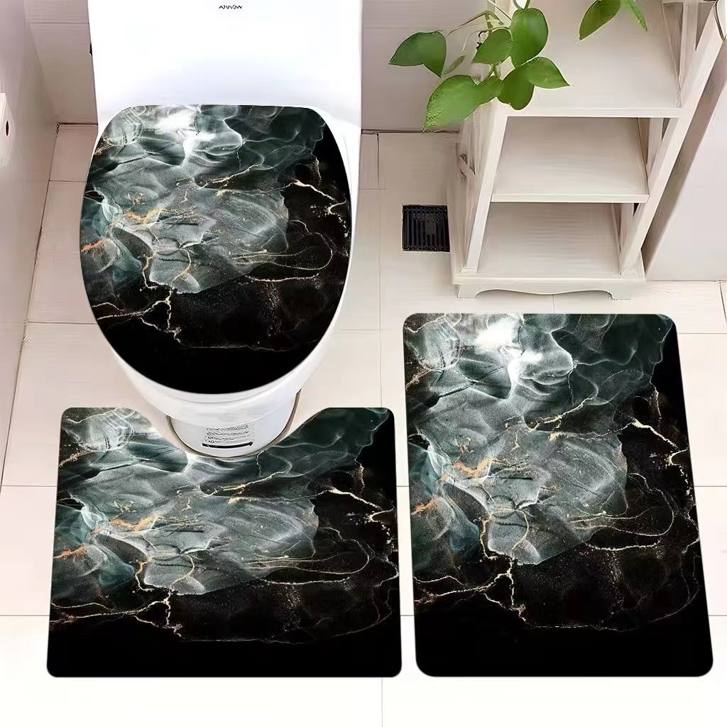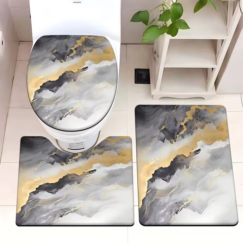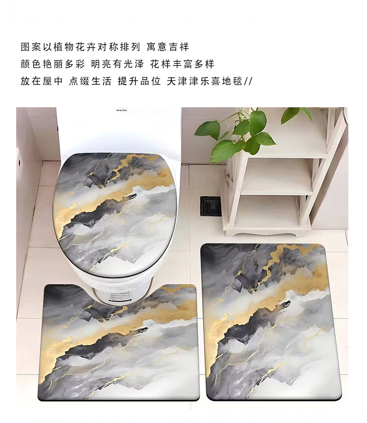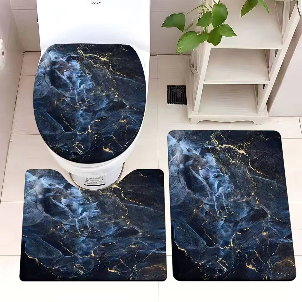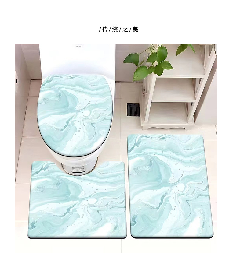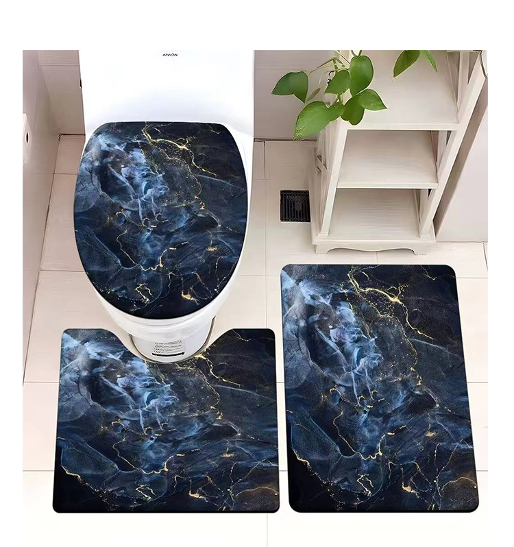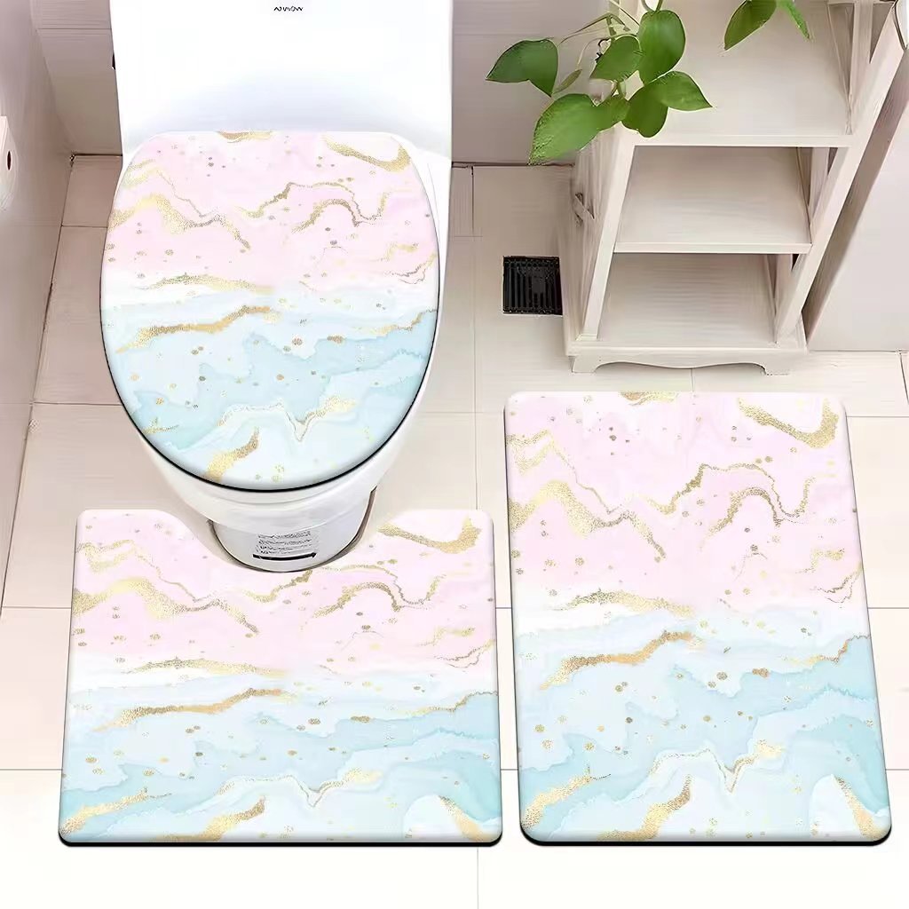 빈티지 산호 양털 화장실 3 종 세트 흡수성 먼지 방지 쉬운 관리 바닥 매트 욕실 미끄럼 방지 대리석 패턴 발 매트