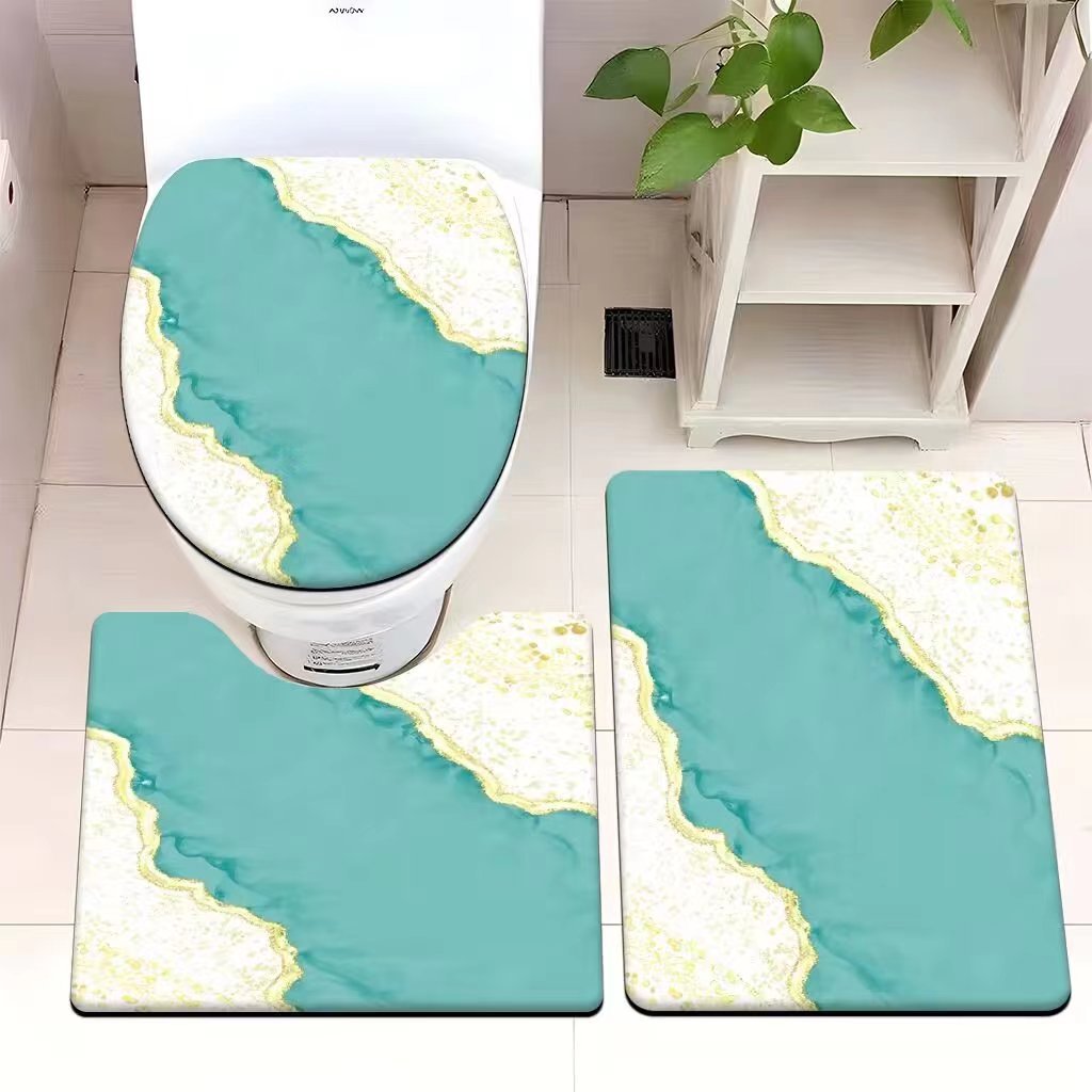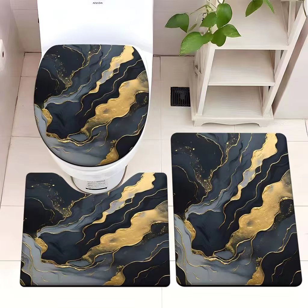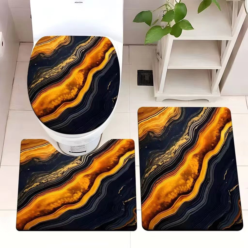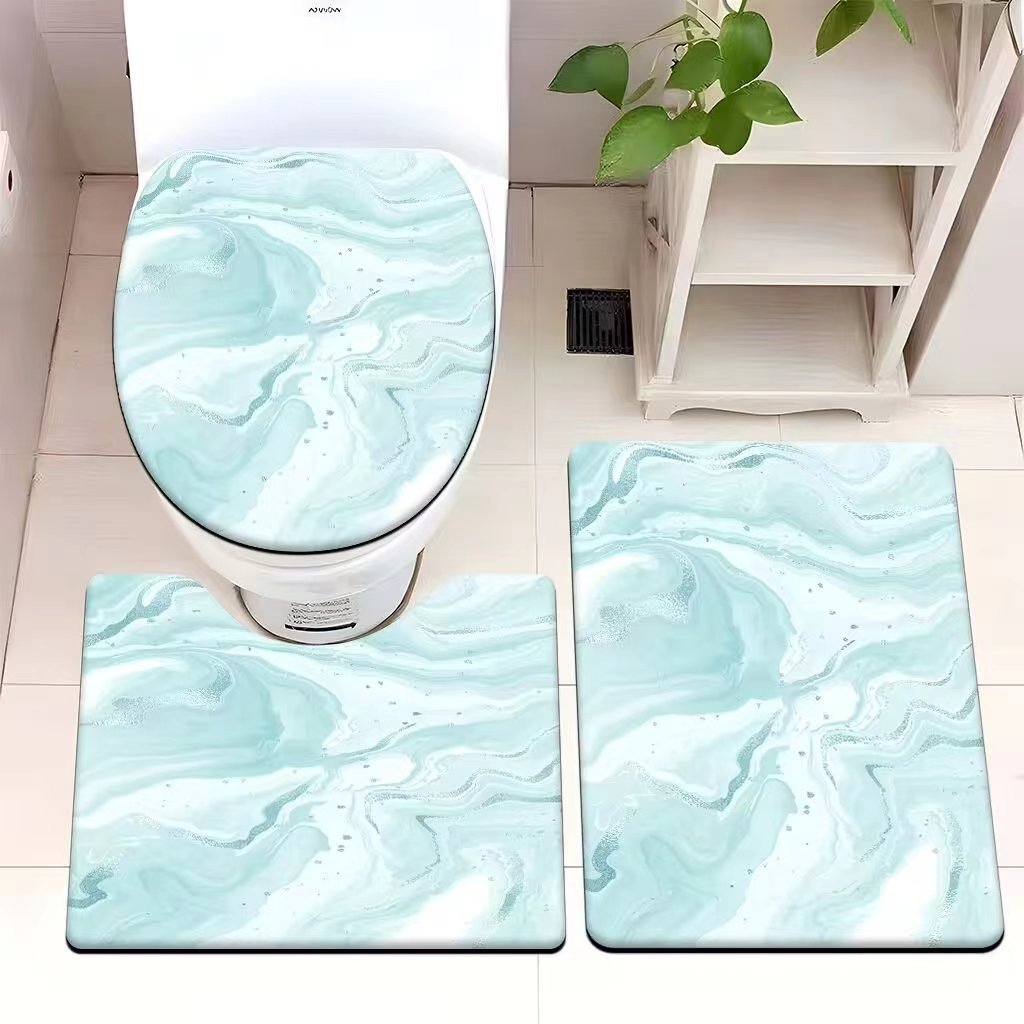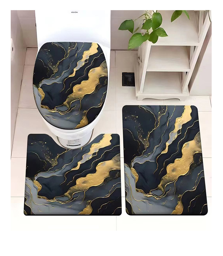 빈티지 산호 양털 화장실 3 종 세트 흡수성 먼지 방지 쉬운 관리 바닥 매트 욕실 미끄럼 방지 대리석 패턴 발 매트