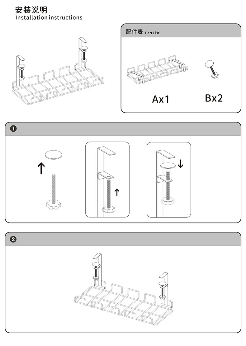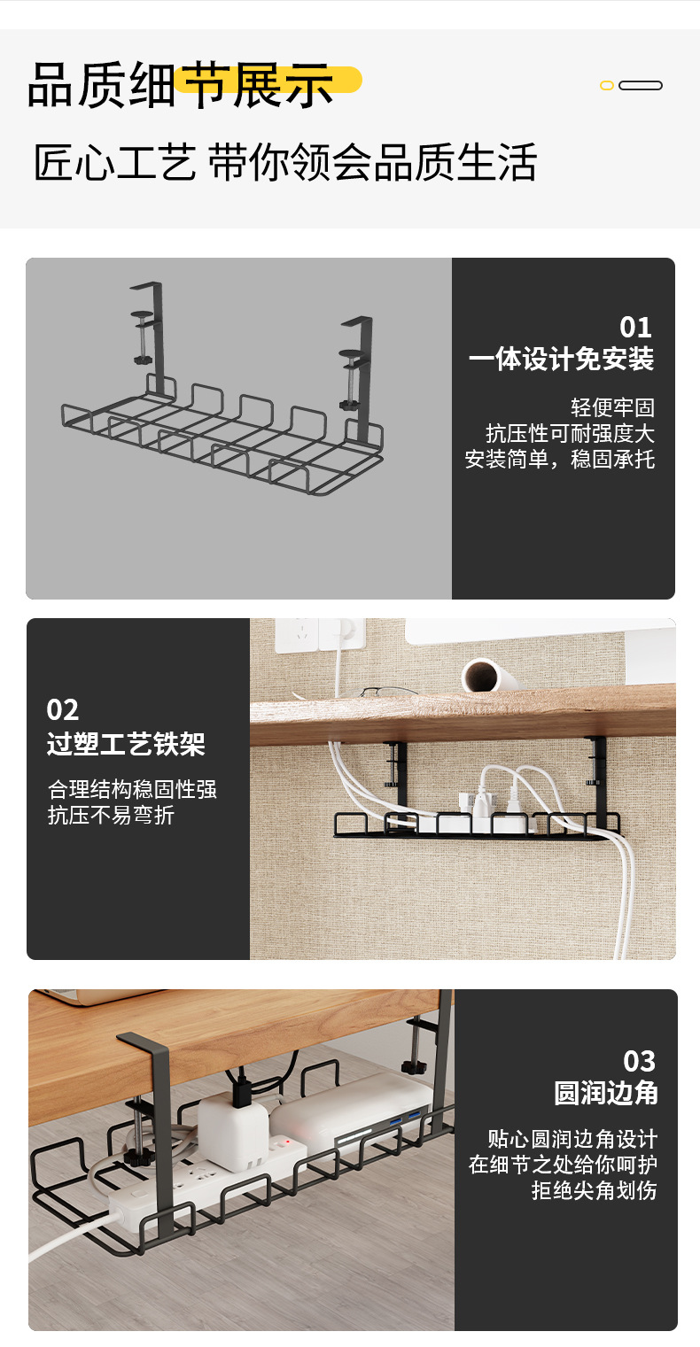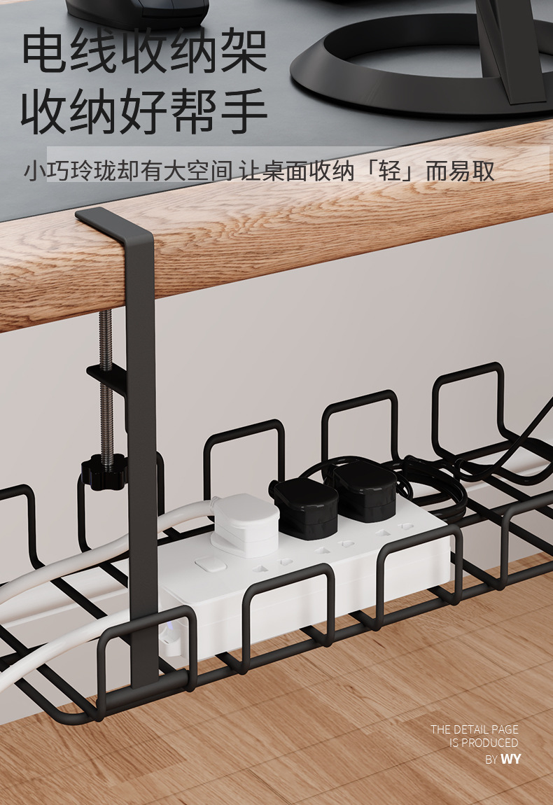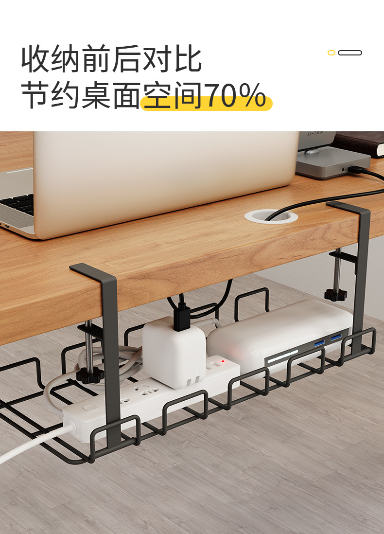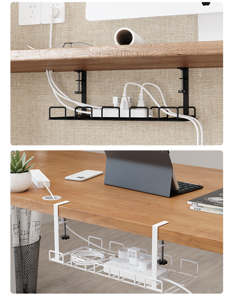 무타공 케이블 정리대, 책상 밑 전선 및 콘센트 정리용 철제 사무실 책상 밑 수납 선반/정리대