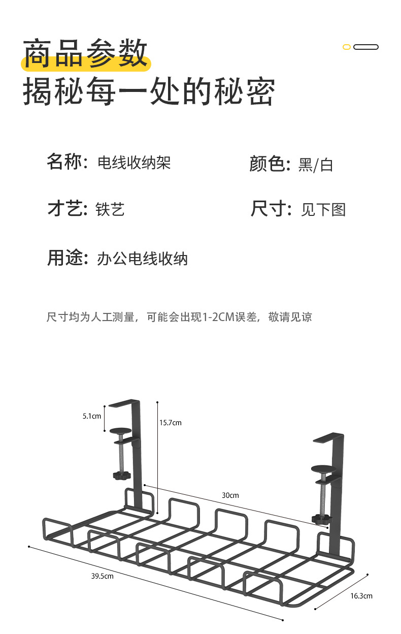 무타공 케이블 정리대, 책상 밑 전선 및 콘센트 정리용 철제 사무실 책상 밑 수납 선반/정리대스토어 가기