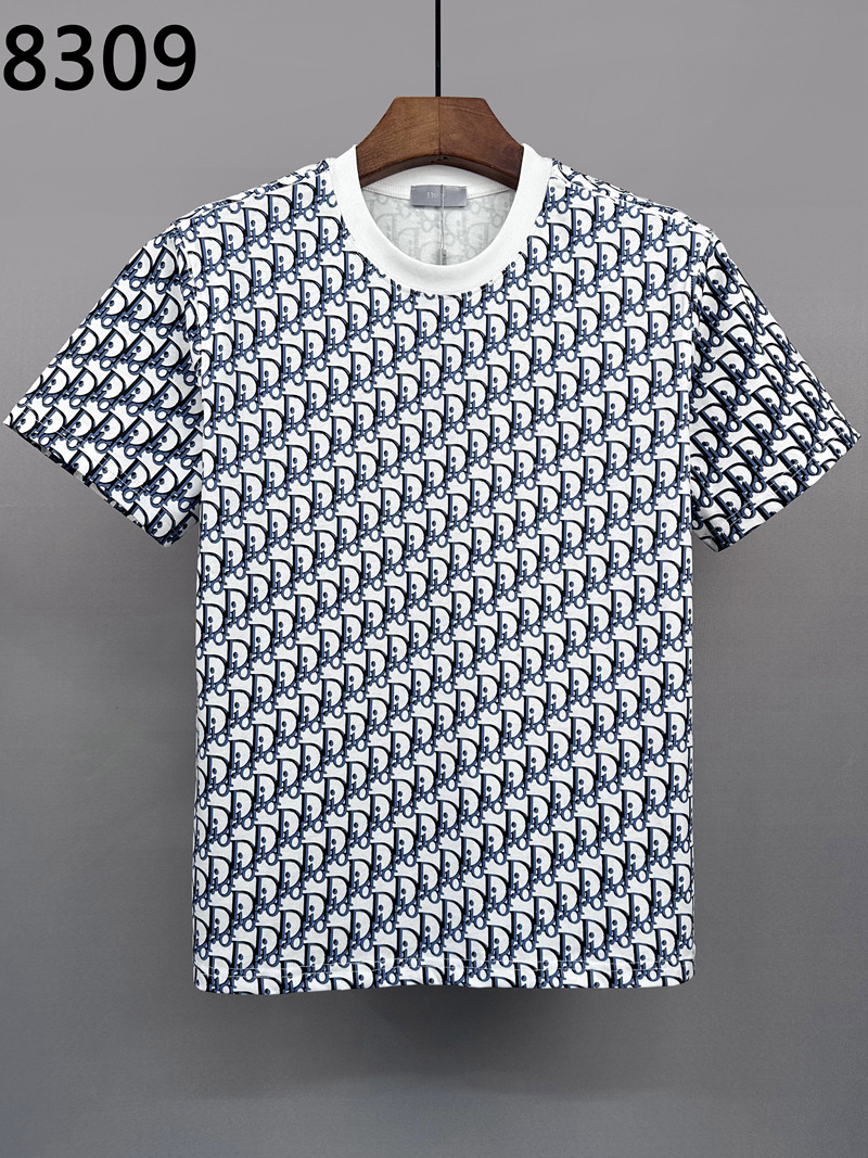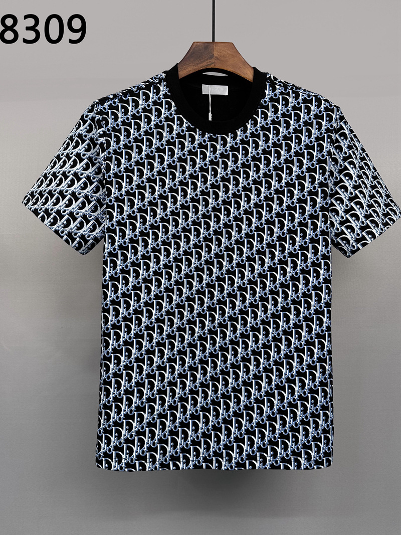 D 가족 컬렉션 마이크로 와이드 버전 느슨한 인쇄 짧은 소매 티셔츠 240g 코튼 라운드 넥 남성 짧은 소매 재킷 크로스 보더 하프 슬리브