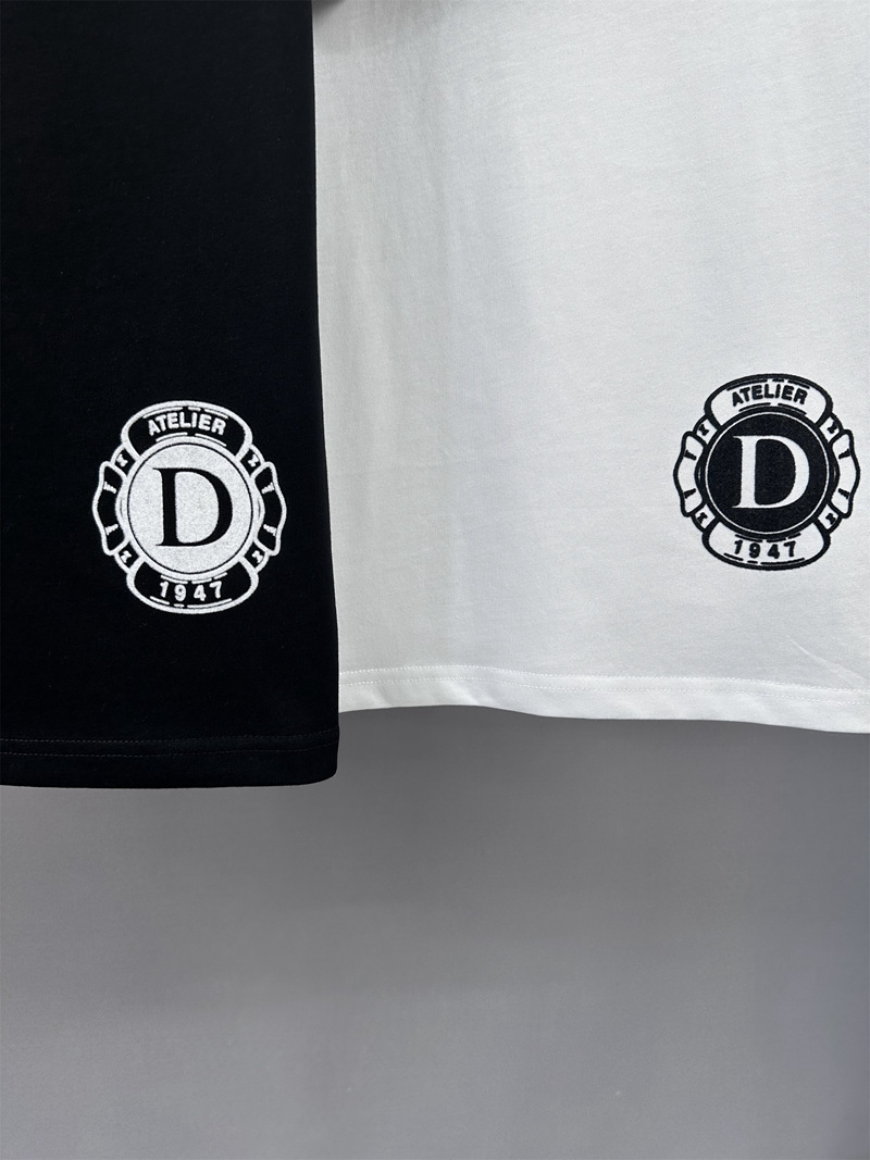 D 가족 컬렉션 마이크로 와이드 버전 느슨한 인쇄 짧은 소매 티셔츠 240g 코튼 라운드 넥 남성 짧은 소매 재킷 크로스 보더 하프 슬리브스토어 가기