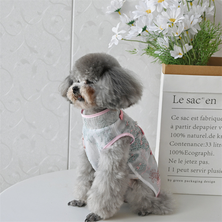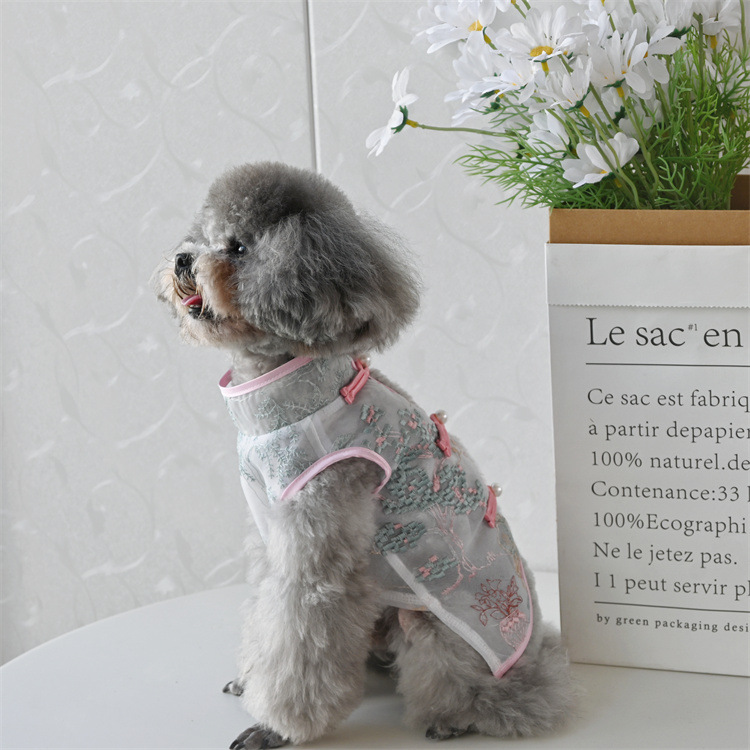 애완 동물 개 여름 조끼 메쉬 가벼운 자외선 차단제 테디 베어 보메이 새로운 중국 cheongsam 공장 도매