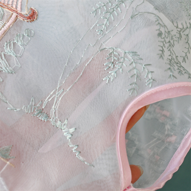 新款新中式国风刺绣背心面料采用欧根纱刺绣,亭台楼阁图案,内力采用优质高密欧根纱面料,因是绣花图案,每一件衣服的图案不会统一,介意慎拍! S胸围  30     背长   20   脖围25建议3斤以内