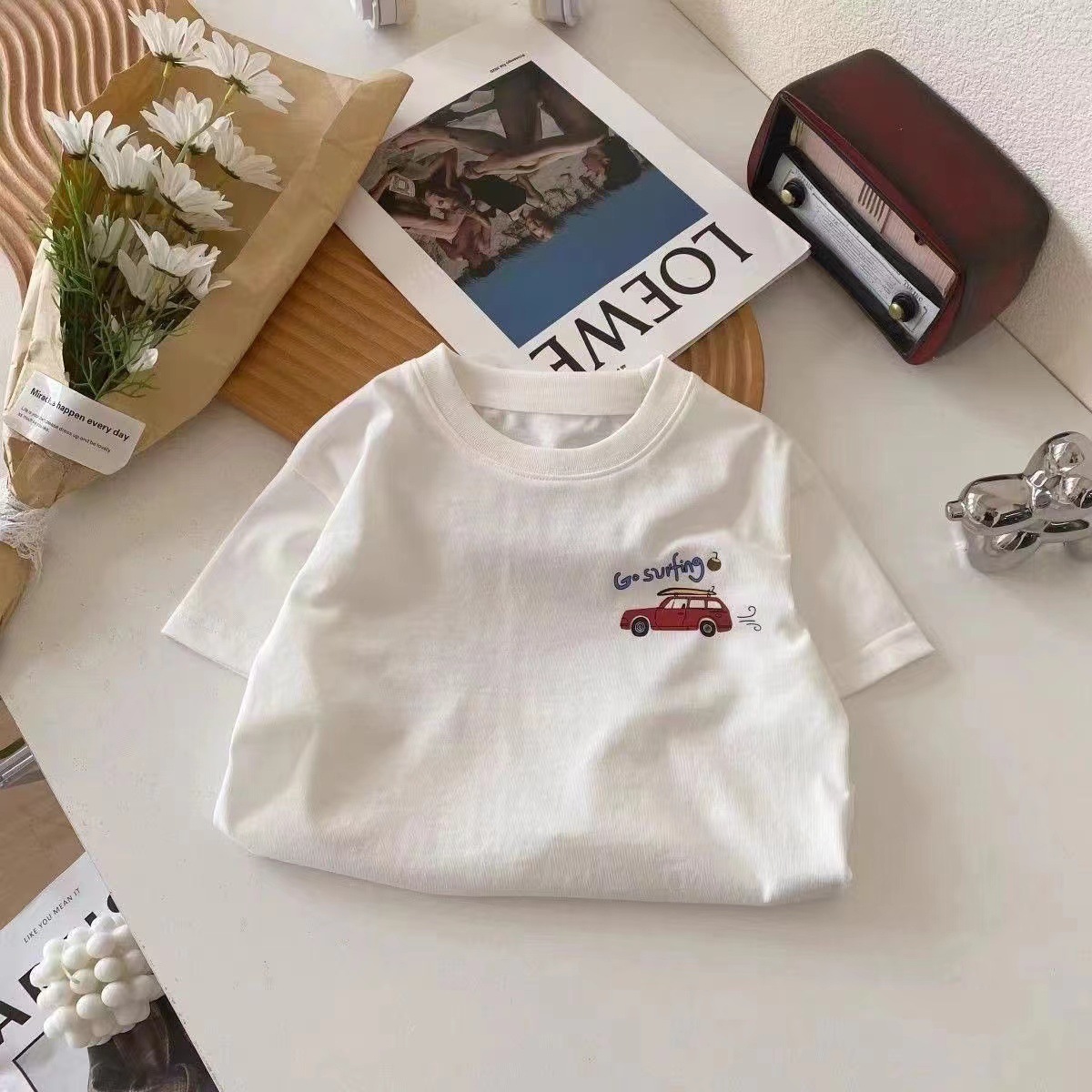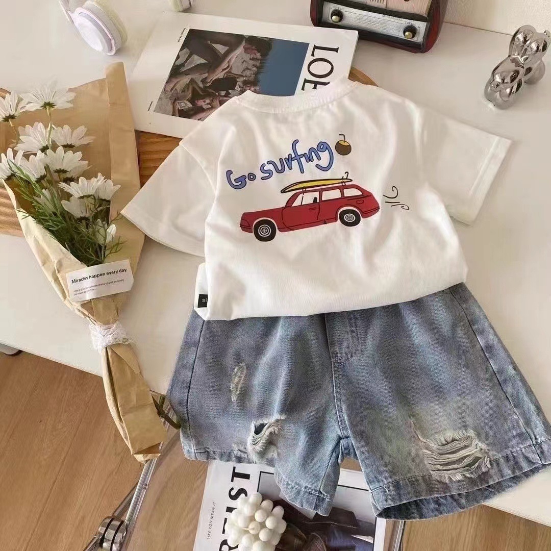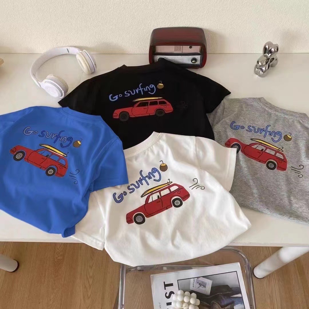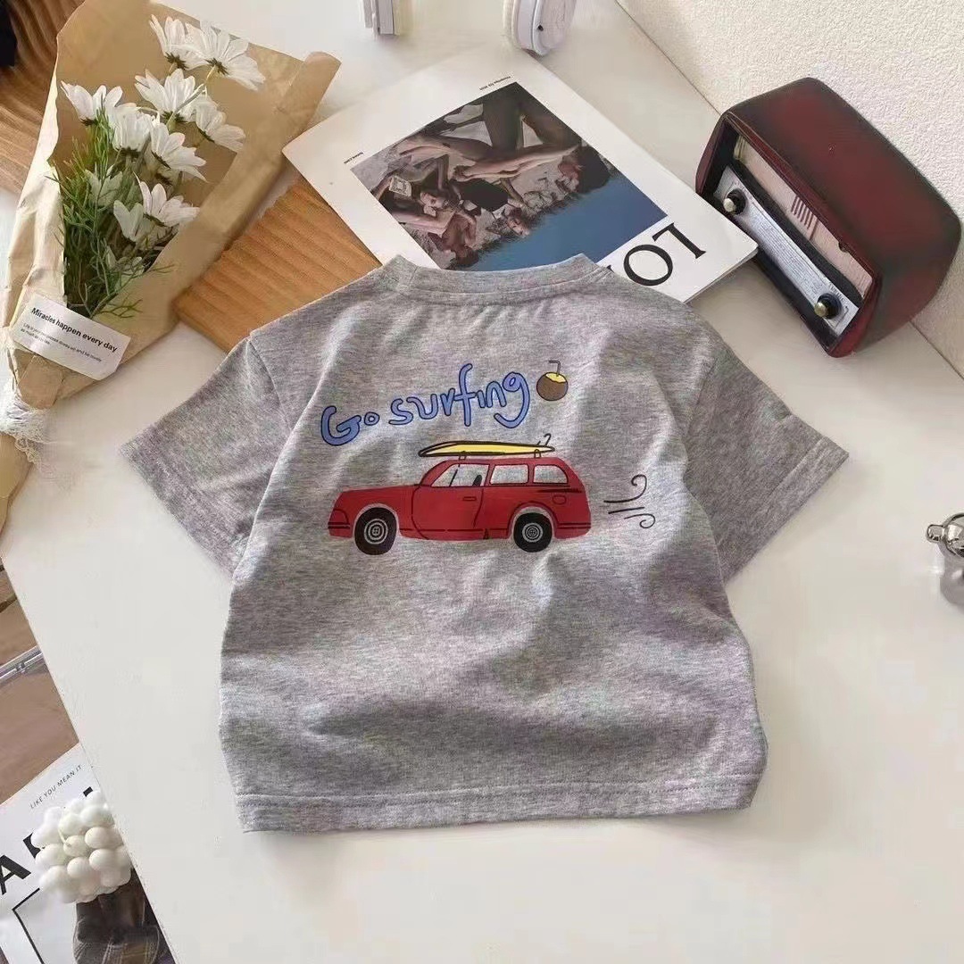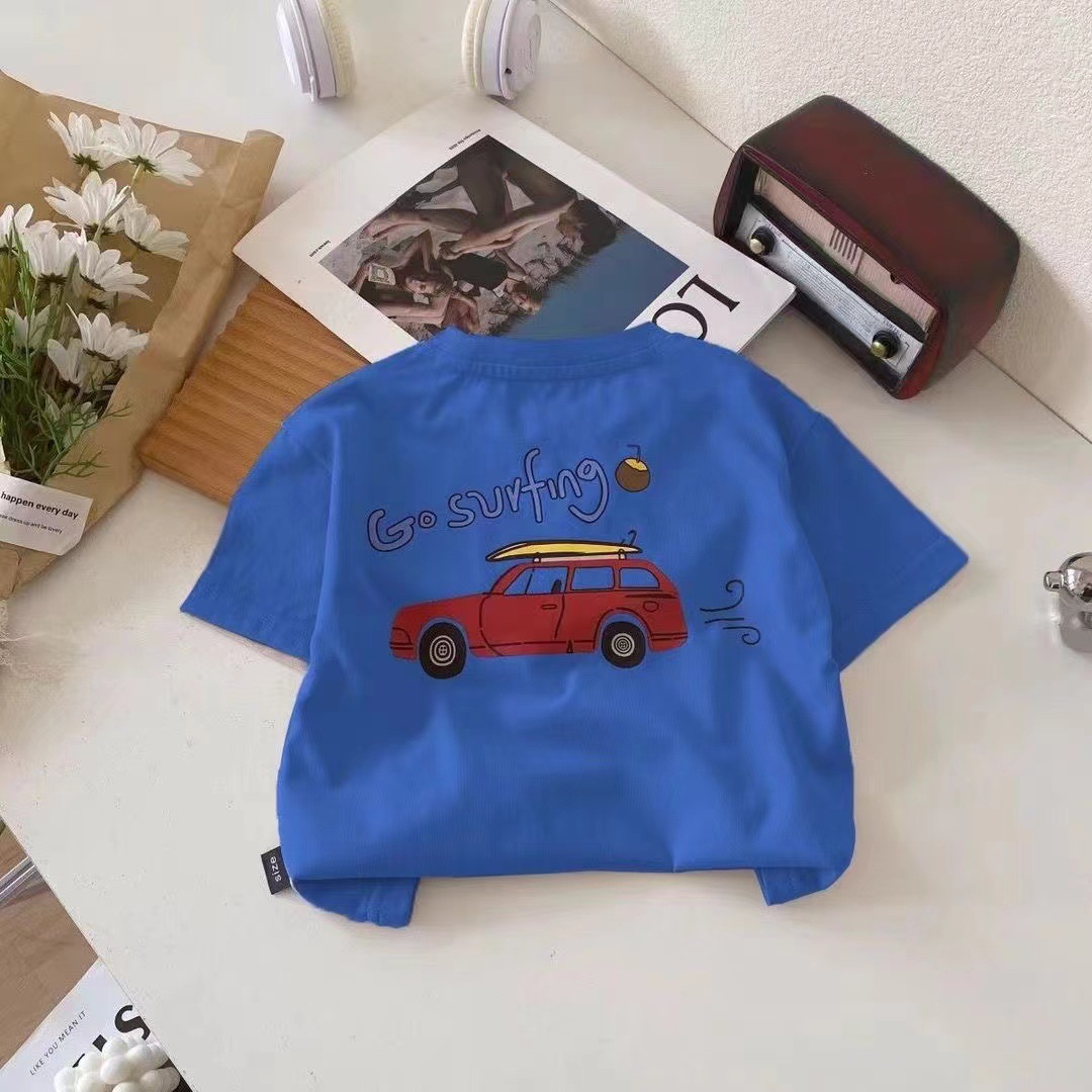 100 면 여름 반소매 티셔츠 새로운 스타일 중소 아기 만화 승무원 목 인쇄 서양식 반소매 탑 코튼스토어 가기