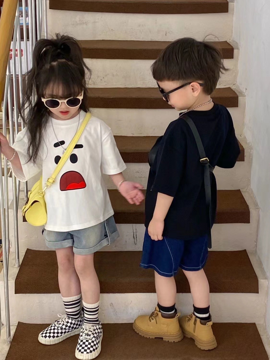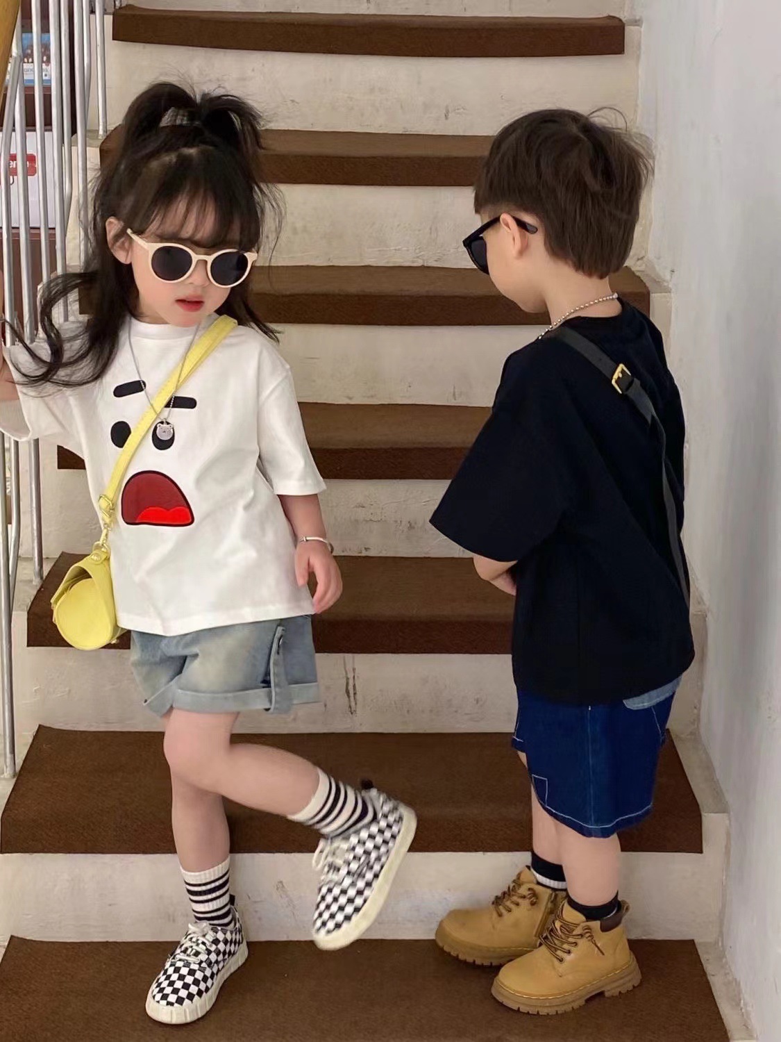 코튼 소년과 소녀 어린이 홍콩 스타일 반팔 티셔츠 여름 새로운 한국 패셔너블 루즈 아동복 반소매 탑 T