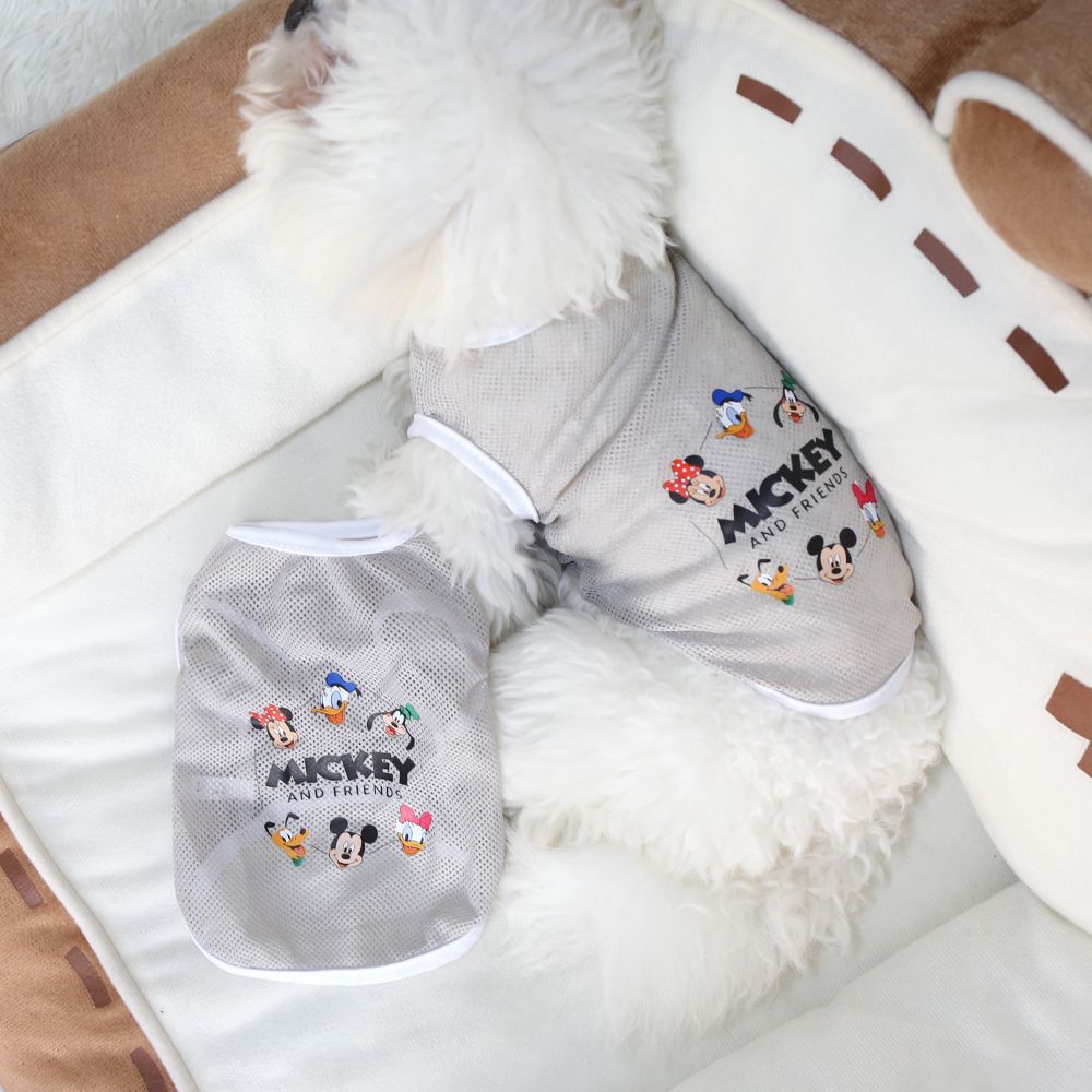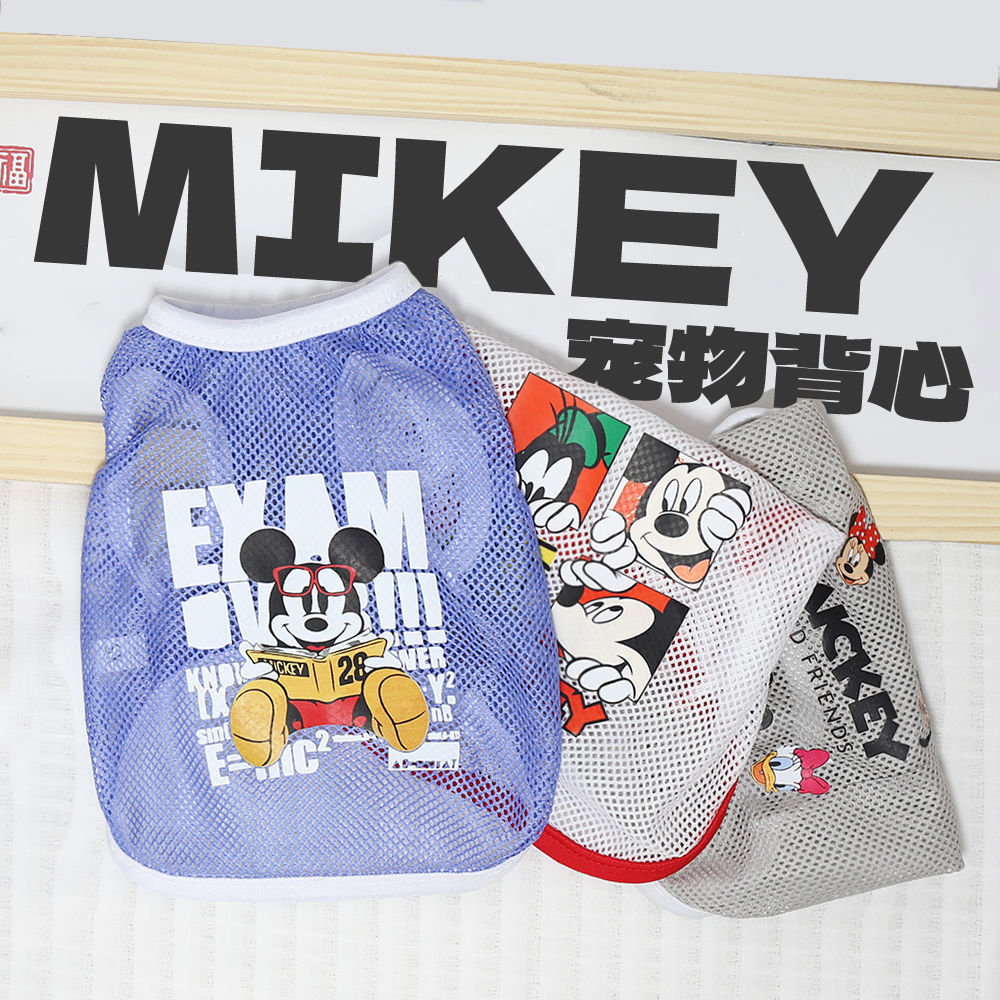 고양이와 개 여름 그리드 통기성 애완 동물 얇은 만화 미키 인쇄 옷 포메리 황금 머리 빅시 큰 개스토어 가기