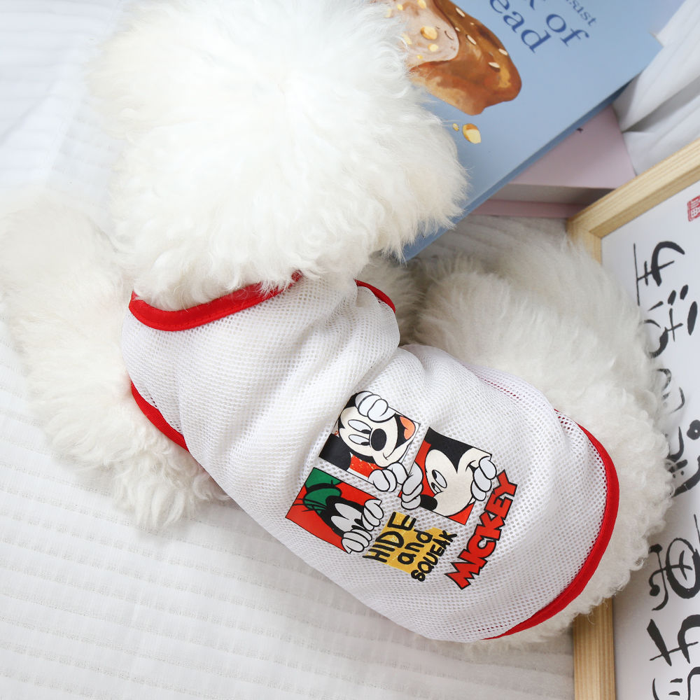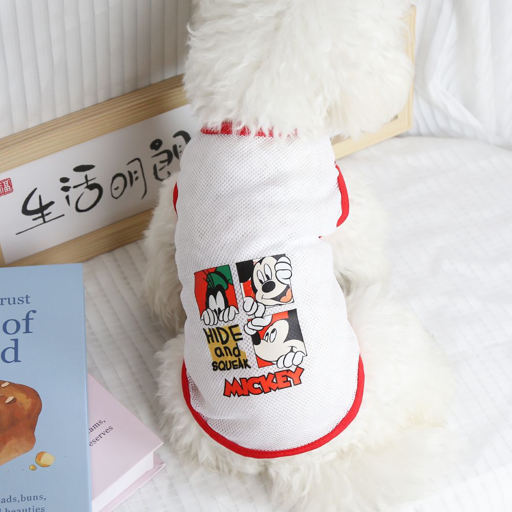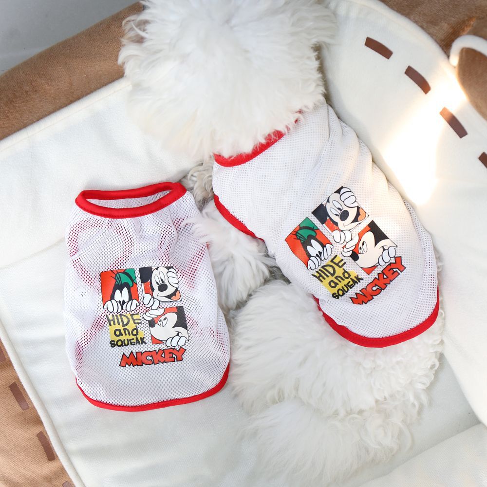 고양이와 개 여름 그리드 통기성 애완 동물 얇은 만화 미키 인쇄 옷 포메리 황금 머리 빅시 큰 개