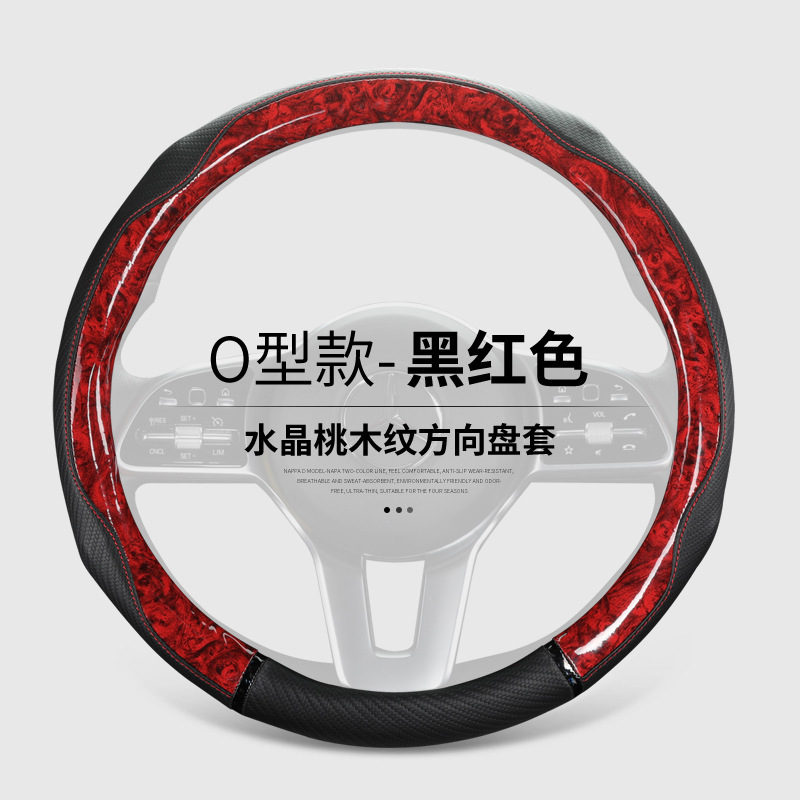 새로운 크리스탈 복숭아 우드 그레인 자동차 스티어링 휠 커버 탄소 섬유 미끄럼 방지 사계절 유니버설 국경 아마존 핸들 커버