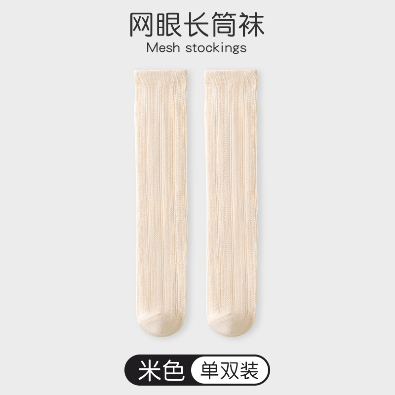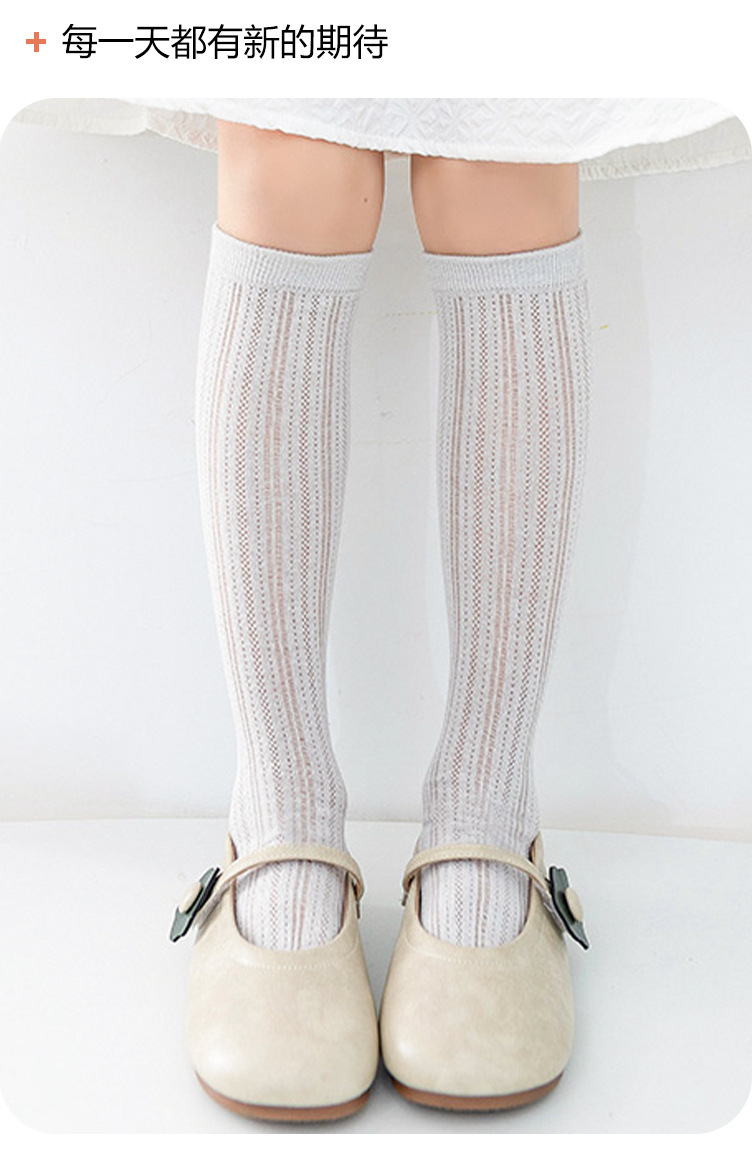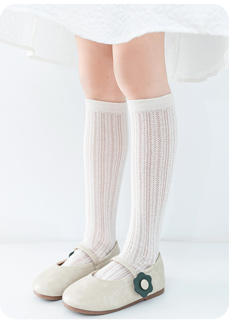 소녀 스타킹 여름 얇은 어린이 미드 튜브 스타킹 메쉬 통기성 흰색 하이 튜브 스타킹 소녀 아기 하프 튜브 스타킹