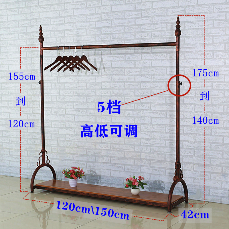 유럽식 복고풍 의류 매장 디스플레이 랙 바닥 랙 디스플레이 옷걸이 남녀 아동복 텔레스코픽 리프팅 수평 바 선반