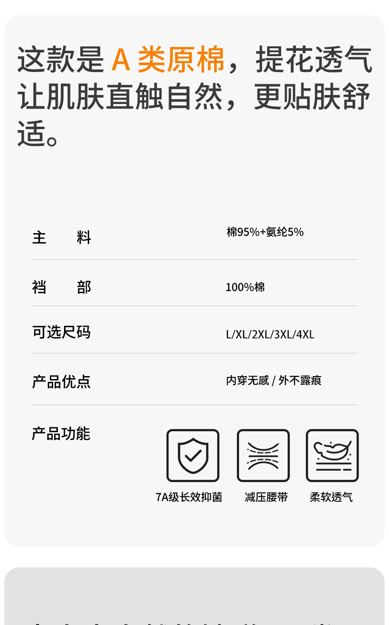 2025 신제품 남성 순면 가랑이 팬티 7A 오리지널 코튼 사각팬티 7A 베이비 코튼 항균 오리지널 코튼 남성 속옷 여름용스토어 가기