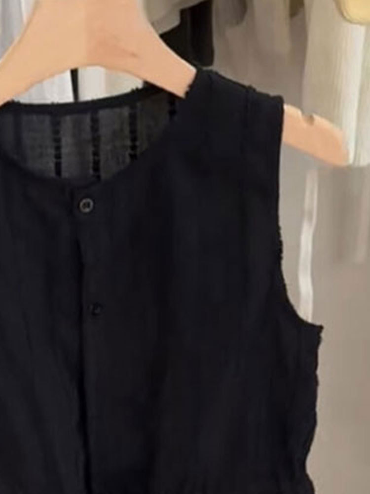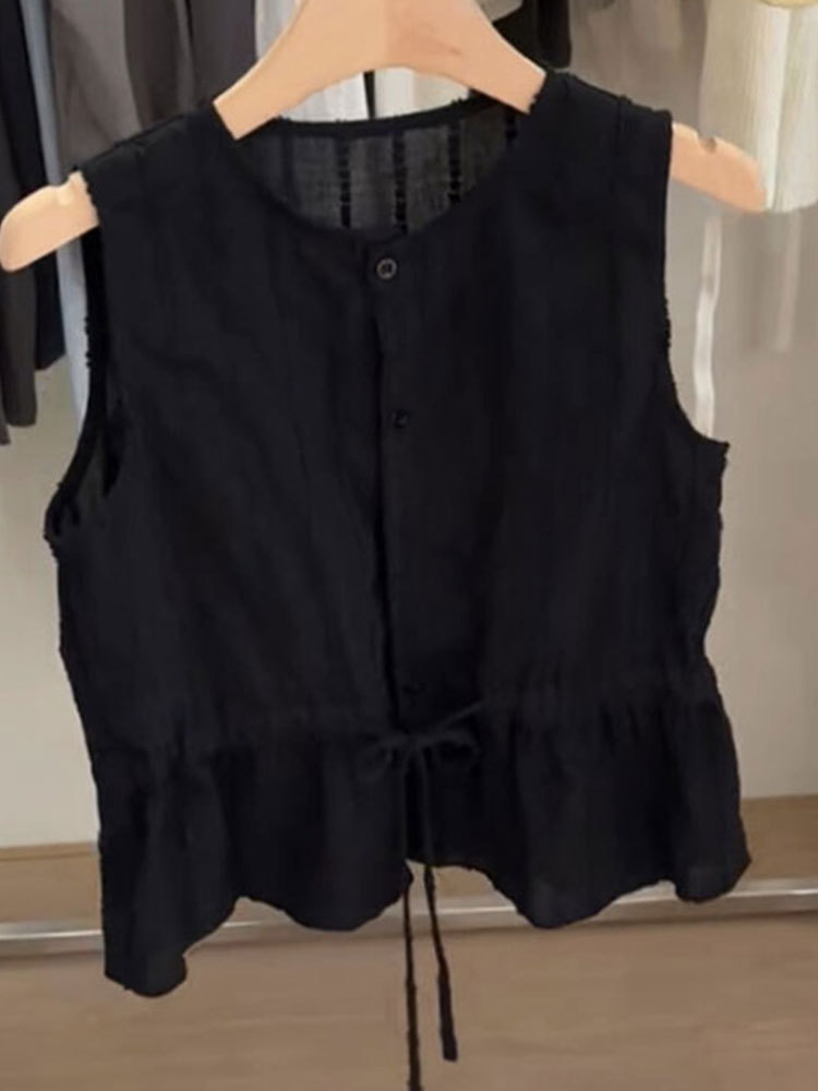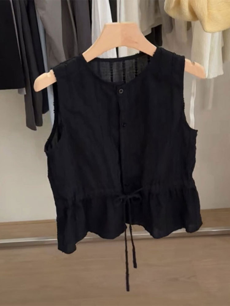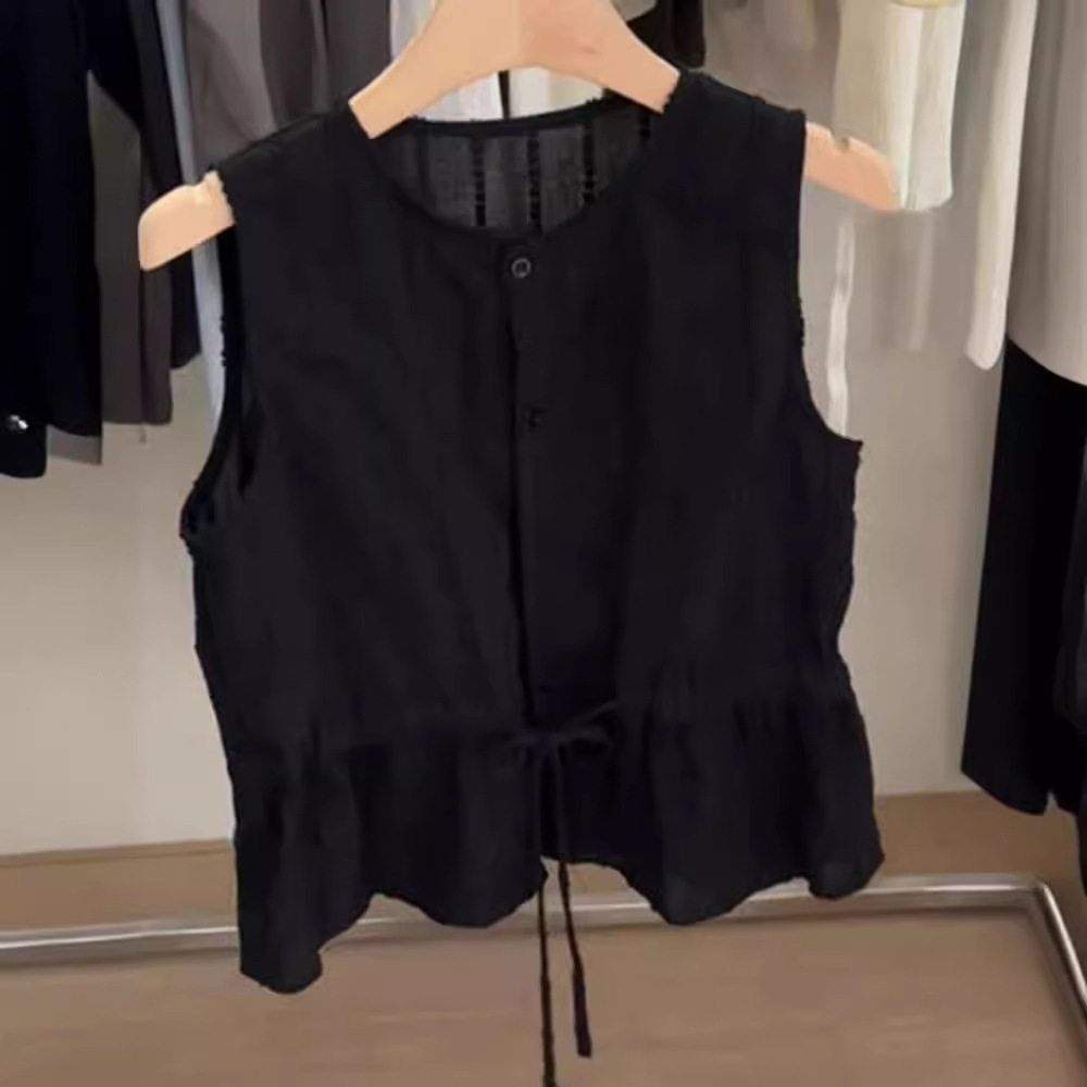 한눈에 마음! 블랙 라미 리넨 민소매 최고 여성 여름 2024 새로운 허리 레이스 조끼스토어 가기