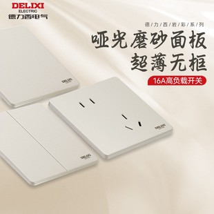 德力 奶油风开关插座哑光磨砂面板家用16a五孔290岩彩砂砾白