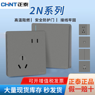 正泰墙壁开关插座86型暗转2N灰色五孔一开单控空调16A插座USB面板