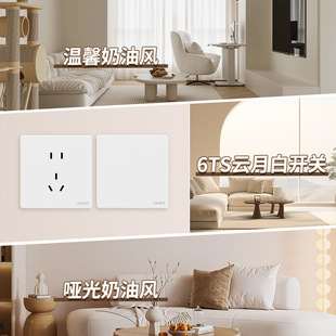 正泰86型暗装墙壁开关云月白奶油风开关插座五孔一开单控空调插座