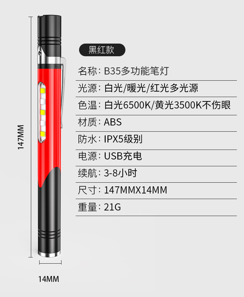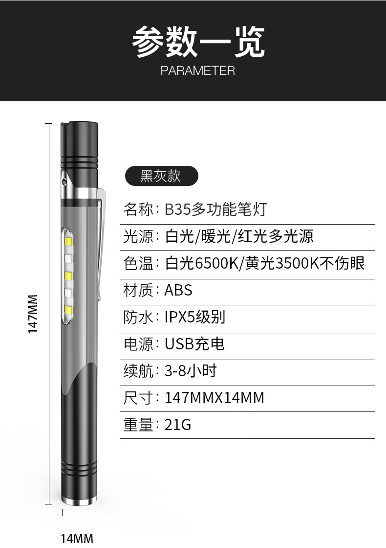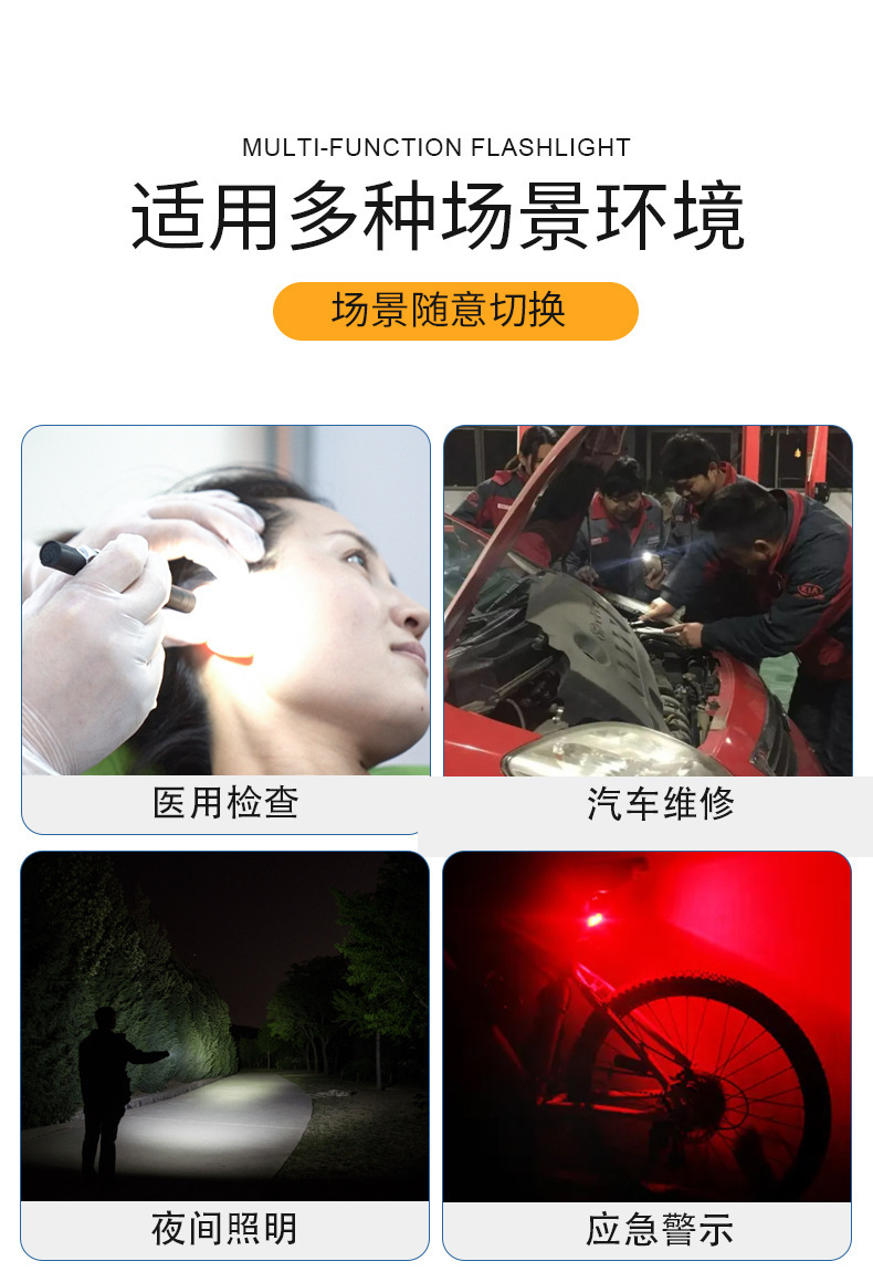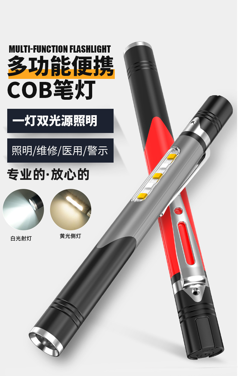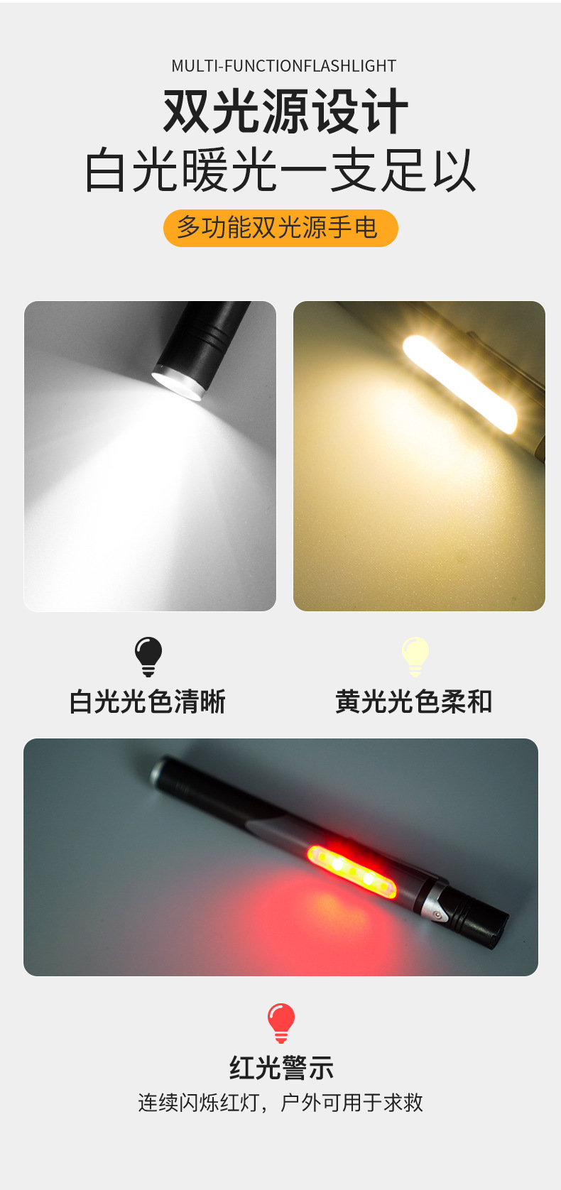 새로운 LED 미니 휴대용 펜 램프 USB 충전식 작업 램프 강한 빛 3 광원 가정용 펜 손전등