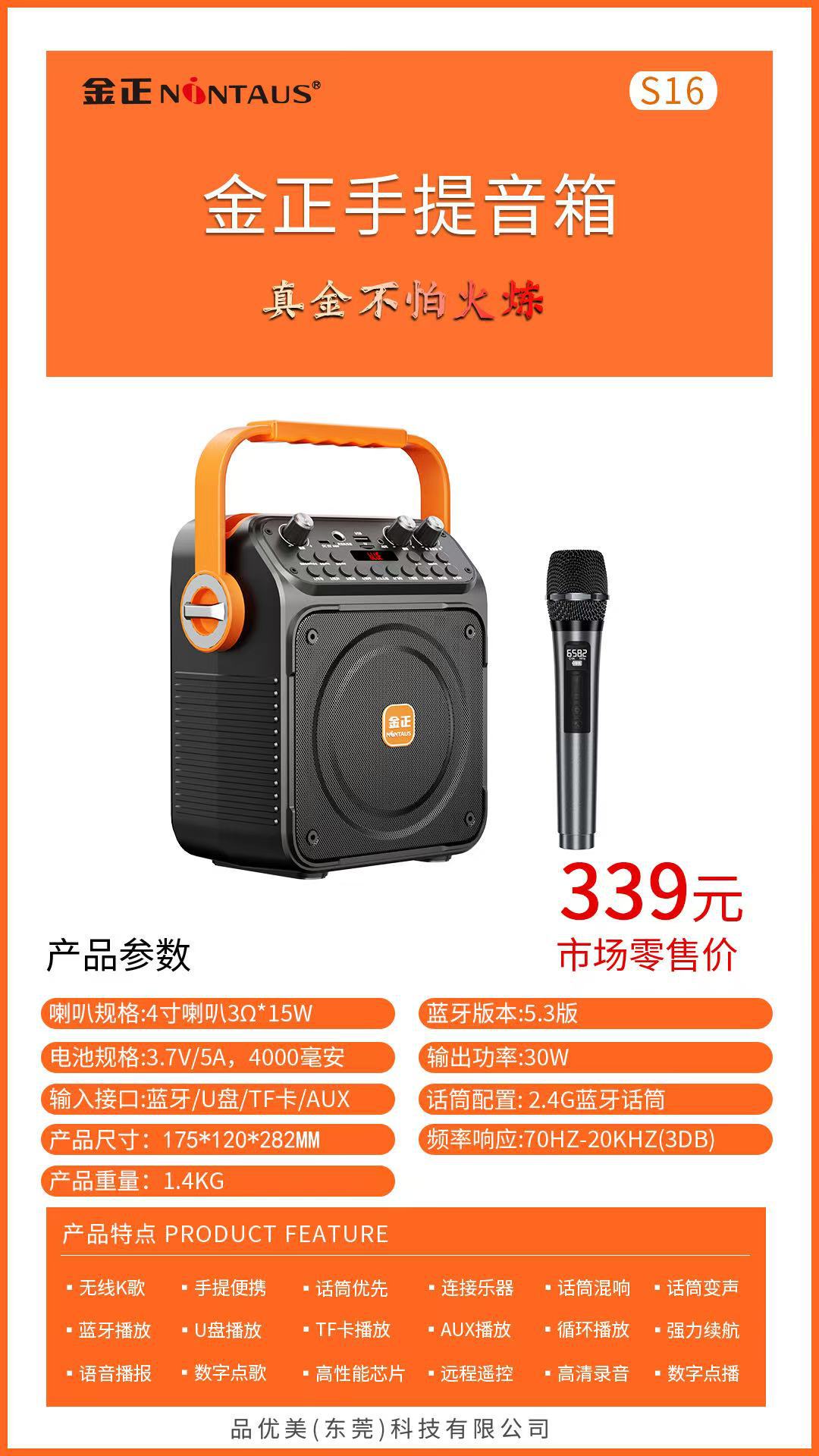 Jinzheng S68 스퀘어 댄스 블루투스 스피커, 야외용 소형 휴대용 고출력 마이크 내장 야외 노래방 스피커스토어 가기