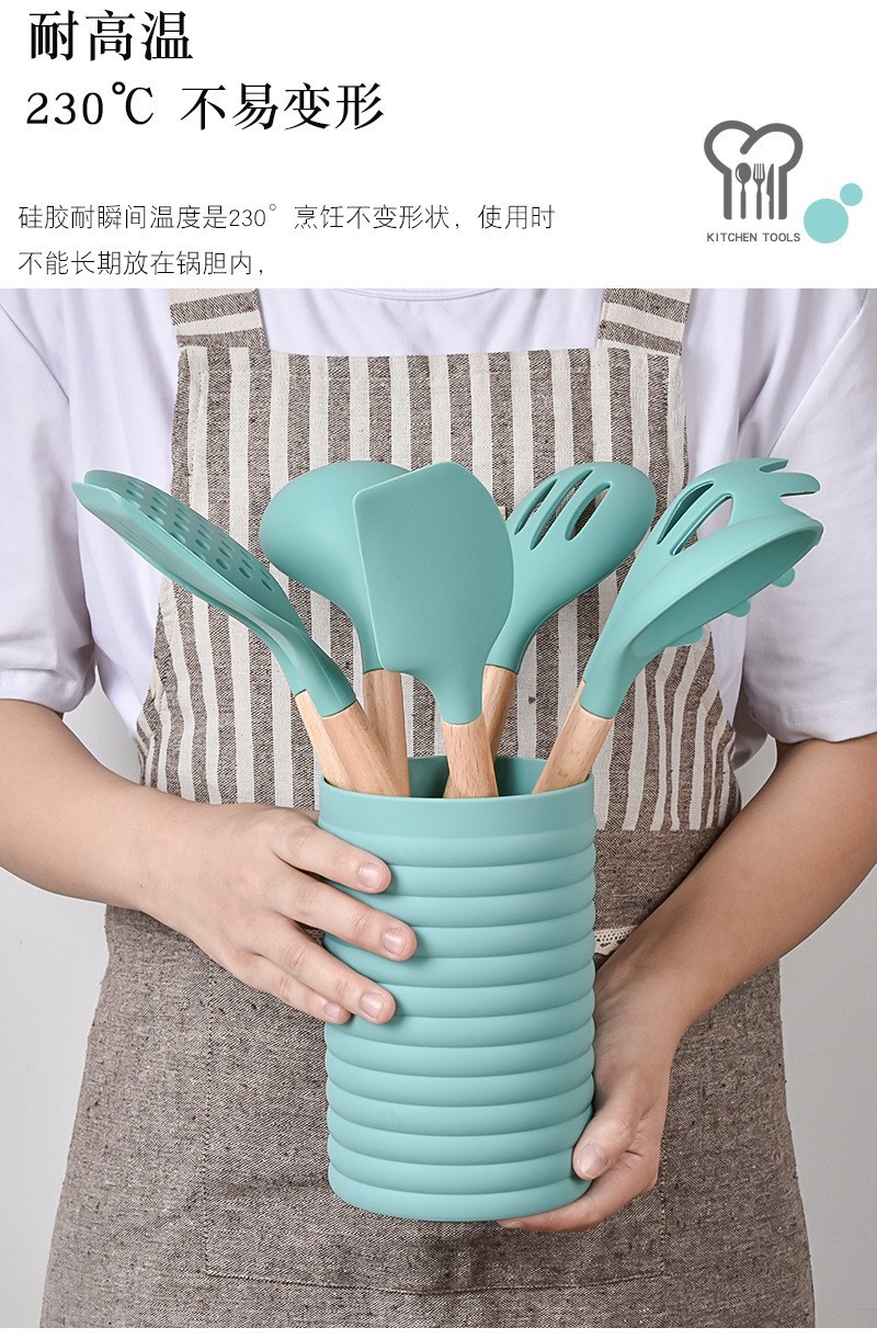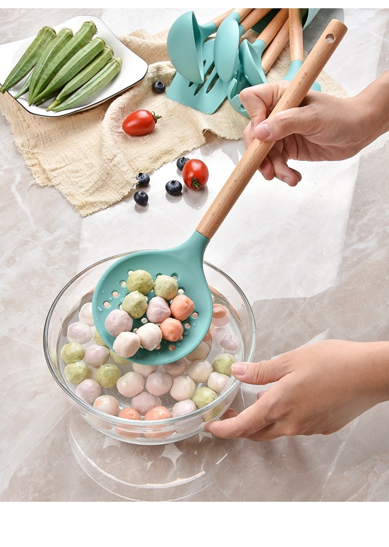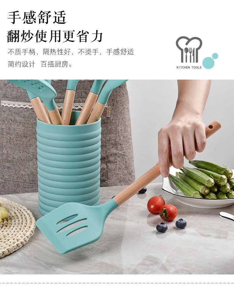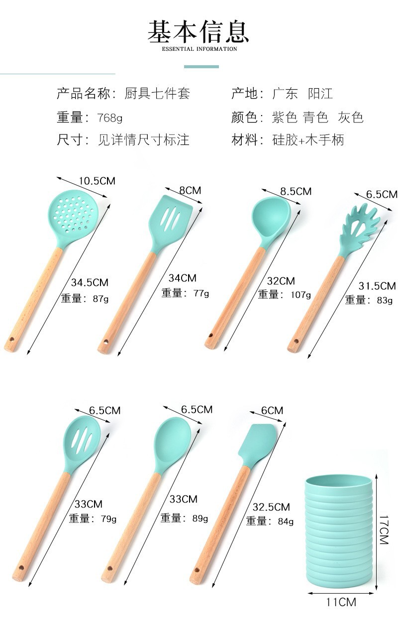 고온 저항하는 실리콘 주방 용품 나무 손잡이 7 조각 실리콘 주방 용품 세트 가정용 요리 삽과 숟가락 도구 무료 배송스토어 가기