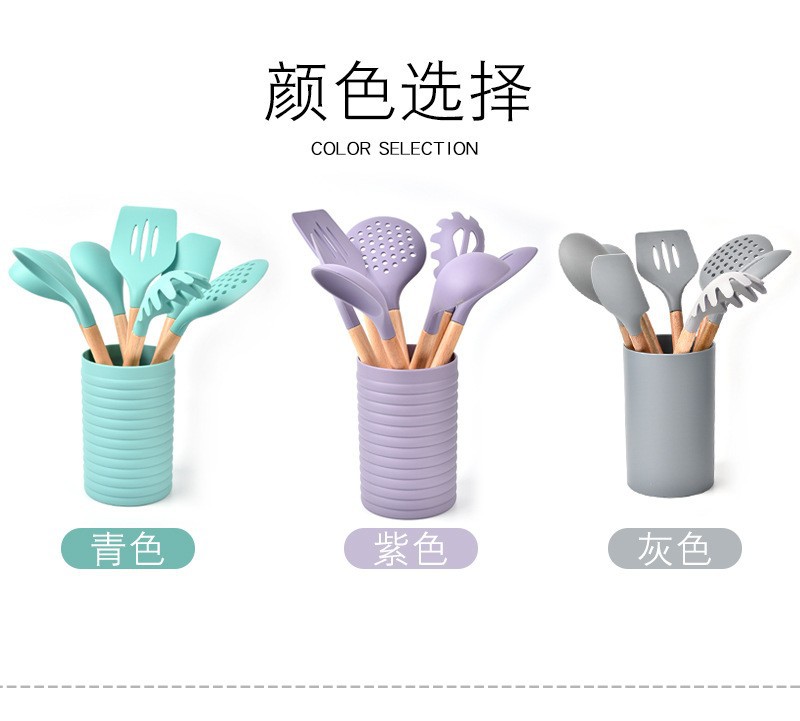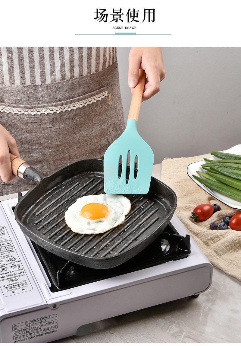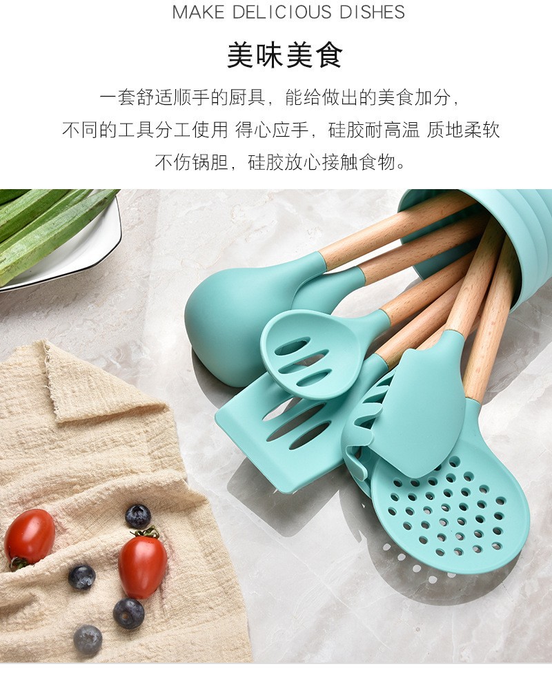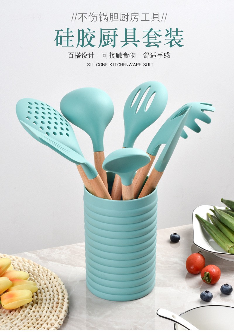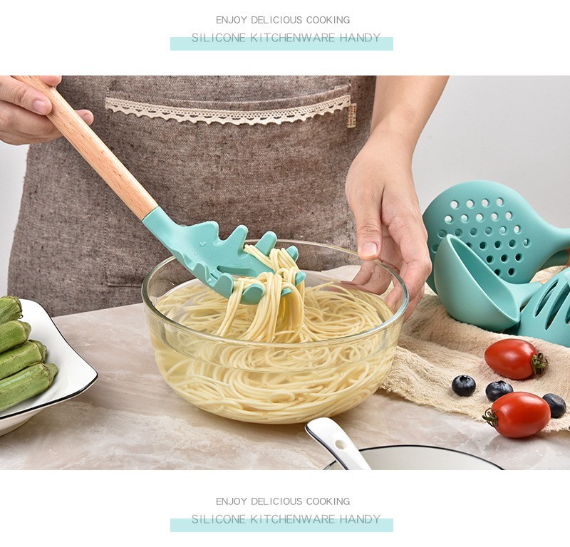 고온 저항하는 실리콘 주방 용품 나무 손잡이 7 조각 실리콘 주방 용품 세트 가정용 요리 삽과 숟가락 도구 무료 배송스토어 가기